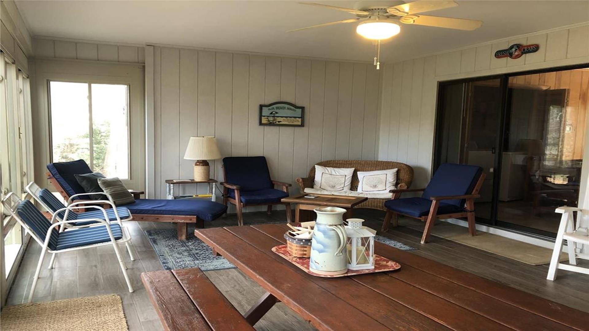Welcome to the "Windjammer" in Bethany West, a charming 4-bedroom, 2-bathroom retreat that can comfortably accommodate up to 10 guests. This air-conditioned home boasts a spacious enclosed porch at the back, perfect for relaxing and enjoying the coastal breeze. Step inside to find the heart of the home - the kitchen, dining, and living room area, also known as the Great Room. The kitchen features new appliances for the 2020 season, making meal preparation a breeze. Two bedrooms and a bathroom are located on each side of the Great Room, providing privacy and convenience for all guests. Conveniently situated just one block away from the front pool and tennis facility, this property offers a prime location for outdoor activities and relaxation. The property is equipped with modern amenities to ensure a comfortable stay, including a dishwasher, microwave, coffee maker, and more. The "Windjammer" features 1 Queen Bed, 7 Single Beds, and 2 Rollaway beds, providing ample sleeping arrangements for large groups. Additional amenities include central AC, ceiling fans, washer, dryer, parking for 4 vehicles, TVs, cable TV, community pool, outside shower, BBQ charcoal grill, tennis facilities, and more. This pet-free and smoke-free property is perfect for families and groups looking to enjoy a peaceful getaway near the beach. With a three-season room, lobster pot, and dining capacity for 10 guests, the "Windjammer" offers a comfortable and inviting space for your Bethany Beach vacation. Don't miss out on the opportunity to experience the best of Bethany West living at the "Windjammer." Book your stay today and create unforgettable memories in this beautiful coastal retreat.