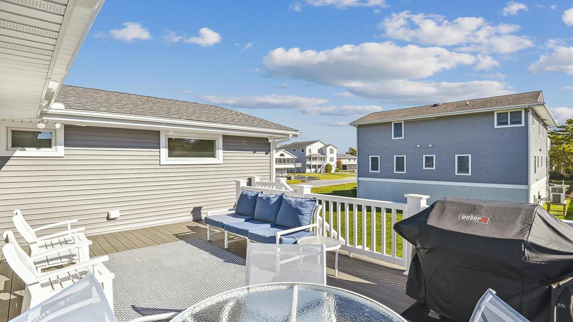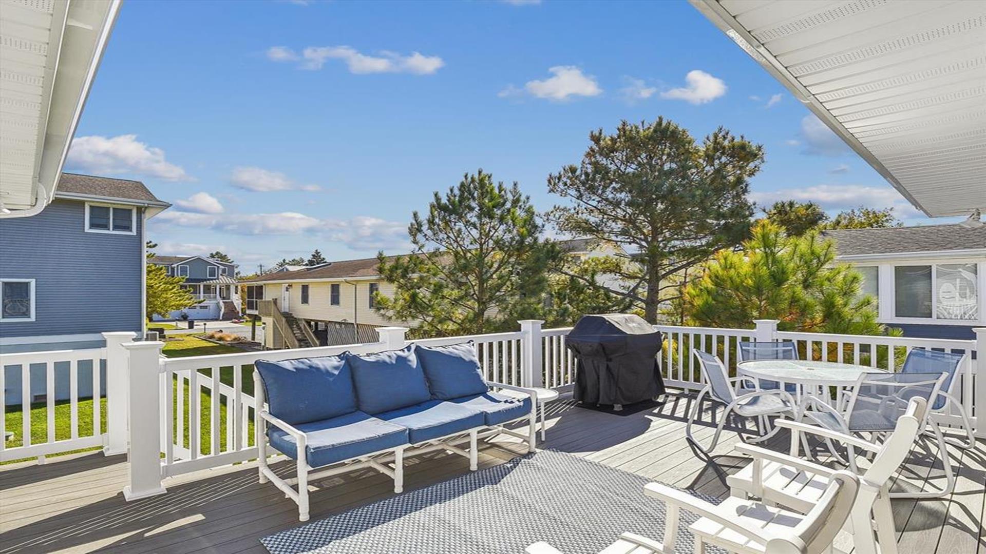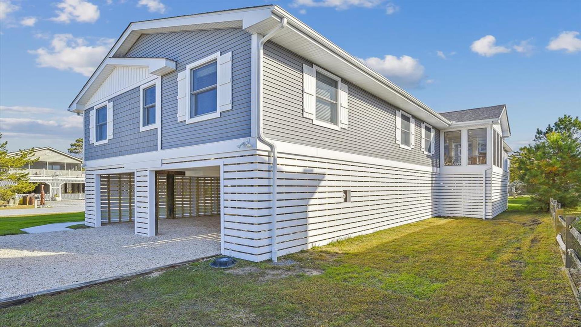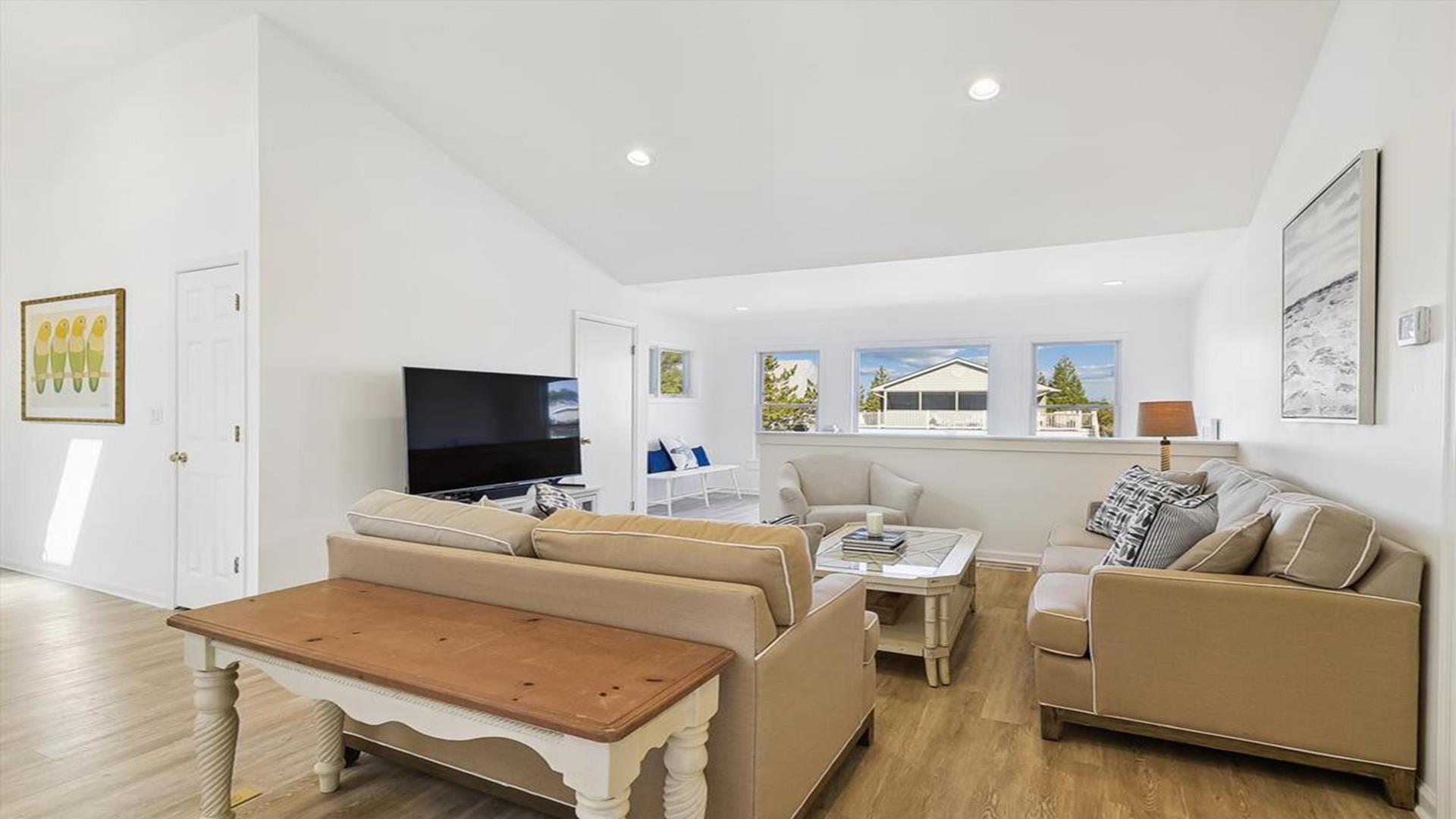 Welcome to yourvacation home in the charming Town of Bethany Beach, just a stone's throw away from the picturesque Ocean View Parkway. This newly remodeled gem is a spacious 5-bedroom, 4-bathroom haven that can comfortably accommodate up to 10 guests. Step inside to discover a sunlit open concept living space that seamlessly blends the kitchen, dining, and living areas. The layout offers the perfect balance of privacy with two distinct bedroom wings. The west end boasts 3 inviting bedrooms and 2 full baths, while the all-new east addition features 2 luxurious primary suites with their own private bathrooms. Entertainment abounds in the new three-season room, complete with a 65” smart TV and a game table for endless fun. Step outside onto the expansive sun deck, ideal for grilling and socializing under the sun. This stunning home is adorned with new flooring, a full-sized LG washer and dryer, a 10’ kitchen island/breakfast bar, built-in desk/charging station, and two 65” smart TVs for your viewing pleasure. Additionally, two brand-new outdoor showers and ample parking add to the convenience and comfort of your stay. Nestled in The Canal neighborhood, just 4 blocks from the beach, 335 Seabreeze offers a peaceful retreat with a large yard on a corner lot. Enjoy the tranquility of the area while being within walking distance to the beach and town. For added convenience, the free Bethany Beach Trolley stops right at your doorstep. This property is fully equipped with 1 King Bed, 2 Queen Beds, 3 Single Beds, 1 Bunk Bed, and 1 Portable Crib. Amenities include a dishwasher, microwave, central AC, washer, dryer, cable TV, gas BBQ, and more. Please note that this is a smoke-free property and pets are not allowed. Don't miss out on the opportunity to create lasting memories in this exquisite vacation home. Book your stay at 335 Seabreeze today and experience the best of Bethany Beach living!