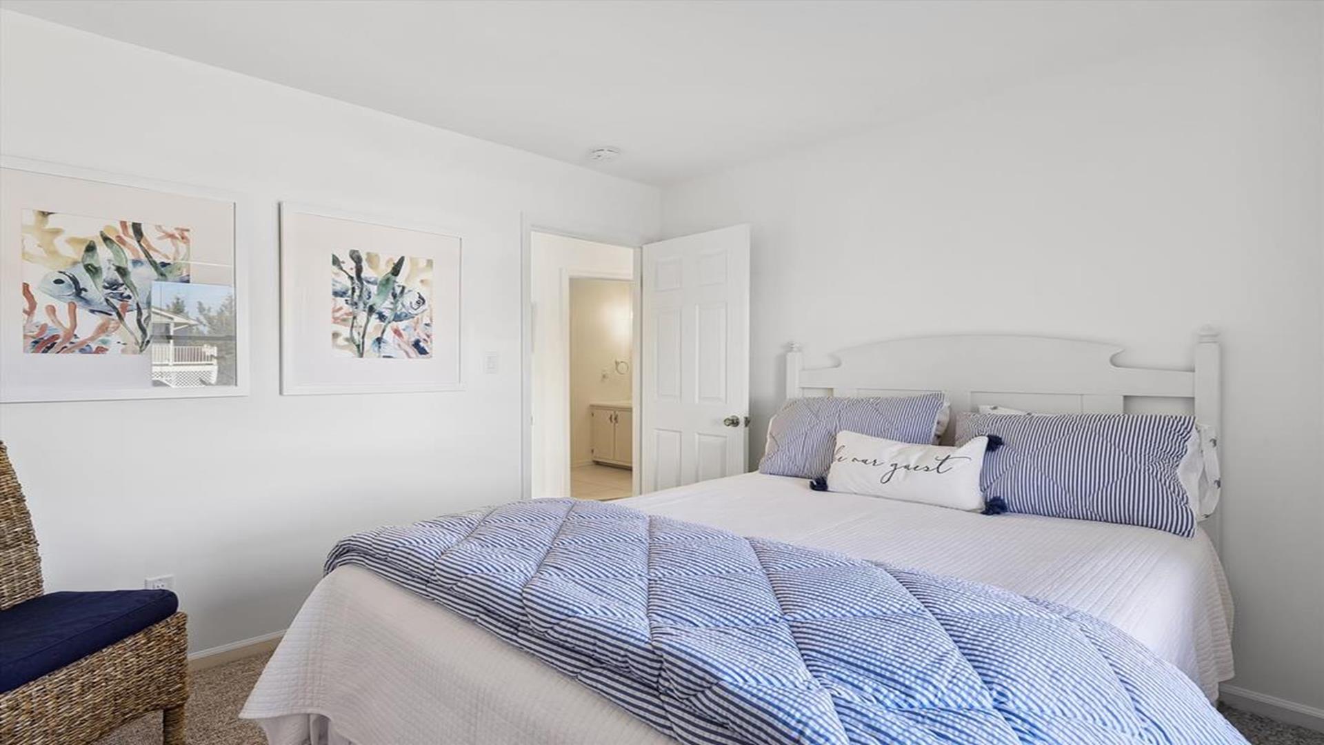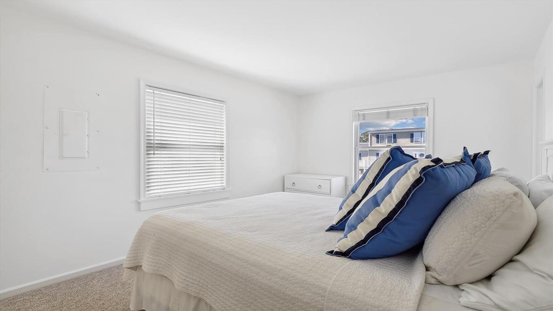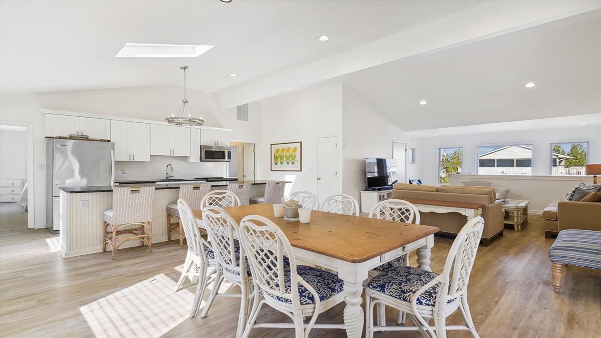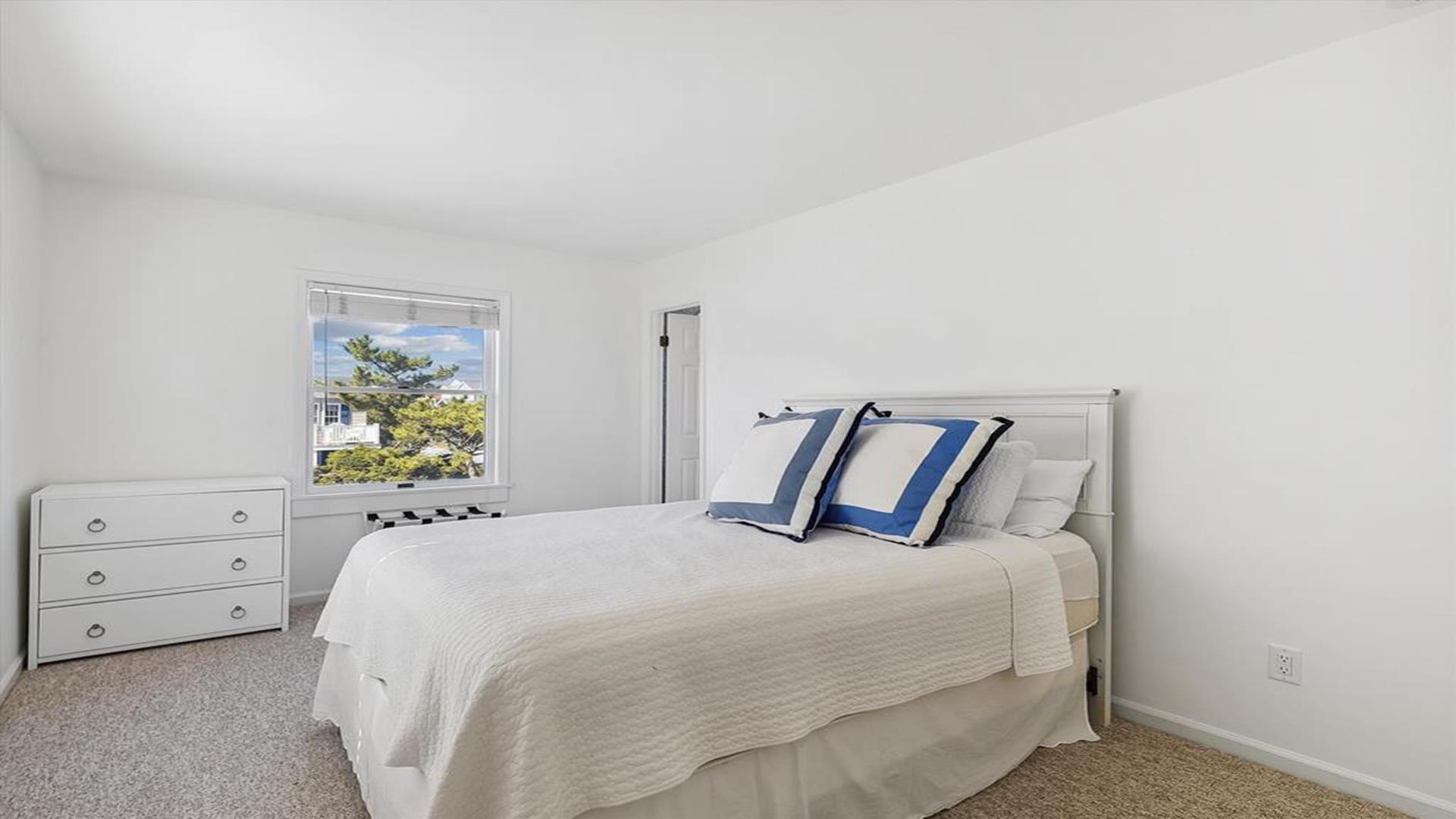 Welcome to yourvacation home in the charming Town of Bethany Beach, just a stone's throw away from the picturesque Ocean View Parkway. This newly remodeled gem is a spacious 5-bedroom, 4-bathroom haven that can comfortably accommodate up to 10 guests. Step inside to discover a sunlit open concept living space that seamlessly blends the kitchen, dining, and living areas. The layout offers the perfect balance of privacy with two distinct bedroom wings. The west end boasts 3 inviting bedrooms and 2 full baths, while the all-new east addition features 2 luxurious primary suites with their own private bathrooms. Entertainment abounds in the new three-season room, complete with a 65” smart TV and a game table for endless fun. Step outside onto the expansive sun deck, ideal for grilling and socializing under the sun. This stunning home is adorned with new flooring, a full-sized LG washer and dryer, a 10’ kitchen island/breakfast bar, built-in desk/charging station, and two 65” smart TVs for your viewing pleasure. Additionally, two brand-new outdoor showers and ample parking add to the convenience and comfort of your stay. Nestled in The Canal neighborhood, just 4 blocks from the beach, 335 Seabreeze offers a peaceful retreat with a large yard on a corner lot. Enjoy the tranquility of the area while being within walking distance to the beach and town. For added convenience, the free Bethany Beach Trolley stops right at your doorstep. This property is fully equipped with 1 King Bed, 2 Queen Beds, 3 Single Beds, 1 Bunk Bed, and 1 Portable Crib. Amenities include a dishwasher, microwave, central AC, washer, dryer, cable TV, gas BBQ, and more. Please note that this is a smoke-free property and pets are not allowed. Don't miss out on the opportunity to create lasting memories in this exquisite vacation home. Book your stay at 335 Seabreeze today and experience the best of Bethany Beach living!