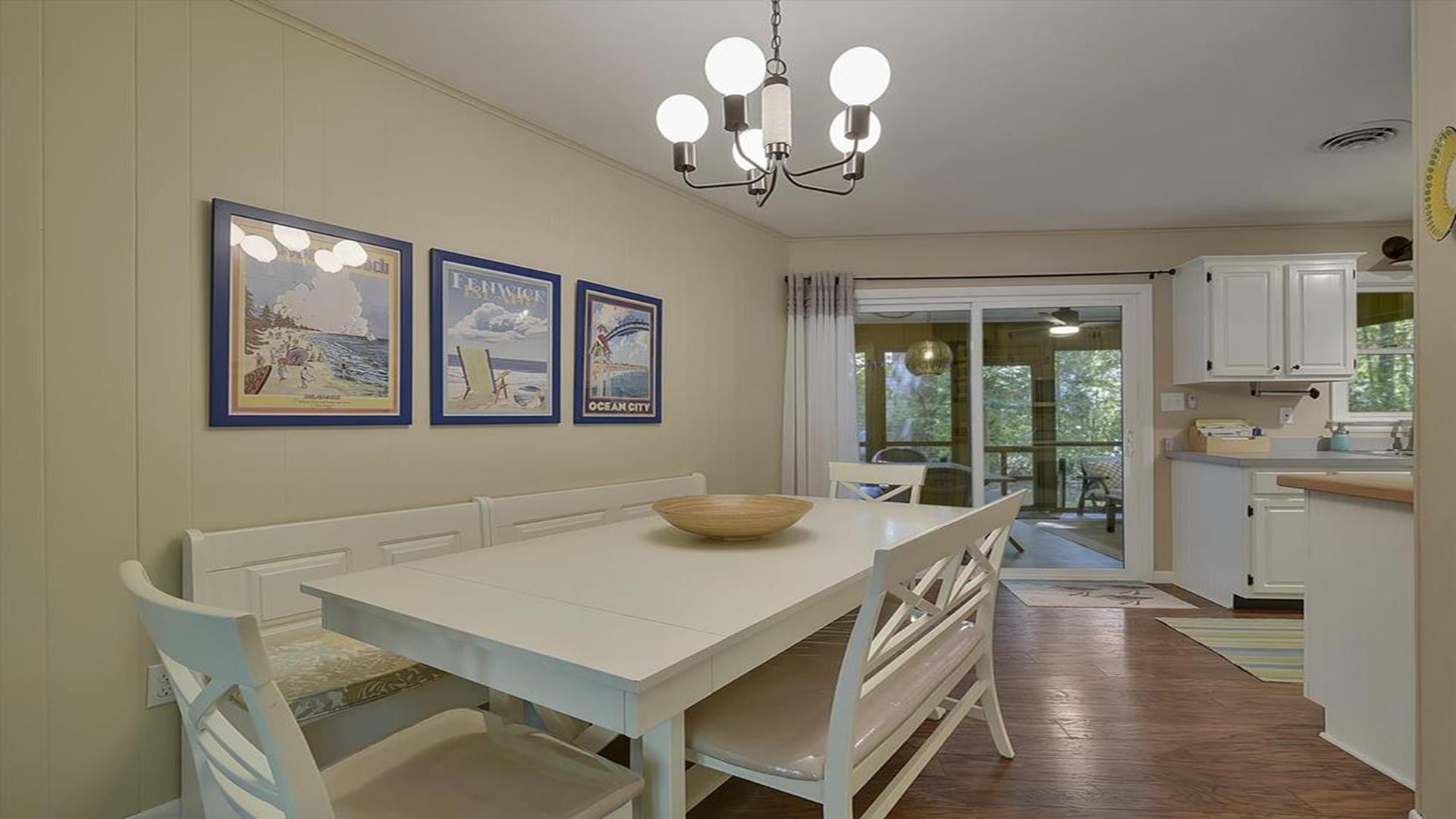 Lovely, Unique 4 bedroom, 2 bath home. Nicely decorated, fully updated home features hexagonal great room with dramatic central fireplace. Two sleeping wings, each with two bedrooms and a bath, provide privacy. Enjoy large, private, fully furnished screened porch, covered front porch, and spacious deck. Parking for 4 vehicles, well-equipped kitchen, and outdoor shower. Shady wooded lot on quiet cul de sac. This Property is managed by Crowley Associates Realty so there is full support while you stay and play in the sun. A wonderful place for family to gather and relax ocean side. Linens and beach equipment are not provided through the house but are available through the lease as an options addition. For additional question please contact Crowley Associates Realty. Crowley Associates Realty, Inc. is a family owned and operated Delaware Beach Real Estate and Vacation Rental company since 1973. With our two convenient locations, Rehoboth Beach Real Estate Office & Bethany Beach Real Estate Office, we are able to offer over 750 Delaware beach vacation rental properties and numerous Delaware Beach Real Estate sales listings that afford our clients the best of choices when it comes to choosing a vacation summer beach vacation rental or purchasing your very own Delaware beach home.