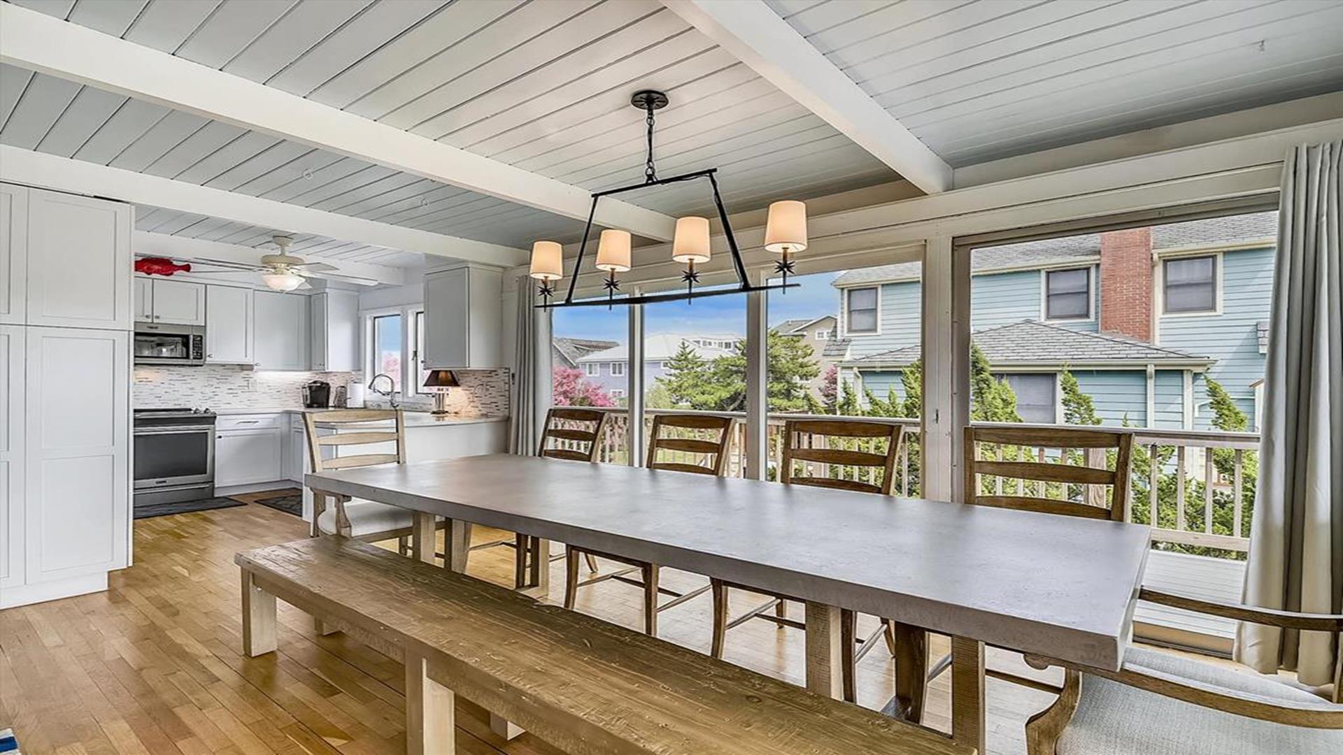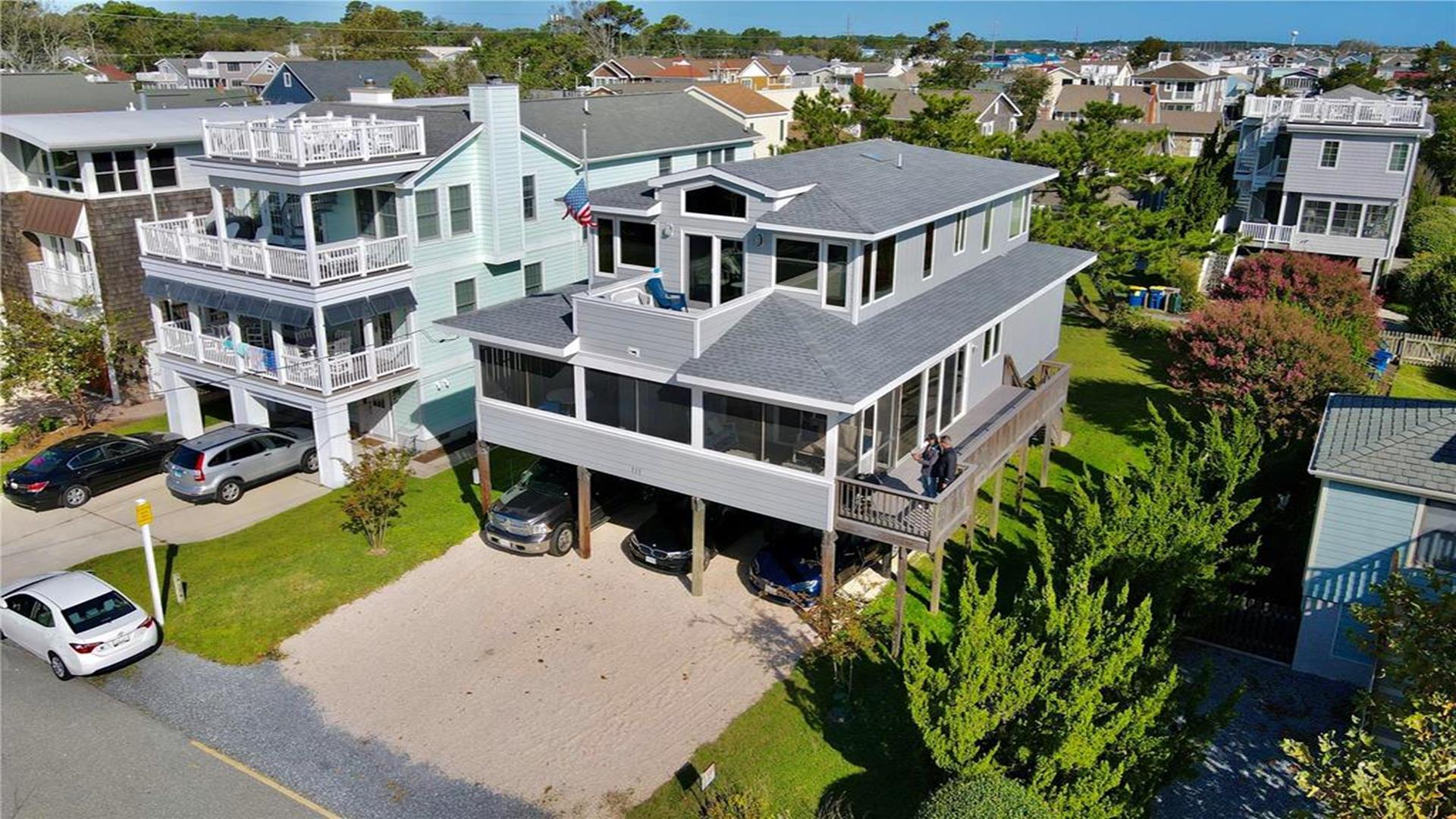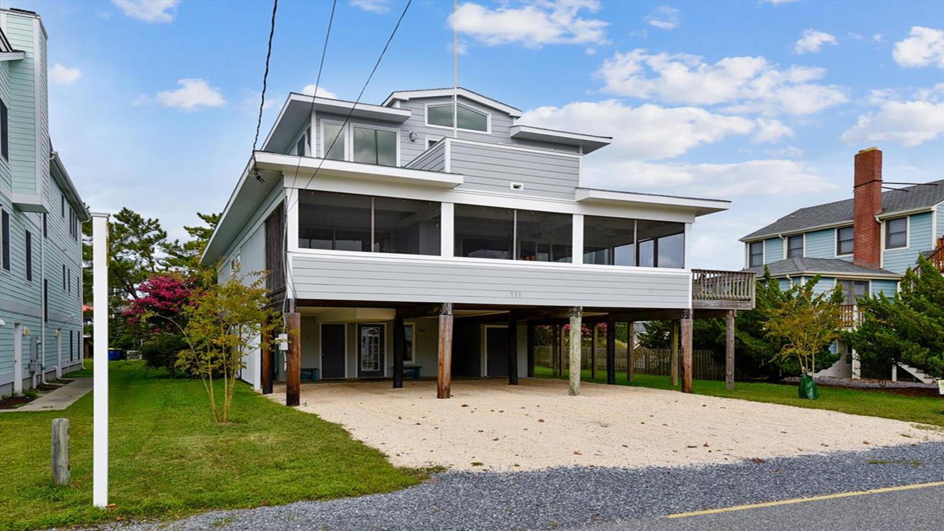 6 Bedroom in the Town of Bethany Beach! This spacious and beautifully appointed 6-bedroom, 4-bathroom home is just waiting to host your next vacation. Located only half a block from the ocean, this air-conditioned retreat offers stunning views of the sea from the master bedroom, top-level deck, and second-level deck. Imagine waking up to the sound of crashing waves and enjoying your morning coffee with a view of the sparkling water. The interior of the home is just as impressive as its surroundings. With 3 king beds, 2 queen beds, 1 double bed, 2 single beds, and 2 bunk beds, this property comfortably sleeps up to 14 guests. Three of the bathrooms feature walk-in showers, adding a touch of luxury to your stay. The living/dining room and kitchen area open up to a spacious screened porch on the second floor, perfect for al fresco dining or simply relaxing with a good book. The property is equipped with all the amenities you could need, including a dishwasher, microwave, coffee maker, and washer/dryer. Outside, you'll find a deck, gas and charcoal BBQs, and an outdoor shower for rinsing off after a day at the beach. With parking for 6 vehicles, you and your guests can come and go as you please. This property is perfect for families or groups looking to enjoy a beach vacation in style. Please note that pets are not accepted, ensuring a clean and allergy-friendly environment for all guests. Don't miss out on the opportunity to make unforgettable memories at this Bethany Beach gem. Book your stay today and start counting down the days until you can relax in paradise!