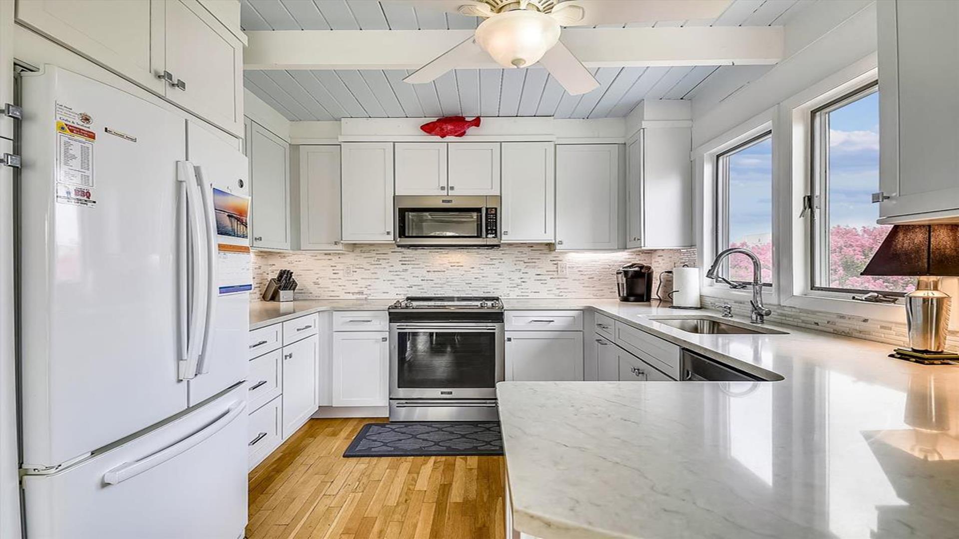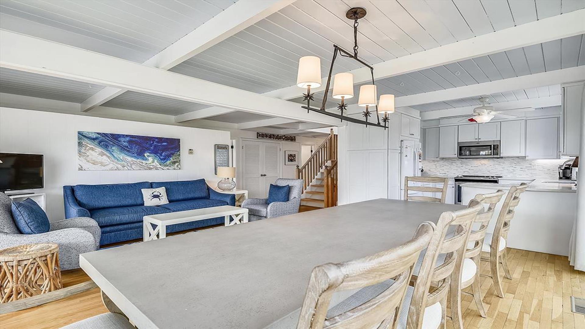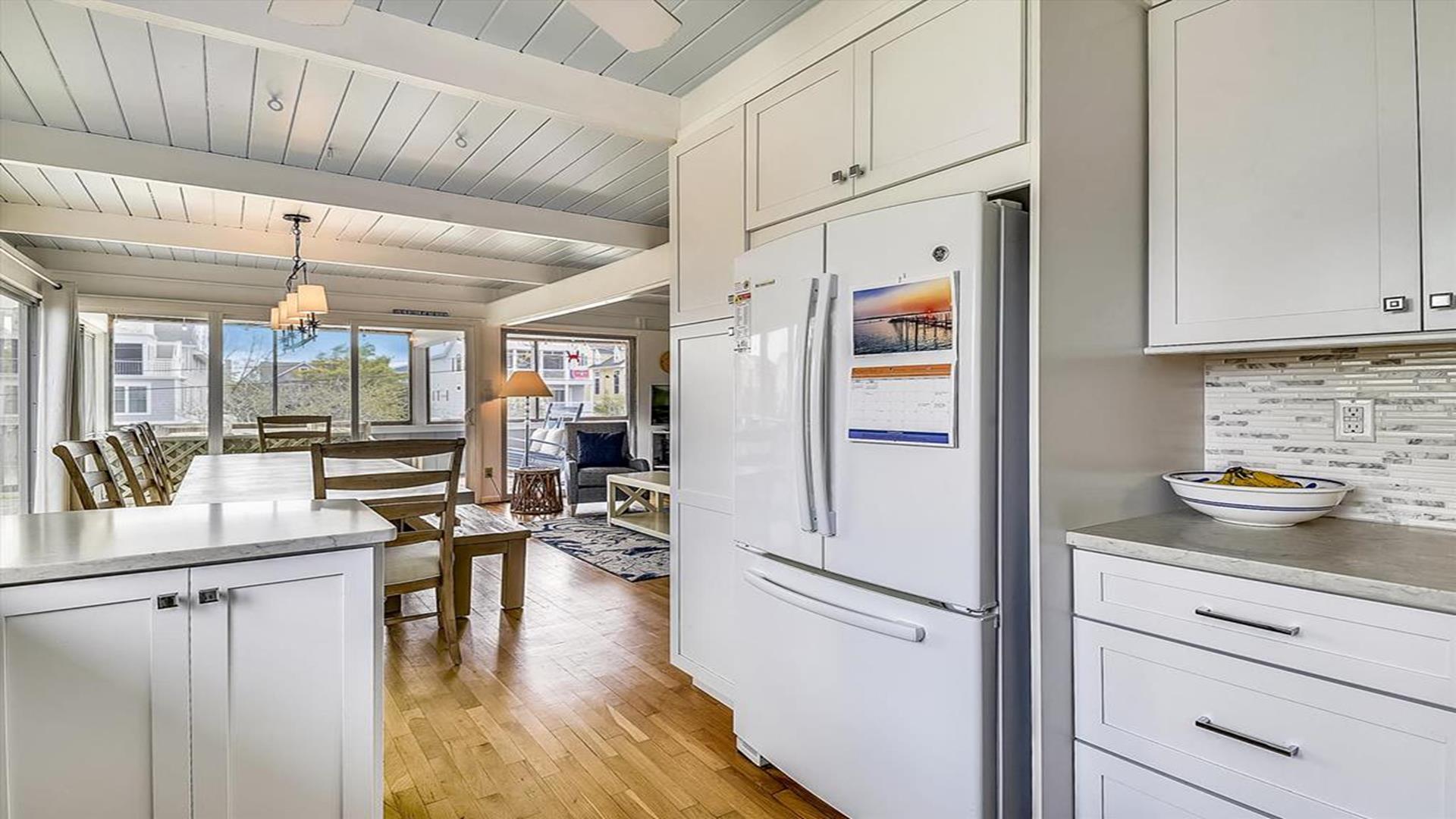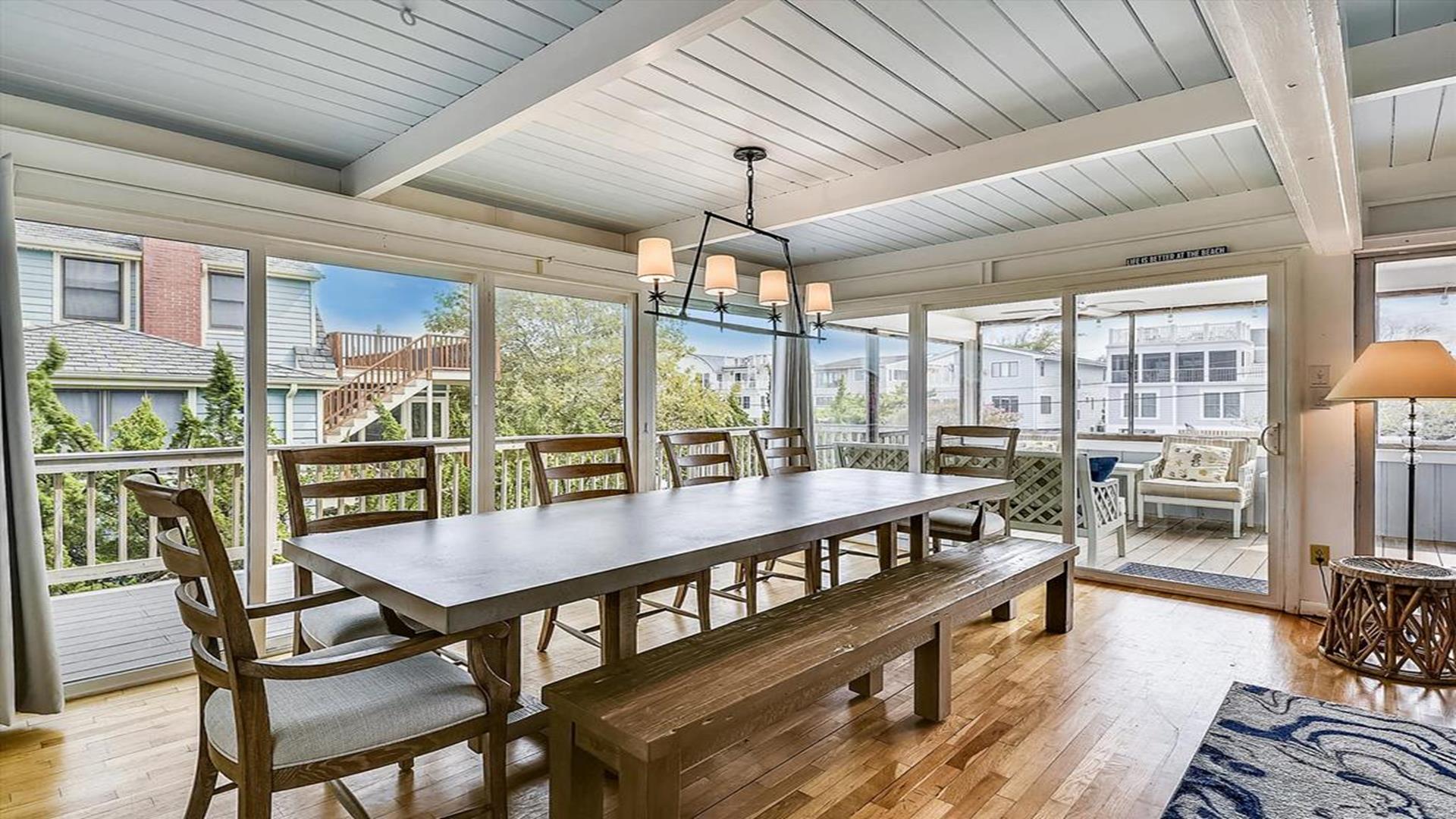 6 Bedroom in the Town of Bethany Beach! This spacious and beautifully appointed 6-bedroom, 4-bathroom home is just waiting to host your next vacation. Located only half a block from the ocean, this air-conditioned retreat offers stunning views of the sea from the master bedroom, top-level deck, and second-level deck. Imagine waking up to the sound of crashing waves and enjoying your morning coffee with a view of the sparkling water. The interior of the home is just as impressive as its surroundings. With 3 king beds, 2 queen beds, 1 double bed, 2 single beds, and 2 bunk beds, this property comfortably sleeps up to 14 guests. Three of the bathrooms feature walk-in showers, adding a touch of luxury to your stay. The living/dining room and kitchen area open up to a spacious screened porch on the second floor, perfect for al fresco dining or simply relaxing with a good book. The property is equipped with all the amenities you could need, including a dishwasher, microwave, coffee maker, and washer/dryer. Outside, you'll find a deck, gas and charcoal BBQs, and an outdoor shower for rinsing off after a day at the beach. With parking for 6 vehicles, you and your guests can come and go as you please. This property is perfect for families or groups looking to enjoy a beach vacation in style. Please note that pets are not accepted, ensuring a clean and allergy-friendly environment for all guests. Don't miss out on the opportunity to make unforgettable memories at this Bethany Beach gem. Book your stay today and start counting down the days until you can relax in paradise!