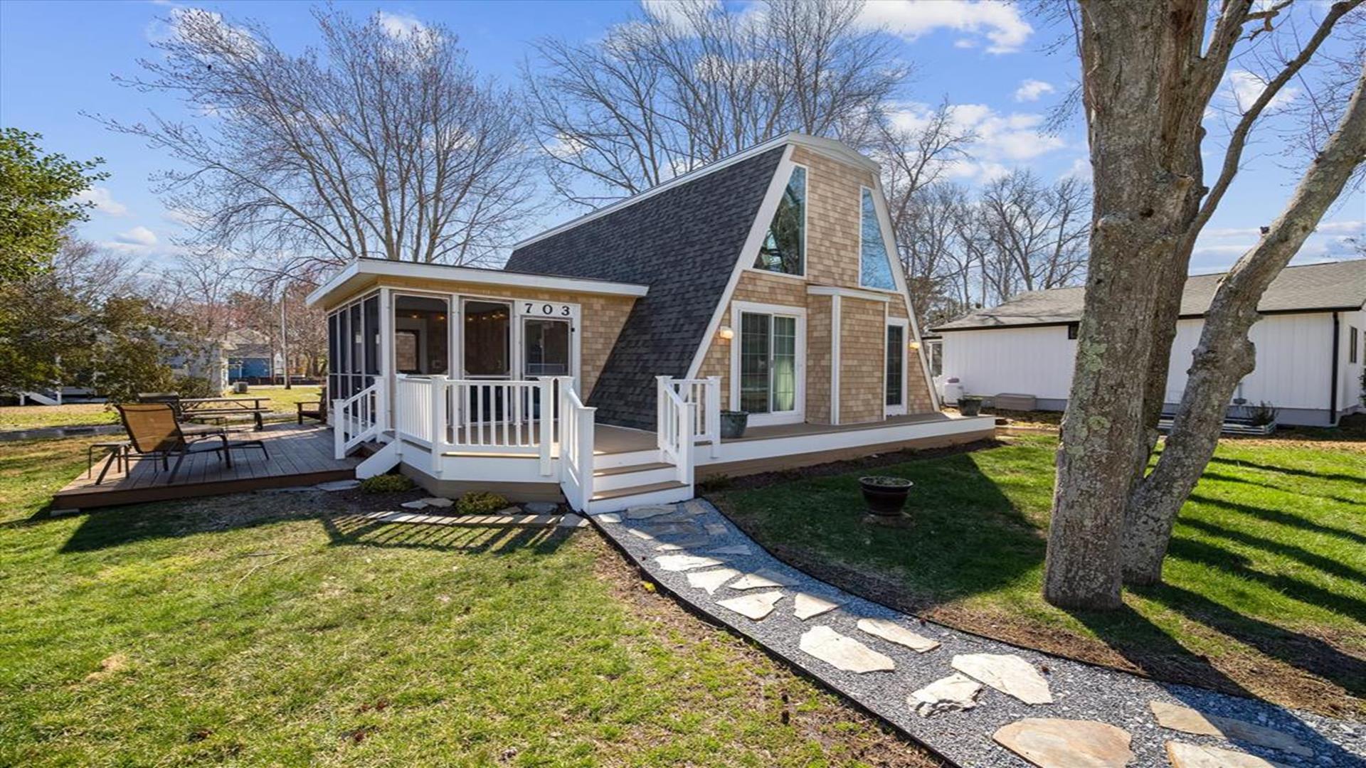 Charming retreat in the heart of Bethany Beach! This lovely 3-bedroom, 1 1/2 bath home nestled in the Bethany West Community is the perfect getaway for up to 6 guests. Step inside to discover a newly furnished interior that exudes comfort and style. The central A/C ensures a pleasant stay year-round, while the spacious deck at the front of the house invites you to relax and soak in the serene surroundings. Additionally, there is another deck on the side off the big screen porch, providing ample outdoor space for enjoying the fresh coastal air. The Master Bedroom, located on the second floor, offers a peaceful sanctuary for rest and relaxation. Accessible via a charming spiral staircase, this cozy retreat is sure to make you feel right at home. This property boasts 3 bedrooms, 1 full bathroom, and 1 half bathroom, making it ideal for families or small groups. The well-equipped kitchen features modern appliances including a dishwasher, microwave, coffee maker, and more, allowing you to whip up delicious meals with ease. Entertainment options abound with 2 TVs, cable TV, and a DVD player for movie nights. When you're ready to unwind, head to the community pool for a refreshing swim or take a stroll to the nearby beach for a day of sun and surf. With convenient amenities such as a washer, dryer, iron, and ironing board provided, your stay will be as effortless as it is enjoyable. Two parking spaces ensure hassle-free parking, while the outside shower is perfect for rinsing off after a day at the beach. Don't miss out on the opportunity to experience the best of Bethany Beach living at this inviting vacation home. Book your stay today and create unforgettable memories in this coastal paradise!