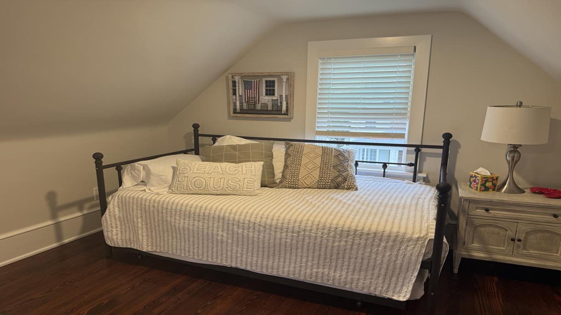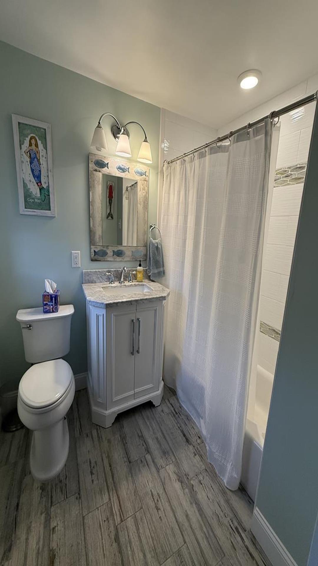 Welcome to your dream vacation rental in the heart of Cape May! This spacious property is perfect for large groups, with 6 bedrooms and 4.5 bathrooms that can comfortably accommodate up to 16 guests. As you step inside, you'll be greeted by a beautifully furnished living space featuring a gas log fireplace and TV for your entertainment. The fully equipped kitchen boasts modern appliances including a dishwasher, microwave, toaster oven, and Keurig coffee maker. The dining area and island area offers ample seating for everyone to gather and enjoy meals together. Each bedroom is thoughtfully designed with cozy bedding and plenty of storage space. The property includes 2 king beds, 2 queen beds, 2 double beds, and 5 single beds, ensuring a restful night's sleep for all guests. Outside, you'll find a private yard, deck with deck furniture, and a BBQ gas grill perfect for hosting cookouts. Relax on the open/covered porch or take a short stroll to the nearby beach to soak up the sun. Additional amenities include central AC, high-speed internet, a washer and dryer, and parking for 2 vehicles. Please note that this property does not allow pets and linens are not provided, so be sure to bring your own. Don't miss out on this incredible vacation rental in Cape May! Book your stay today and create unforgettable memories with your loved ones.