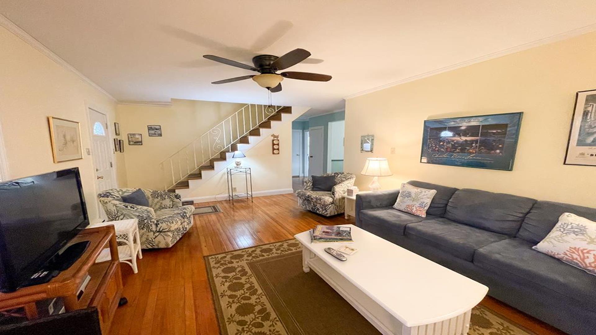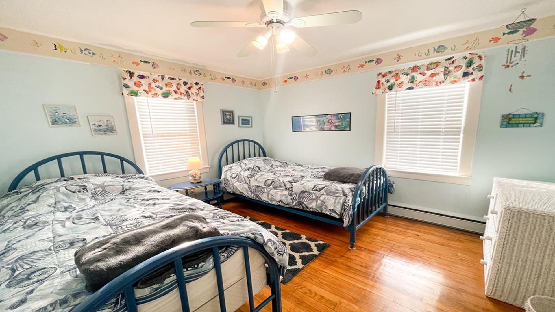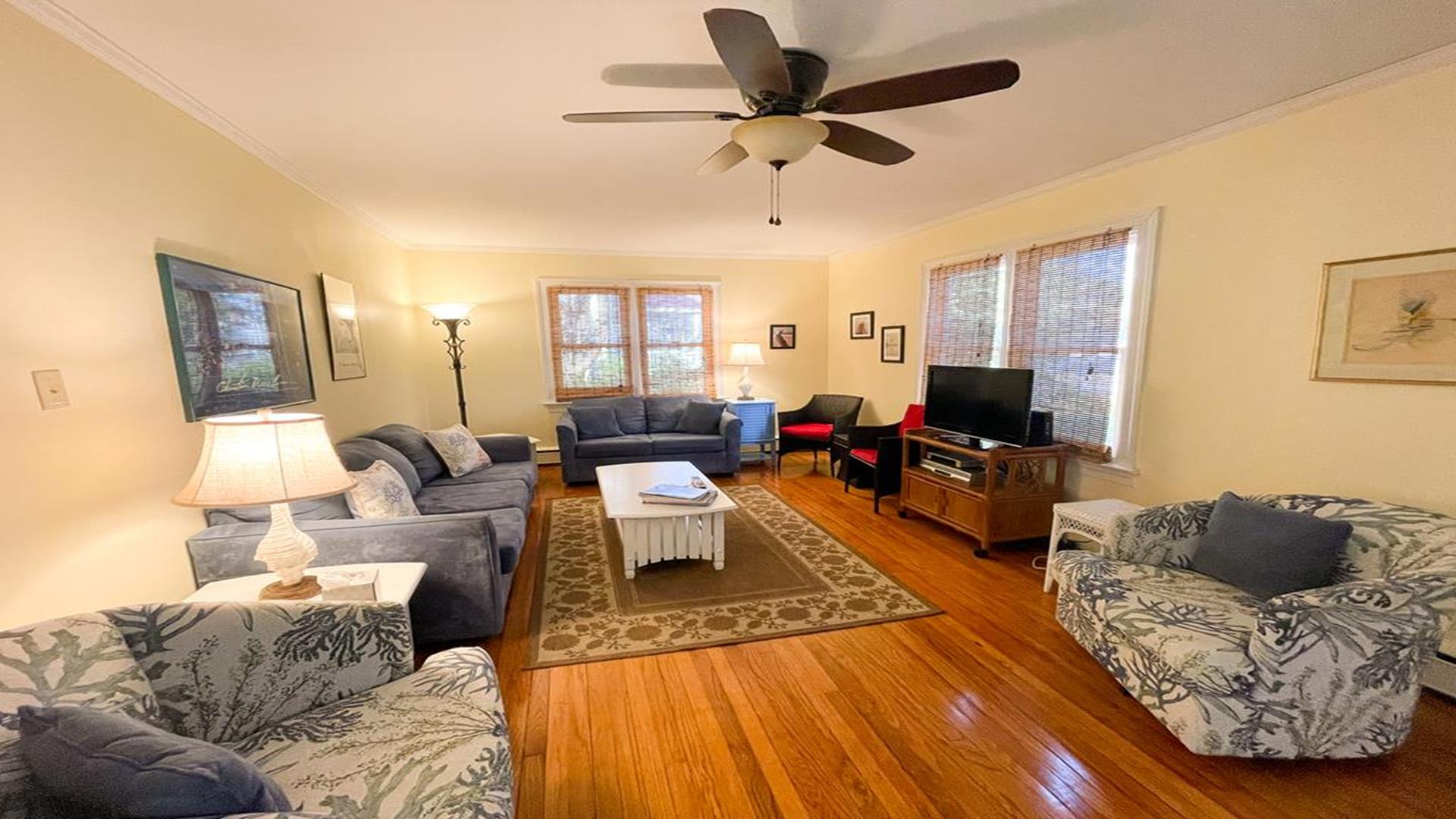 918 Wenonah Avenue in the center of Cape May is a bright and airy home is located conveniently five blocks from the beach and within walking distance to fine restaurants, shopping, day spa, playground, and tennis courts. The private yard offers a gratuitously large furnished deck with gas grill. There are two convenient outside showers, relaxing and plush front porch and garage to store larger items. Inside the house, amenities include internet access, ceiling fans in the downstairs rooms, and window air conditioners in all bedrooms. The homeowner leaves a booster seat and bed side guards for children. Bedroom arrangements are as follows: First Floor Bedroom 1 - Queen First Floor Bedroom 2 - Two Twins Second Floor Bedroom 3 - Queen Second Floor Bedroom 4 - Two Queen The first floor hallway has a tub/shower combo and the second floor hall bathroom has a shower only. This is a Pet Friendly Property. If you are not bringing a pet during your stay, you will not be responsible for the Pet Rent. For online booking, your lease will be adjusted accordingly but please let us know if you are, or are not bringing a dog. The cleaning fee is only applicable for stays less than a week, this will also be adjusted after booking if you are staying 7 nights or more.