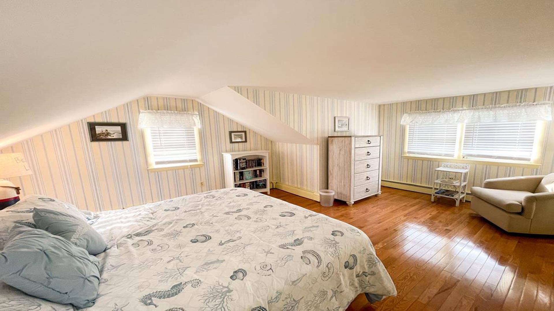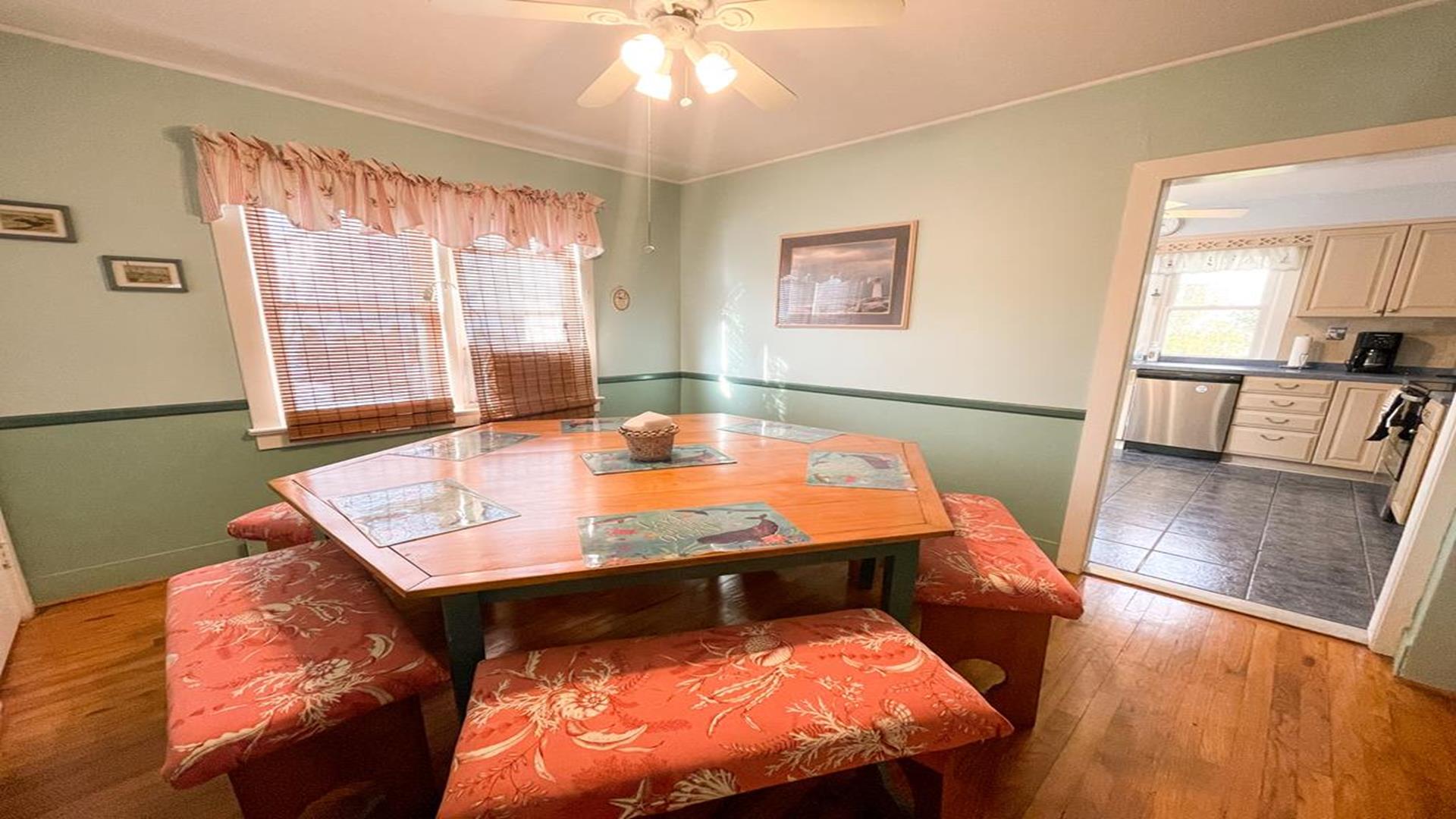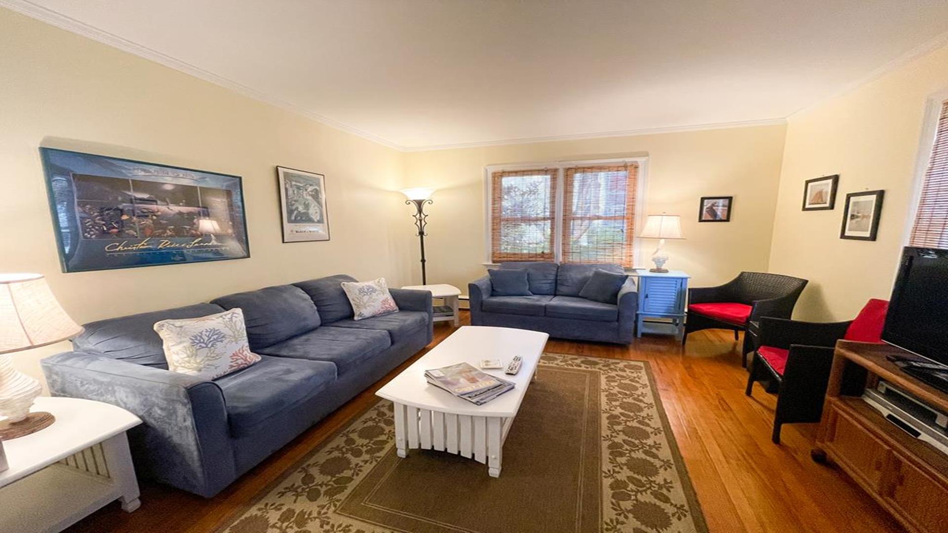918 Wenonah Avenue in the center of Cape May is a bright and airy home is located conveniently five blocks from the beach and within walking distance to fine restaurants, shopping, day spa, playground, and tennis courts. The private yard offers a gratuitously large furnished deck with gas grill. There are two convenient outside showers, relaxing and plush front porch and garage to store larger items. Inside the house, amenities include internet access, ceiling fans in the downstairs rooms, and window air conditioners in all bedrooms. The homeowner leaves a booster seat and bed side guards for children. Bedroom arrangements are as follows: First Floor Bedroom 1 - Queen First Floor Bedroom 2 - Two Twins Second Floor Bedroom 3 - Queen Second Floor Bedroom 4 - Two Queen The first floor hallway has a tub/shower combo and the second floor hall bathroom has a shower only. This is a Pet Friendly Property. If you are not bringing a pet during your stay, you will not be responsible for the Pet Rent. For online booking, your lease will be adjusted accordingly but please let us know if you are, or are not bringing a dog. The cleaning fee is only applicable for stays less than a week, this will also be adjusted after booking if you are staying 7 nights or more.
