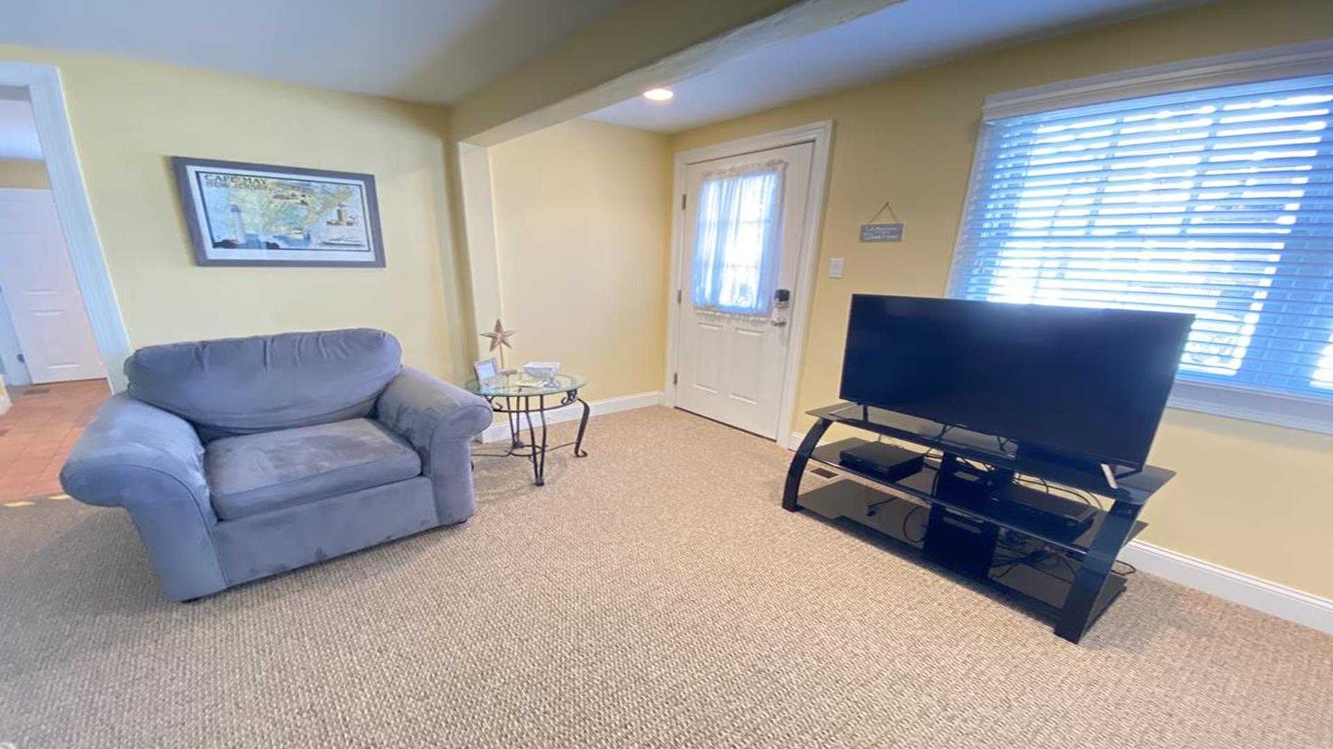 Welcome to this beautiful condo that has 2 bedrooms and 2 full bathrooms. This vacation home is only 3 minutes from the beach and 12 minutes to the Washington street mall. This beach house also comes with 2 outside showers and onsite parking. If you love coming to Cape May to enjoy fall festivals then you will take comfort in knowing that this elegant condo is only 4 minutes to the Cape May Convention Hall and comes with a gas fireplace that you can warm up to after a day filled with enjoyment. Come and relax at our home away from home and enjoy everything that Cape May New Jersey has to offer! ***Tenant responsible for bringing all blankets, towels, and linens. Only pillows provided. Protective coverings provided on mattresses and pillows. No quilts or spare blankets provided. Keyless entry now being used for access. Cleaning company using CDC guidelines. Owners posting guidelines/ recommendations for tenants. No board games or books provided. Tenants must bring own kitchen towels and pot holders, gloves, etc. Bathroom/ shower mats not provided. If tenants use pack and play they must wipe down with sanitizing agent after use. Meter free parking on side street as well as off street parking for 2 cars depending on their size. Trash is picked up by Waste Management early Thursday morning, it is best to take trash out to curb Wednesday evening and then return cans back once trash is picked up. The two recycling bins must be near curb Monday night for collection Tuesday morning. Additional notes in condo. NO SMOKING or LIGHTING OF CANDLES allowed. There is a cleaning fee of $150. Owner uses company "The Can Man" that takes trash and recycling cans to and from the curb to be emptied, tenant does not have to take them out.
