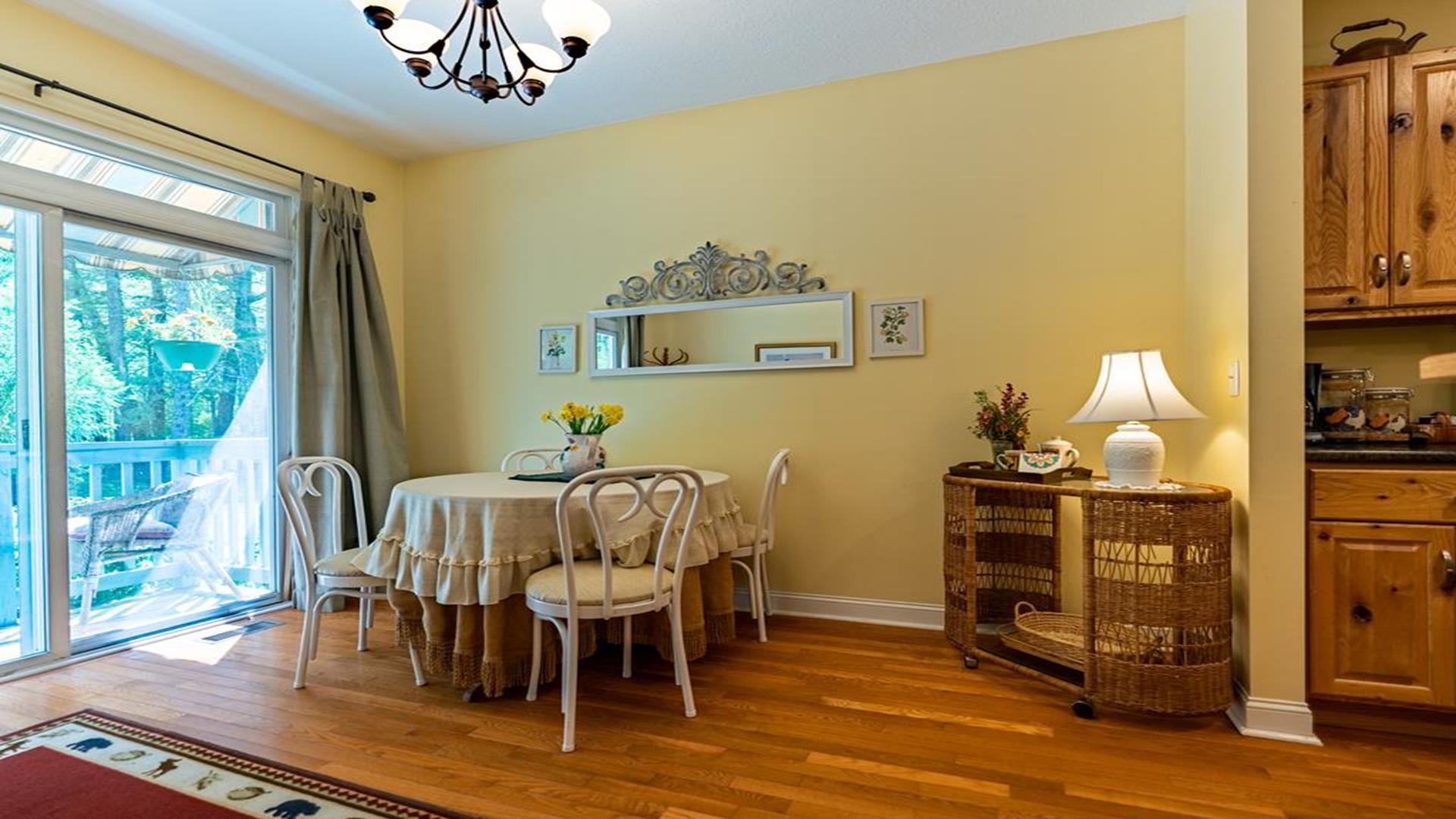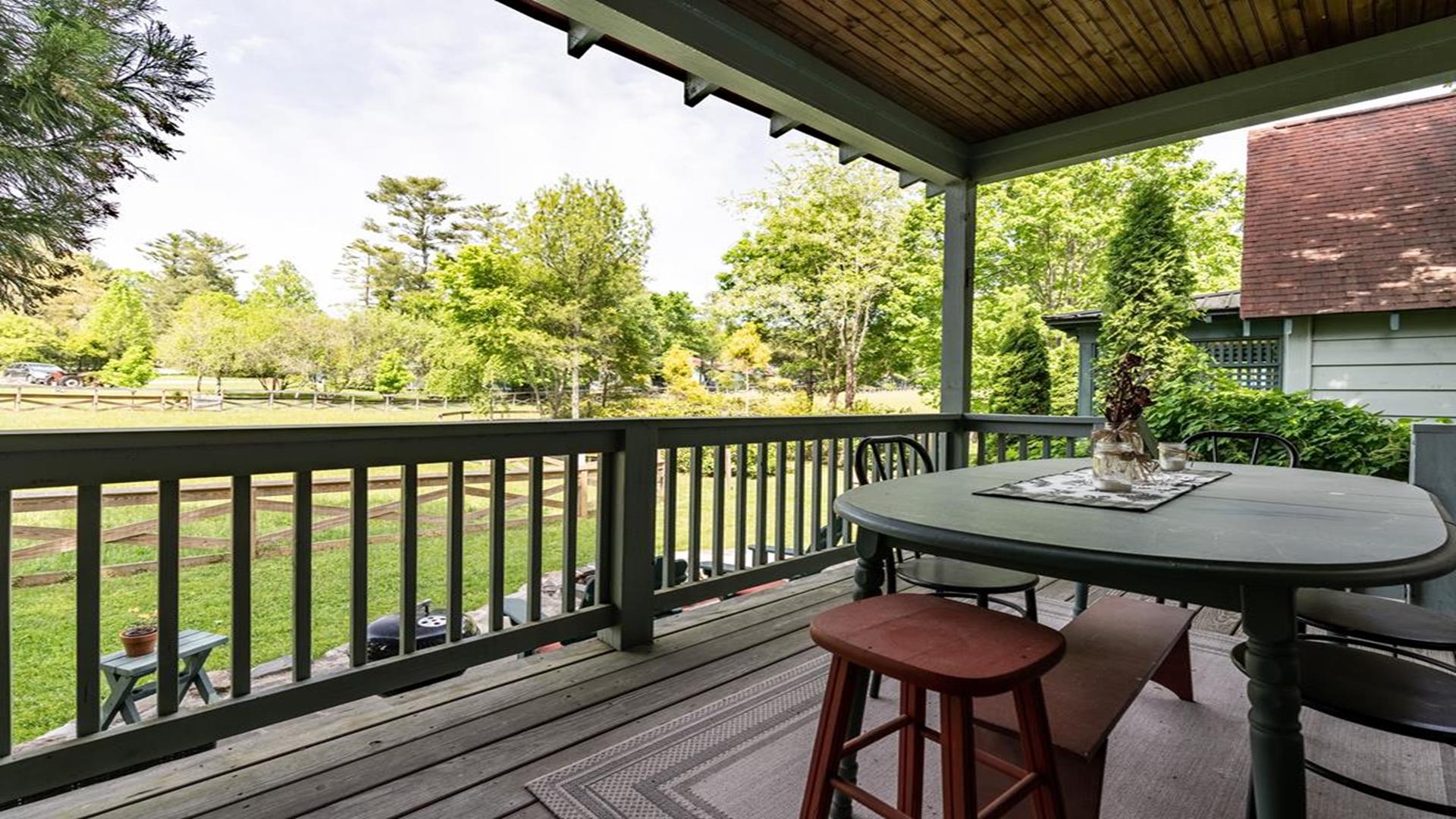 Welcome to The Lark, a relaxed and inviting 2-bedroom, 2-bath cottage tucked at the lower end of the Garden Hamlet, just off the pasture and mere steps from Highland Lake’s beloved Farm and Garden Experience. Designed for easy living and brimming with charm, this one-of-a-kind retreat offers the perfect blend of comfort, convenience, and connection to nature. From the moment you arrive, you’ll feel the laid-back spirit of The Lark. The expanded, covered front porch offers sweeping views of the pasture and invites you to dine outdoors or simply rock the days and evenings away in peaceful reflection. Inside, the cottage is thoughtfully appointed with cozy furnishings and modern amenities, making it ideal for a weekend escape or an extended stay. Guests enjoy two televisions with cable service and high-speed wireless internet access, ensuring entertainment and connectivity throughout your visit. Whether you're curling up with a book, sharing a meal with loved ones, or exploring the walkable charm of Highland Lake, The Lark makes it easy to feel at home. Please note that seasonal swimming pool access at the Highland Lake Inn is available with the rental of The Lark for a fee paid directly to the Inn—just ask your reservation agent for details. Boat usage on Highland Lake is not available. With its pastoral setting, thoughtful updates, and effortless charm, The Lark is a true gem in the Garden Hamlet—ready to welcome you year-round.