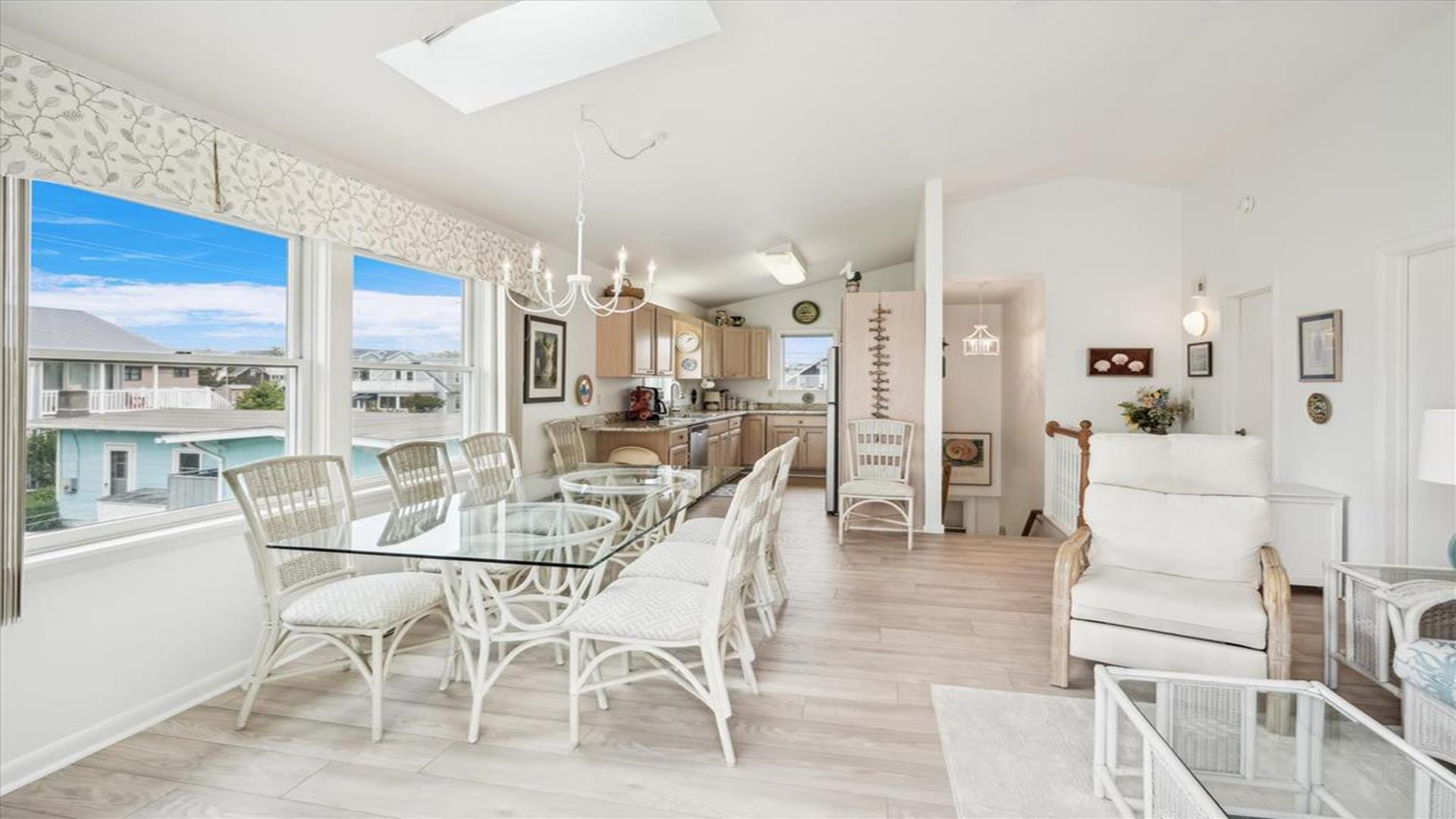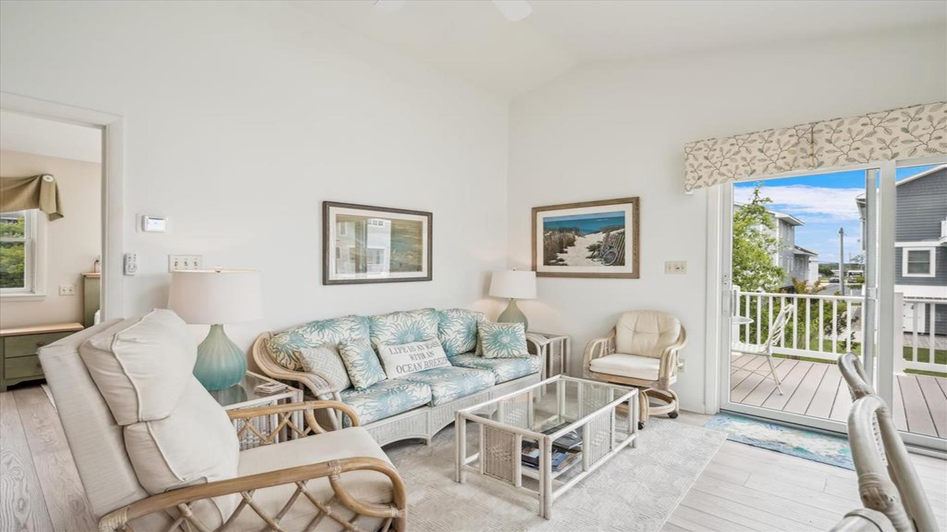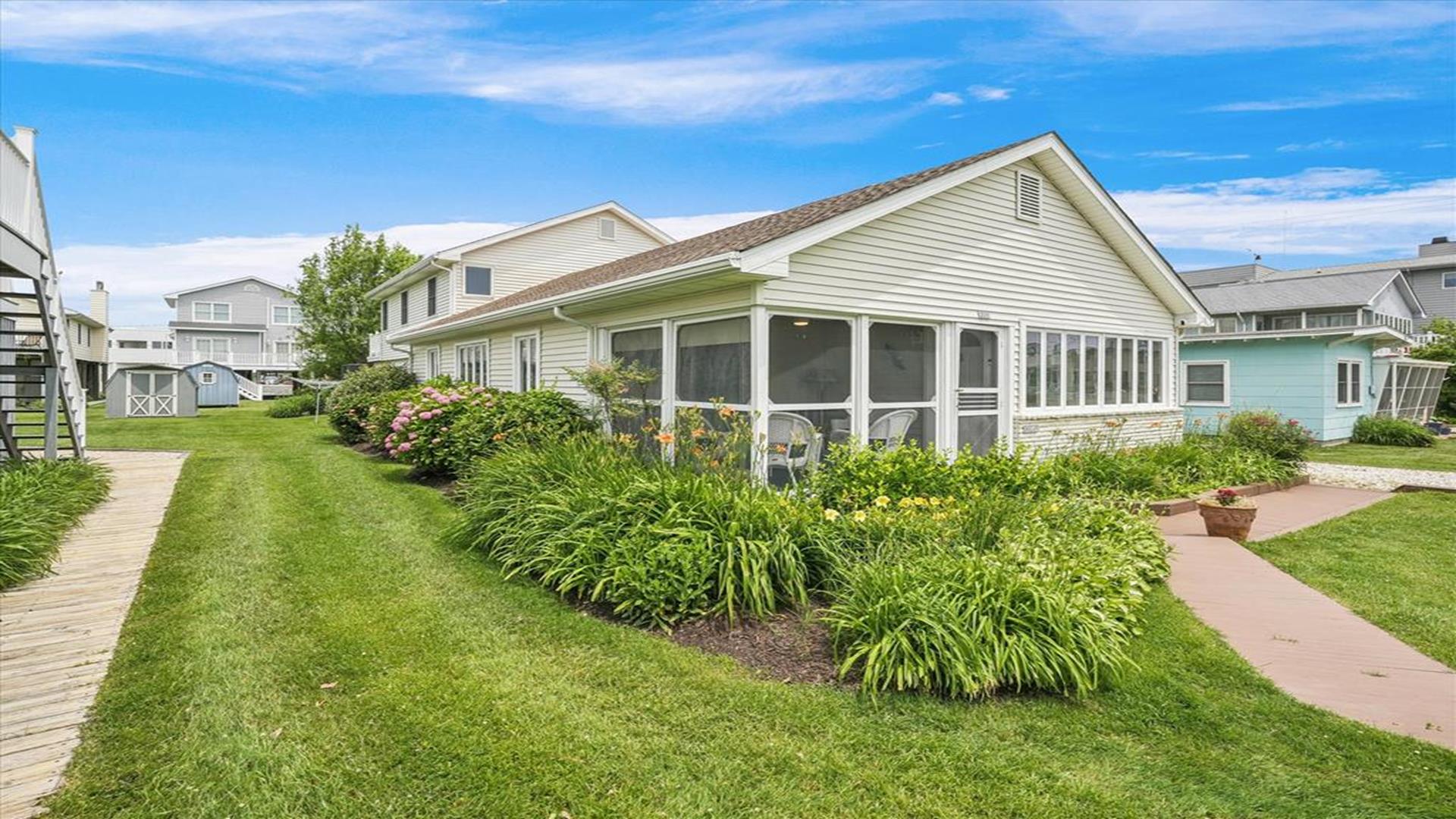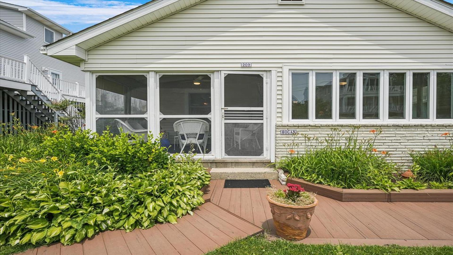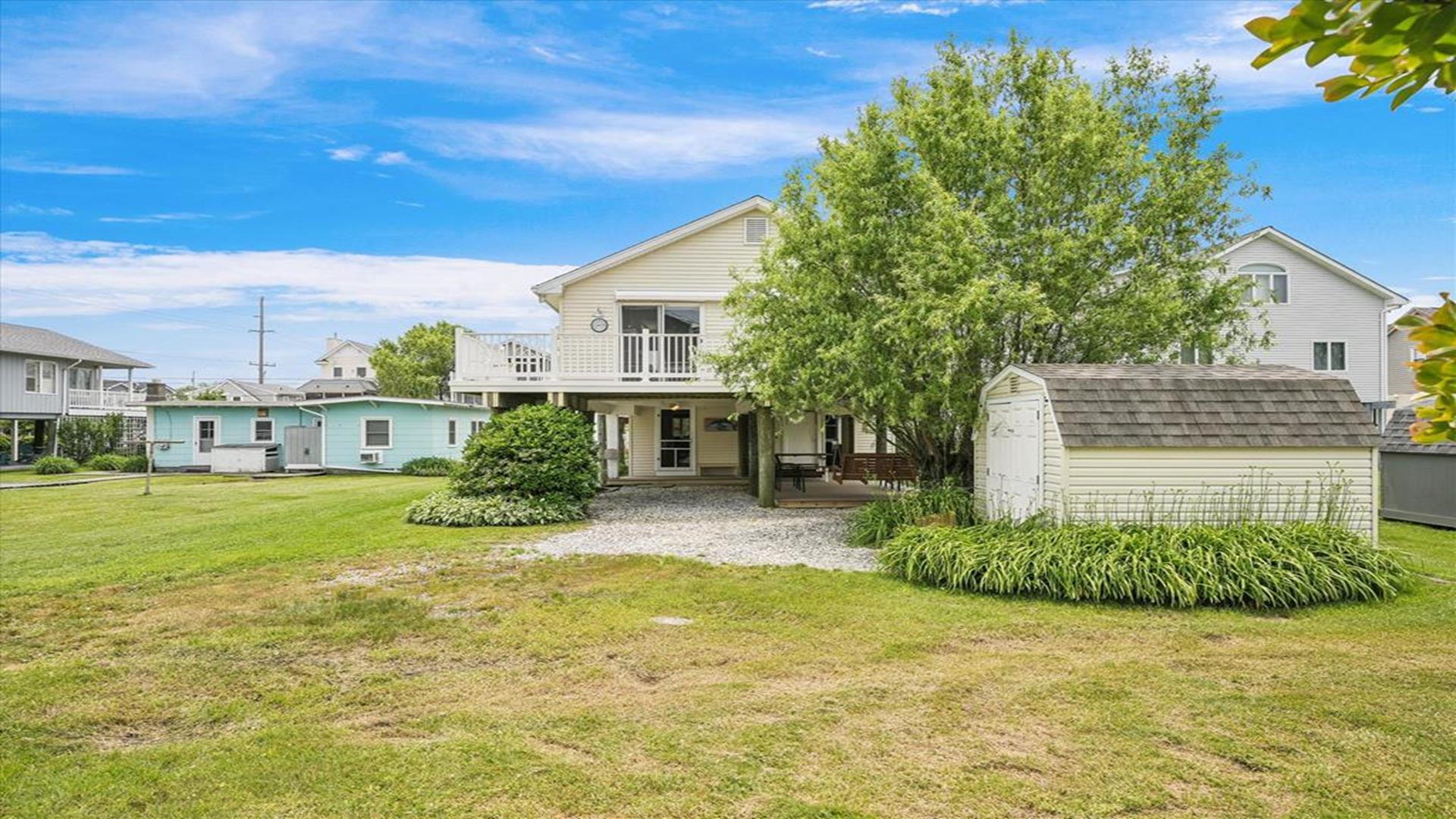 Welcome to this charming 4-bedroom, 2 1/2 bath cottage in the heart of Bethany Beach! Originally one of Bethany's original cottages, this property has been lovingly updated with a newer addition at the back, providing ample space for up to 8 guests. The older section of the cottage features 3 cozy bedrooms and 1 ½ baths, along with a comfortable living area and a delightful screen porch at the front. A small kitchen area on the first floor is equipped with a refrigerator, toaster, and coffee maker for your convenience. Upstairs, you'll find the main kitchen and dining area, along with the primary bedroom and bath. Step outside onto the spacious deck at the back and soak in the sunshine or enjoy a relaxing evening under the stars. Parking is a breeze with 3 spaces available at the house and an additional spot on the street. The property boasts modern amenities to enhance your stay, including 1 Queen bed, 1 Full sized bed and 4 Single beds, a dishwasher, microwave, disposal, and more. Stay comfortable year-round with central AC and ceiling fans throughout the cottage. Entertainment options include with wireless access for 3 TV's. When you're ready to unwind, head to the screened porch or fire up the BBQ for a cookout. After a day at the beach, rinse off in the convenient outdoor shower. Located in the desirable East of Route 1 area, this cottage is just a short distance from Bethany Beach's pristine shores, charming shops, and delicious dining options. Whether you're planning a family vacation or a getaway with friends, this property offers the perfect blend of comfort and convenience. Don't miss out on the opportunity to make unforgettable memories at this Bethany Beach gem. Book your stay today and experience the best of beach living!