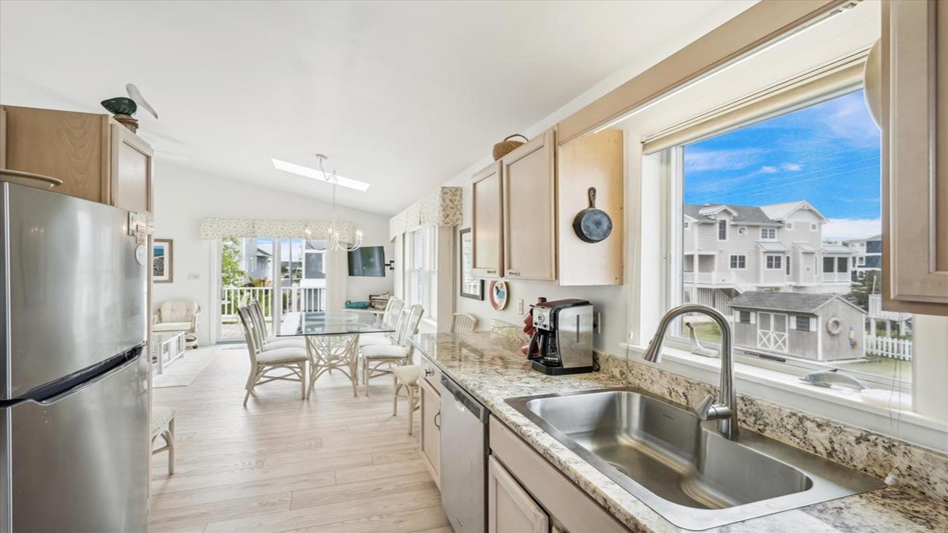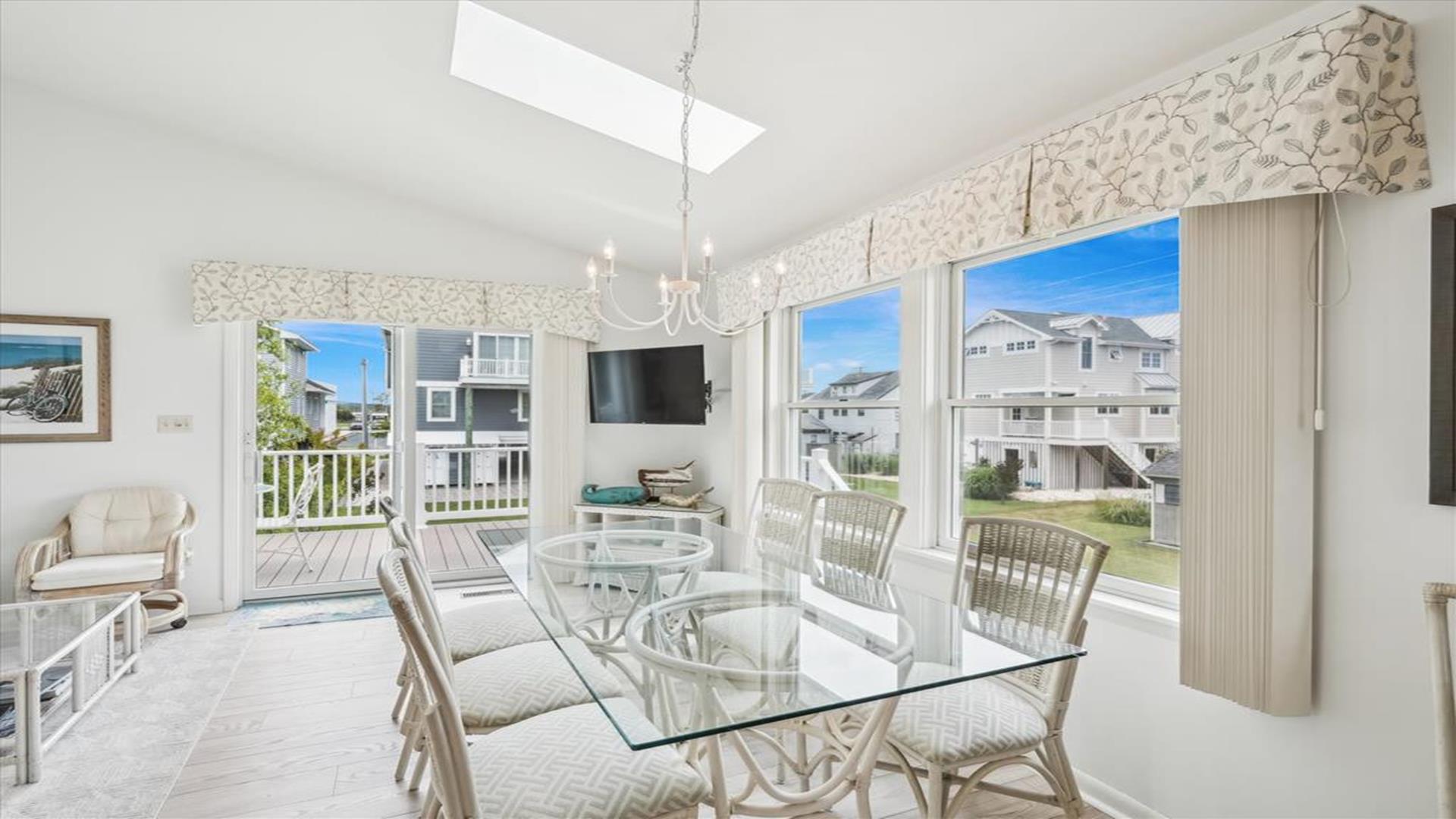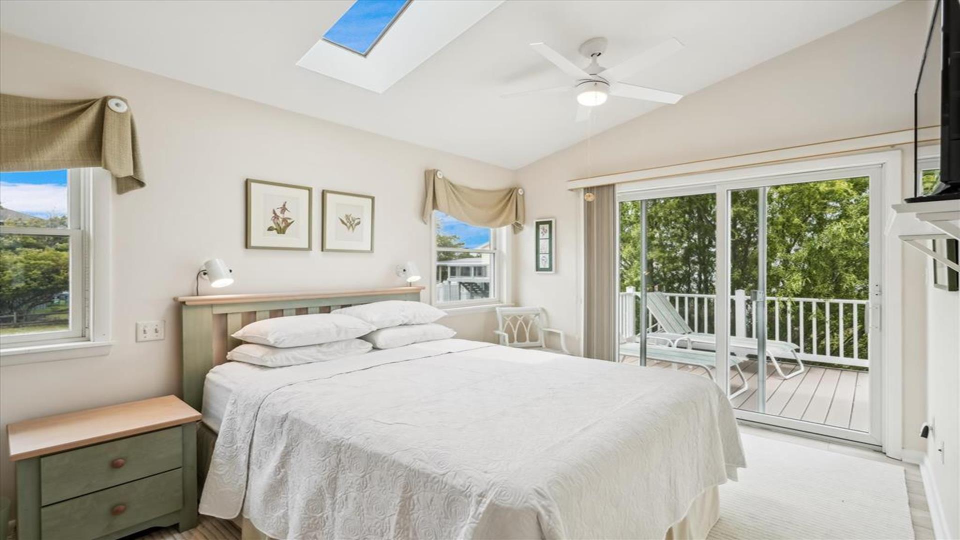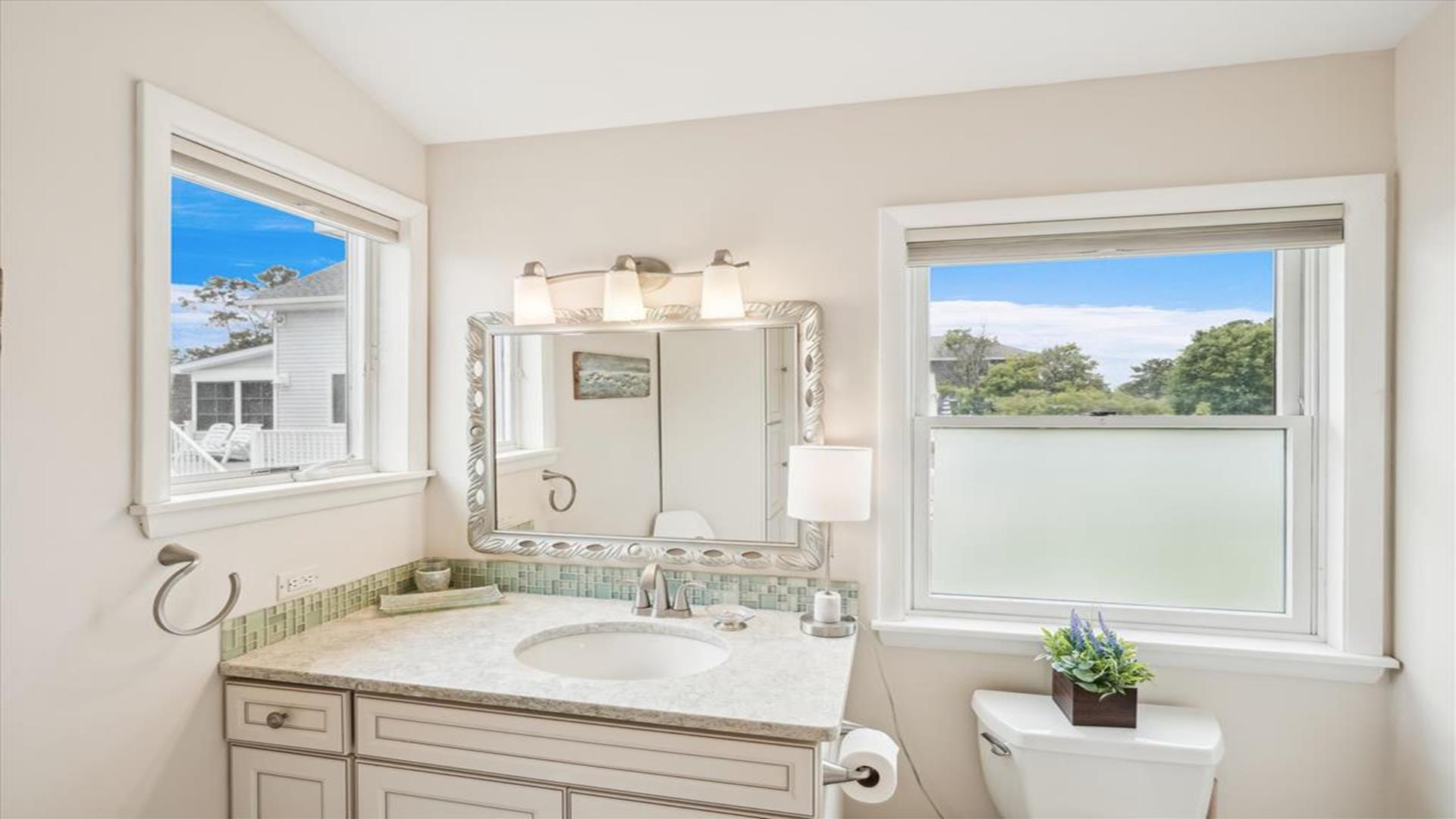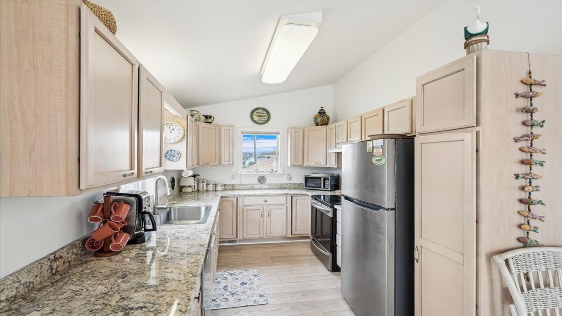 Welcome to this charming 4-bedroom, 2 1/2 bath cottage in the heart of Bethany Beach! Originally one of Bethany's original cottages, this property has been lovingly updated with a newer addition at the back, providing ample space for up to 8 guests. The older section of the cottage features 3 cozy bedrooms and 1 ½ baths, along with a comfortable living area and a delightful screen porch at the front. A small kitchen area on the first floor is equipped with a refrigerator, toaster, and coffee maker for your convenience. Upstairs, you'll find the main kitchen and dining area, along with the primary bedroom and bath. Step outside onto the spacious deck at the back and soak in the sunshine or enjoy a relaxing evening under the stars. Parking is a breeze with 3 spaces available at the house and an additional spot on the street. The property boasts modern amenities to enhance your stay, including 1 Queen bed, 1 Full sized bed and 4 Single beds, a dishwasher, microwave, disposal, and more. Stay comfortable year-round with central AC and ceiling fans throughout the cottage. Entertainment options include with wireless access for 3 TV's. When you're ready to unwind, head to the screened porch or fire up the BBQ for a cookout. After a day at the beach, rinse off in the convenient outdoor shower. Located in the desirable East of Route 1 area, this cottage is just a short distance from Bethany Beach's pristine shores, charming shops, and delicious dining options. Whether you're planning a family vacation or a getaway with friends, this property offers the perfect blend of comfort and convenience. Don't miss out on the opportunity to make unforgettable memories at this Bethany Beach gem. Book your stay today and experience the best of beach living!