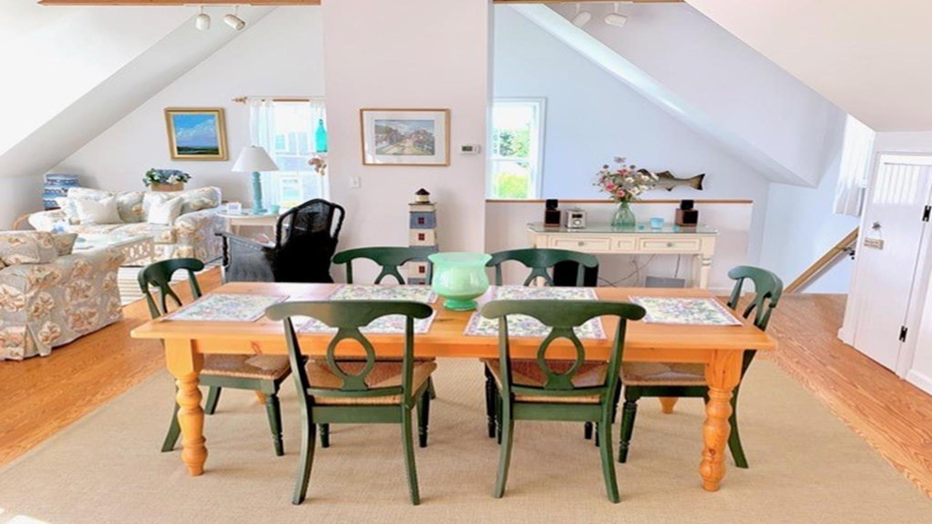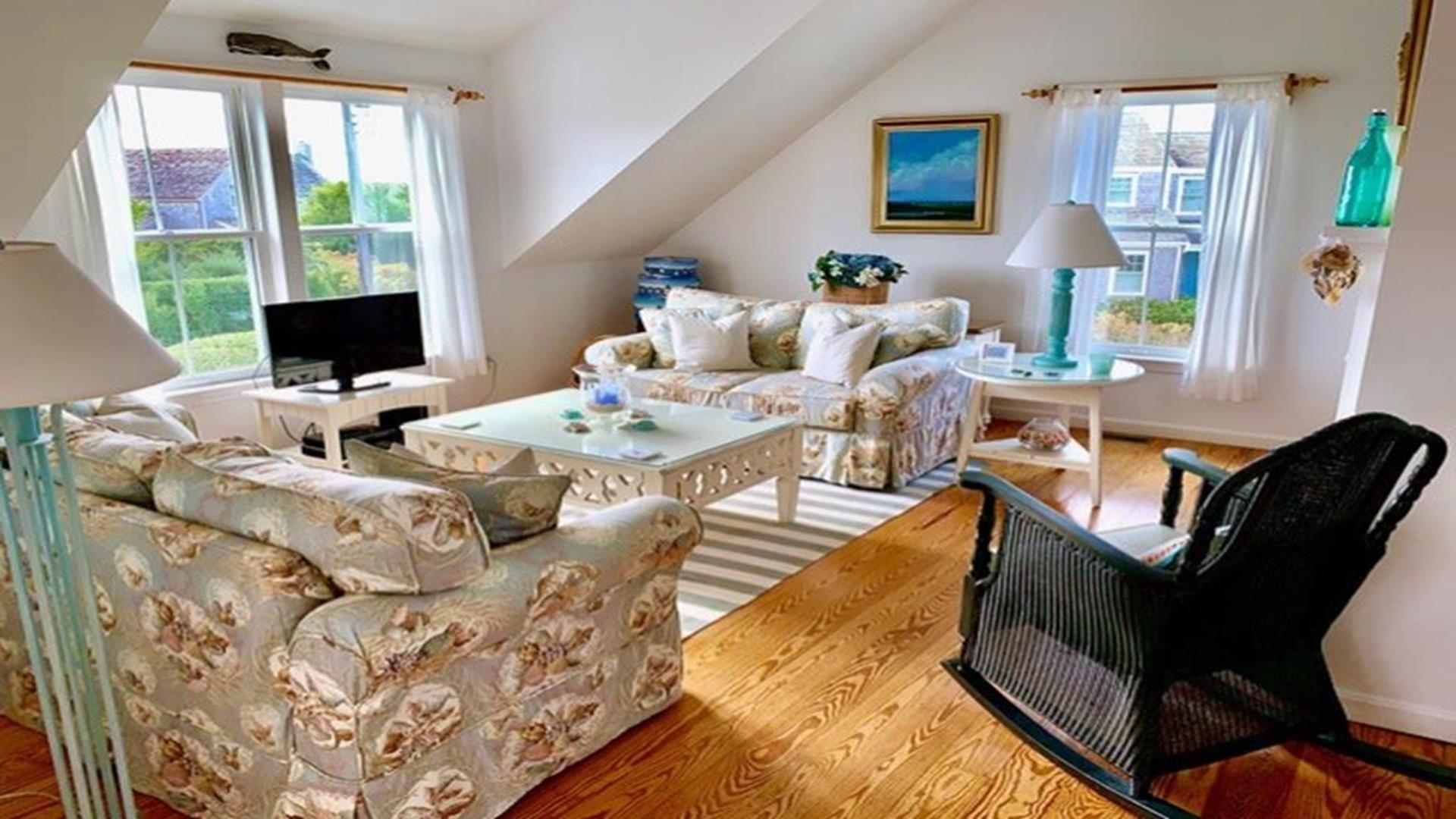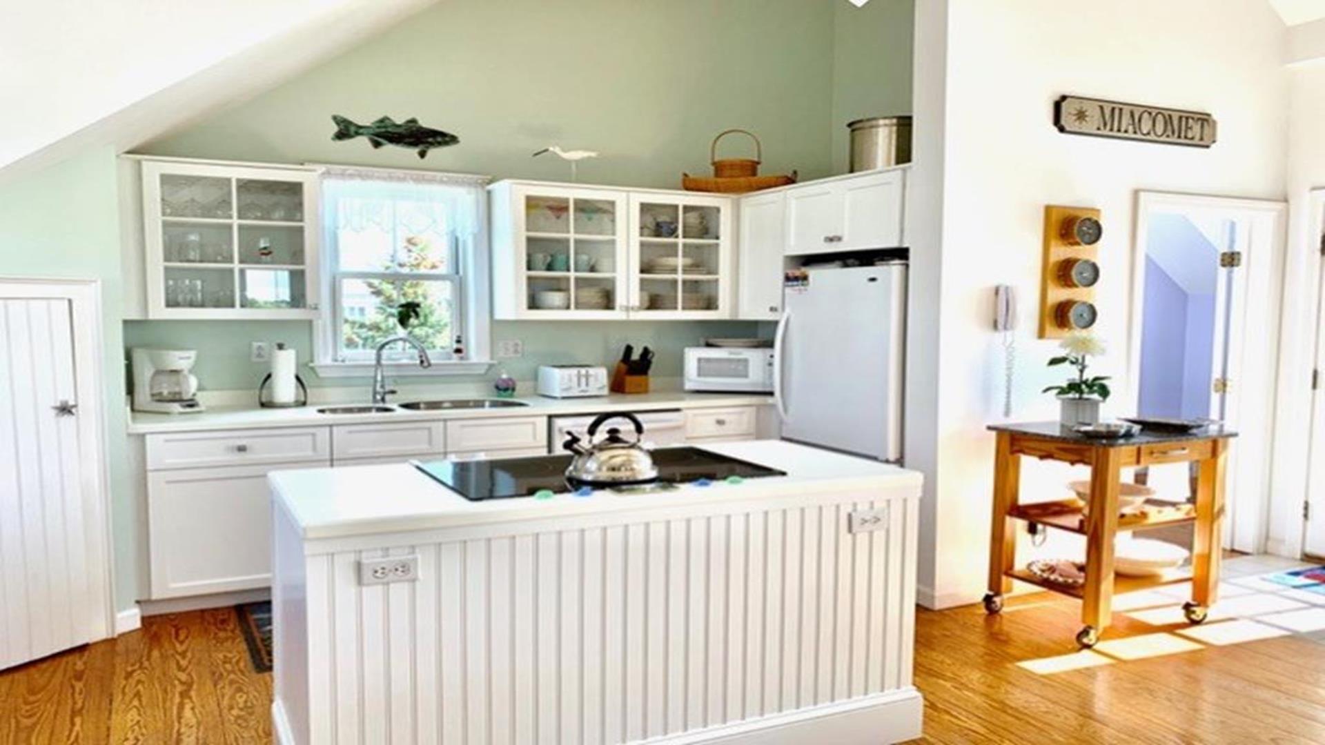 Bright and airy upside down house just 500 feet from Fisherman s/Surfside beach. Open living, kitchen, and dining area with cathedral ceiling and track lighting. Hear the surf and enjoy the lovely ocean views from the upstairs deck and living room. master bedroom custom painted in an Nantucket hydrangea theme. Amenities included central air conditioning and wireless internet service. | | First floor: To the right of the entry: bright and airy guest bedroom with ocean views, den with a sofa bed with access to the downstairs deck, twin bedroom. To the left of entry ; full guest bath, laundry area, large master bedroom with private bath. | | Second floor: Open living area including kitchen, dining area, living room with fireplace, and a half bath with skylight. A large deck with a table and chairs can be accessed of the dining area.
