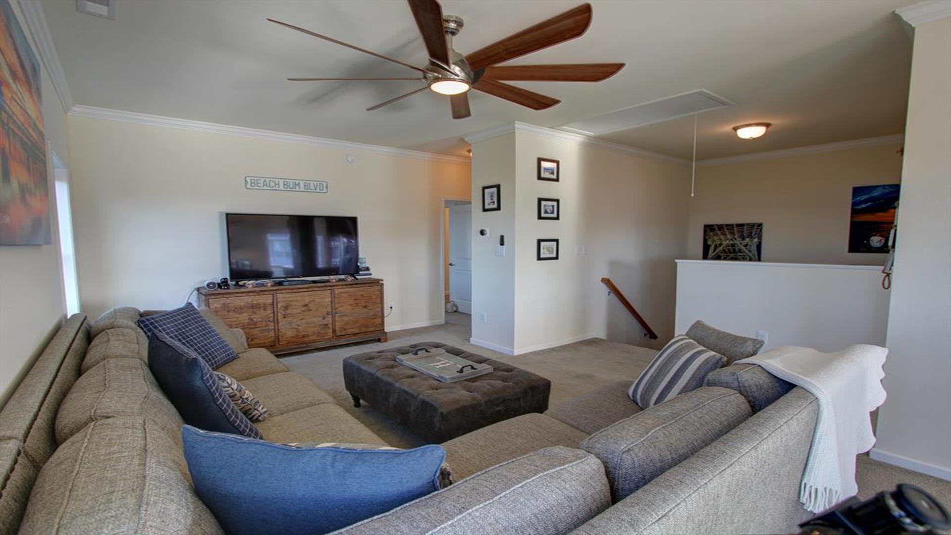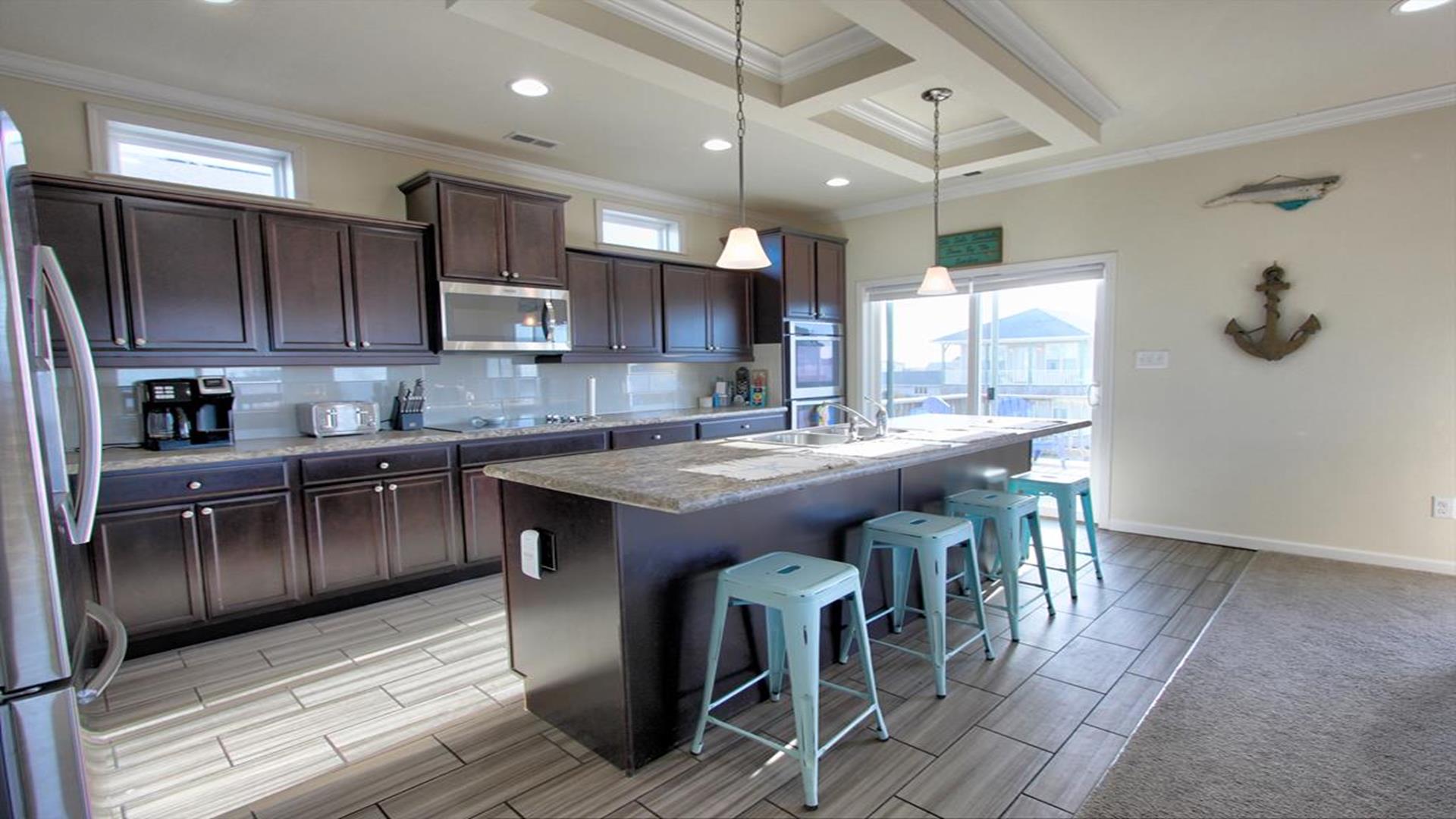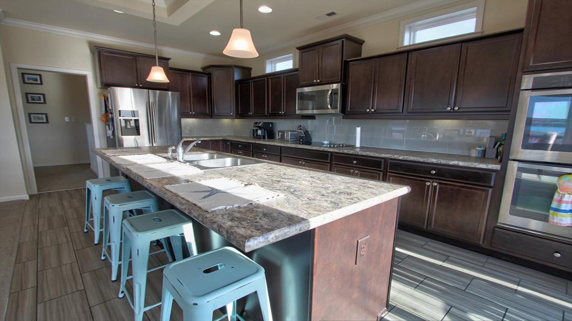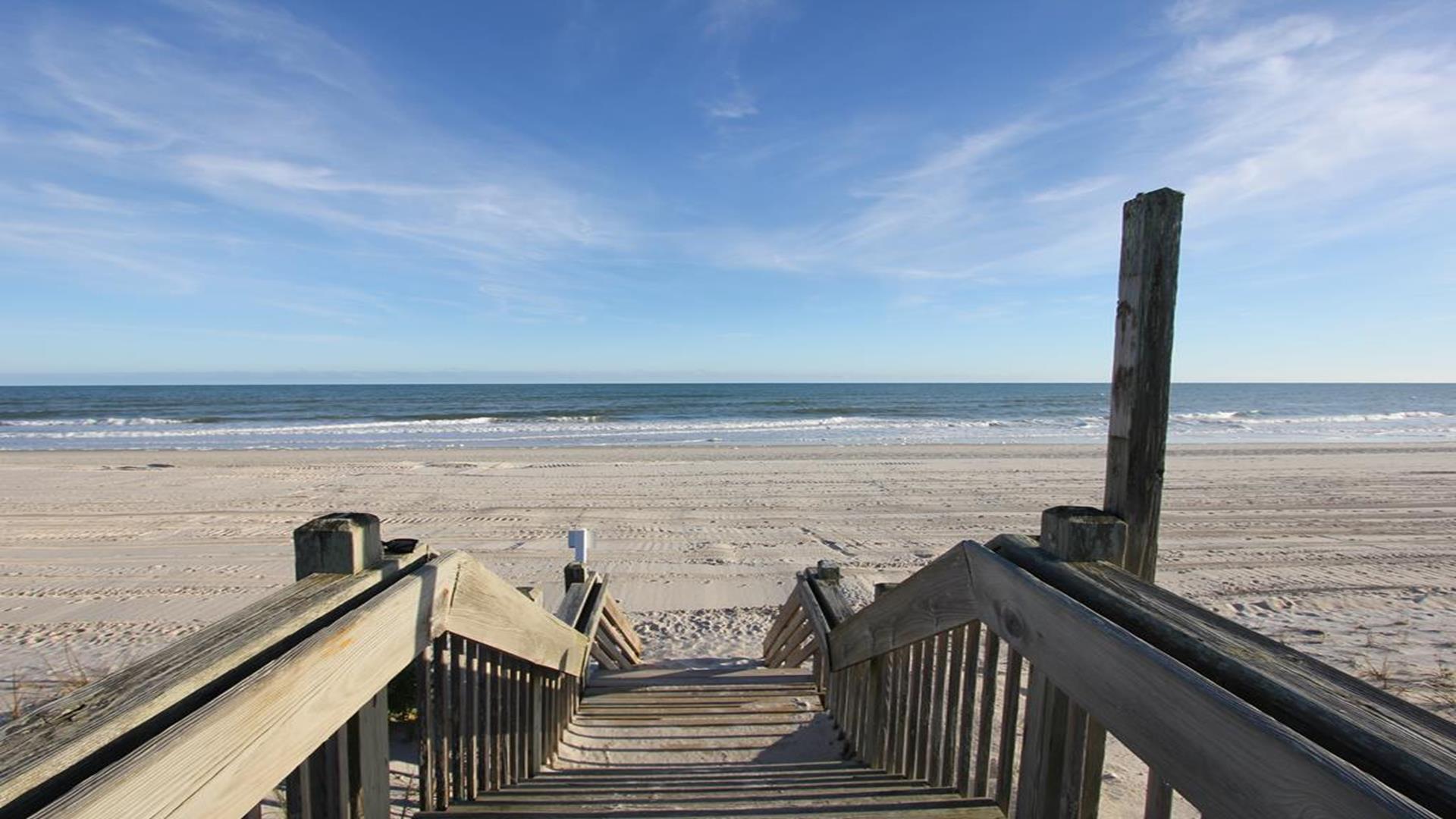 Enjoy amazing water views from this beautiful beach house. From the large wraparound decks, you can see the ocean, beach access, and panoramic views of the waterway. On the top floor with the best views, there is a spacious living, dining, and kitchen area. The huge dining table is perfect for family meals and gathering for games. There is a king bedroom with a private bath along with a half bath on this level. On the first floor, there is another king bedroom with private bath and a door to the covered deck. The third bedroom has two queen beds. The fourth bedroom has a pyramid bunkbed and a double bed. There is a hall bath with tub/shower and a separate laundry room. On the ground level, there is a covered area with furniture, grill, and storage building. The beach access is only a short distance away and best of all, you can bring your pet w/$215 fee for 1 dog. *Keyless Entry, Exterior Security Camera 4 BR, 3.5 Baths / Occupancy Limit: 12 - 2 K, 2 Q, 2 D, 1 T, LINENS ARE NOT INCLUDED unless purchased NO SMOKING ALLOWED