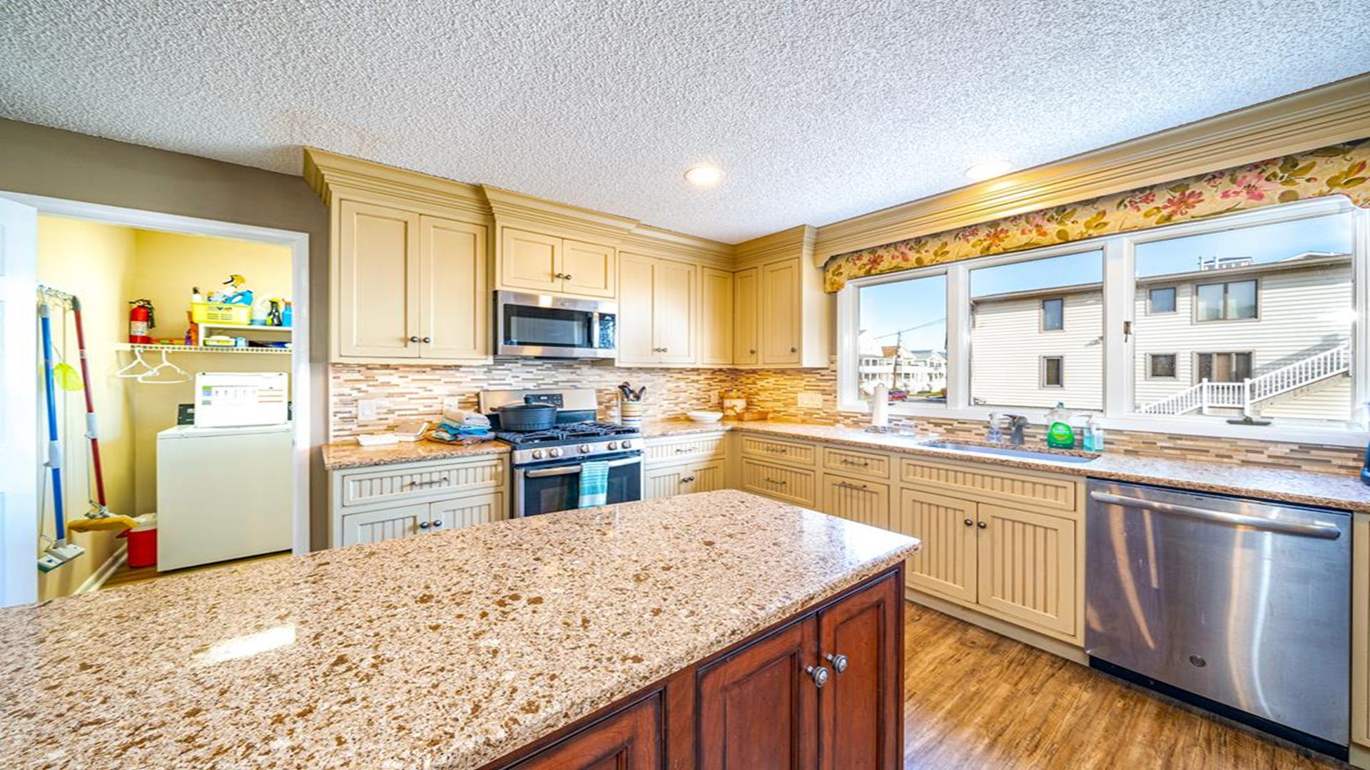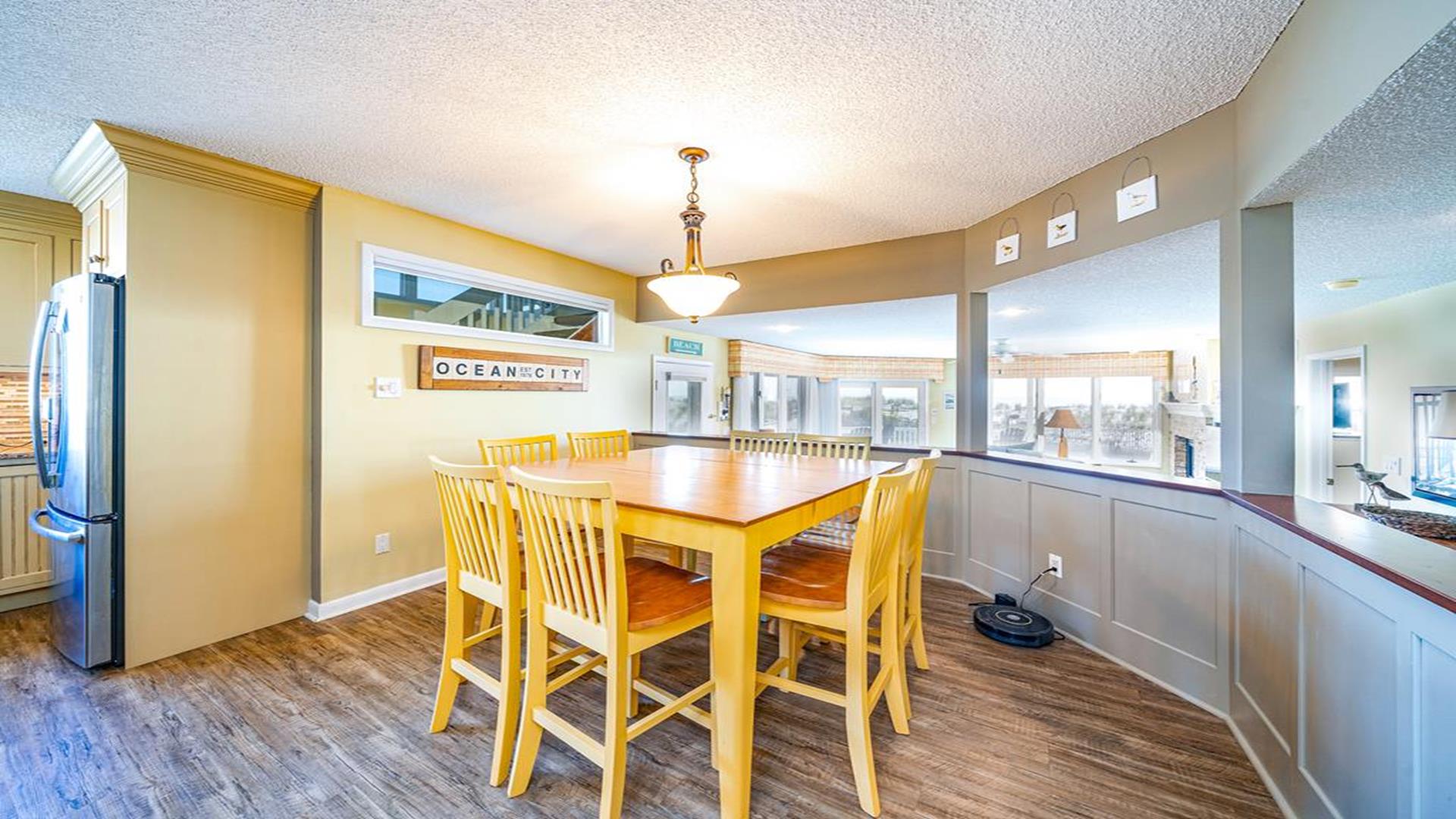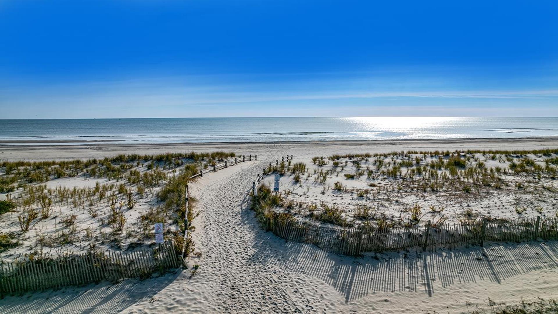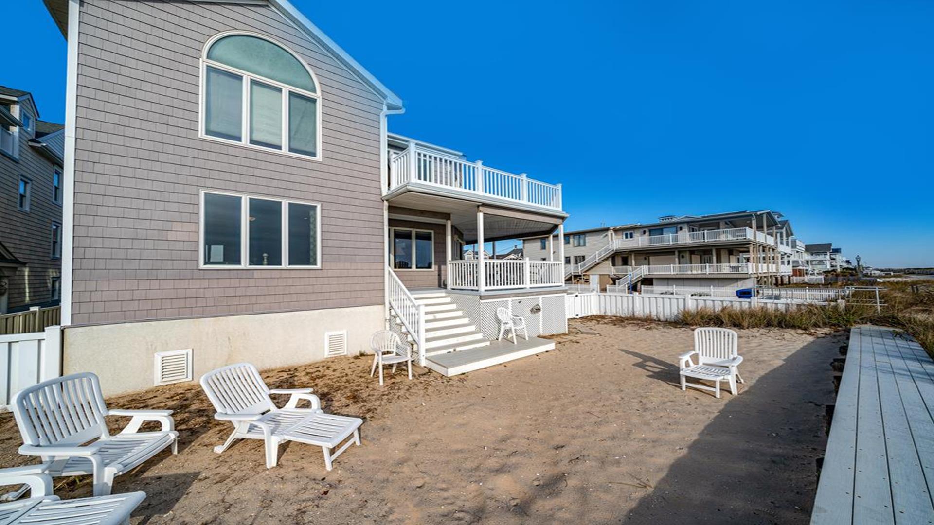 Beachfront Beauty! This first floor condo sits on a superb, deep South-end corner lot overlooking the beach and Atlantic Ocean. With 4 bedrooms,2.5 bathrooms, an extra-large eat-in kitchen, and a master suite that sits on the ocean-side, this unit is truly unique. The interior has been upgraded with hardwood and tile flooring, a gourmet, island kitchen with stainless appliances, custom tile backsplash, and luxurious baths with custom tile, high-end sink vanities and glass surround shower. Step out from either the living room or master bedroom onto the spacious, partial-wrap, covered deck and take in the panoramic views of the dunes, beach and water. The private balcony off one of the guest bedrooms also has ocean views. The exterior also includes maintenance free siding, decking and railings, an attached 1.5 garage with automatic door opener, additional off-street parking for one car, and a beautifully enclosed shower for rinsing off all of that sand. The mini beach area off of the oceanside deck is exclusive to this building and makes this a perfect spot to enjoy the sand, sun and salt water. This property is located in Ocean City, New Jersey, America's Greatest Family Resort. Ocean City is a family resort town located on an island along the Atlantic Ocean 15 miles south of Atlantic City. The beaches are lifeguard protected during the summer season and there are dedicated surfing beaches. In addition to the 2.5 mile boardwalk with amusement piers, shopping, restaurants and The Music Pier – an entertainment venue for concerts and other events, there is also the Bay Front area for watersports, fishing charters, boat rentals and a Down Town Shopping District with unique stores, restaurants and of course our famous Spring and Fall Block Parties. Contact us Today to Book your Vacation Rental in Ocean City, NJ.