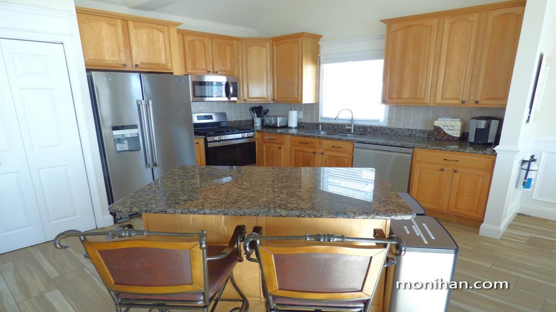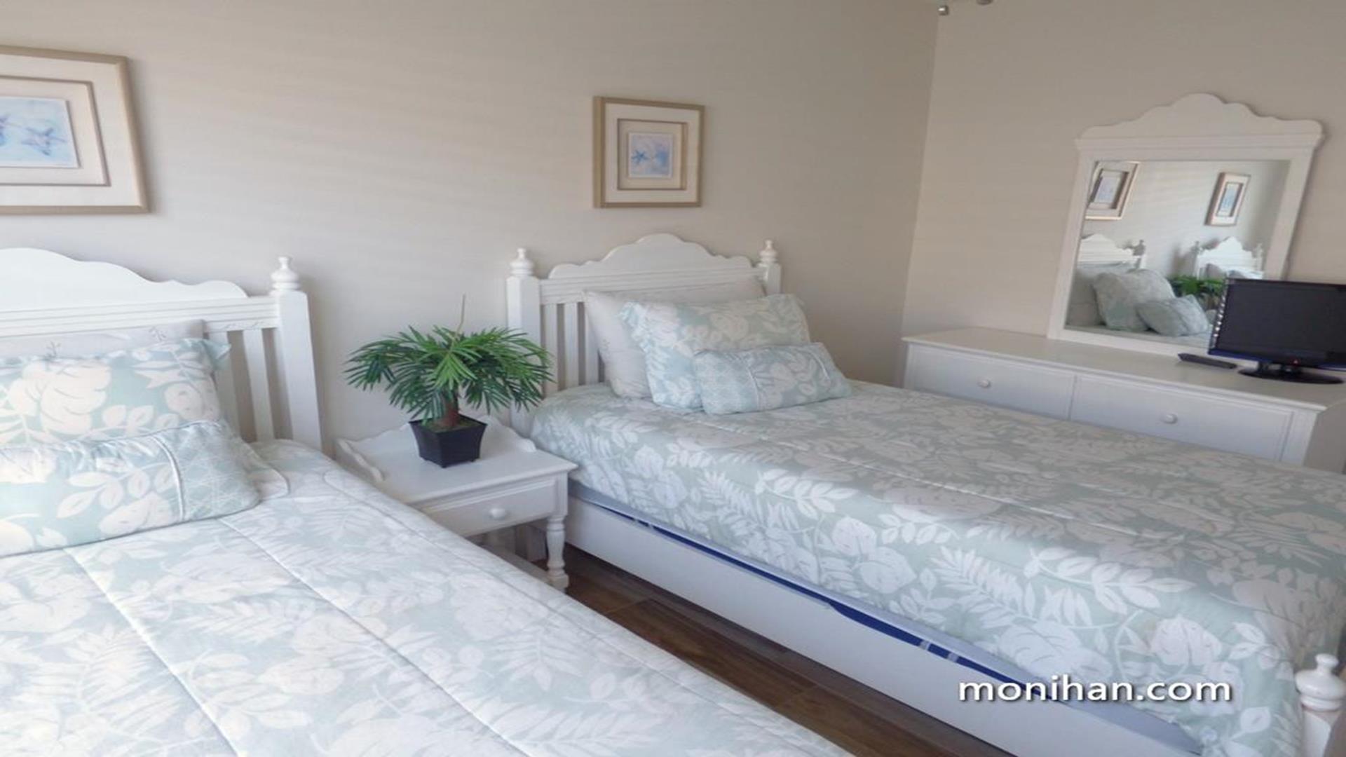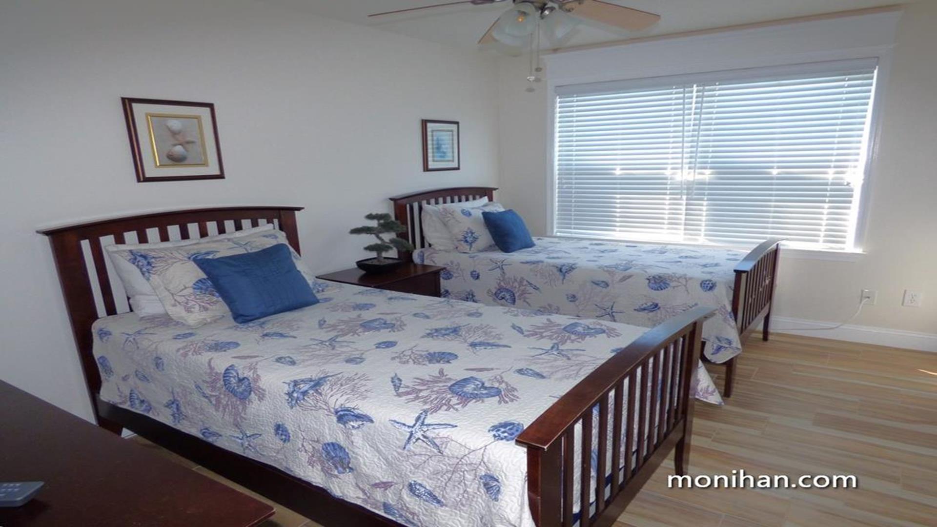 This magnificent second floor beach front property is located on the quiet south end of the island. Your newly renovated vacation home is beautifully furnished with hardwood floors, stainless steel kitchen appliances and granite tops. After walking a few steps from the beach, your family can relax in the comforts of the high end furniture, plasma/LCD TVs and wireless internet throughout the home. It's truly a vacation heaven.