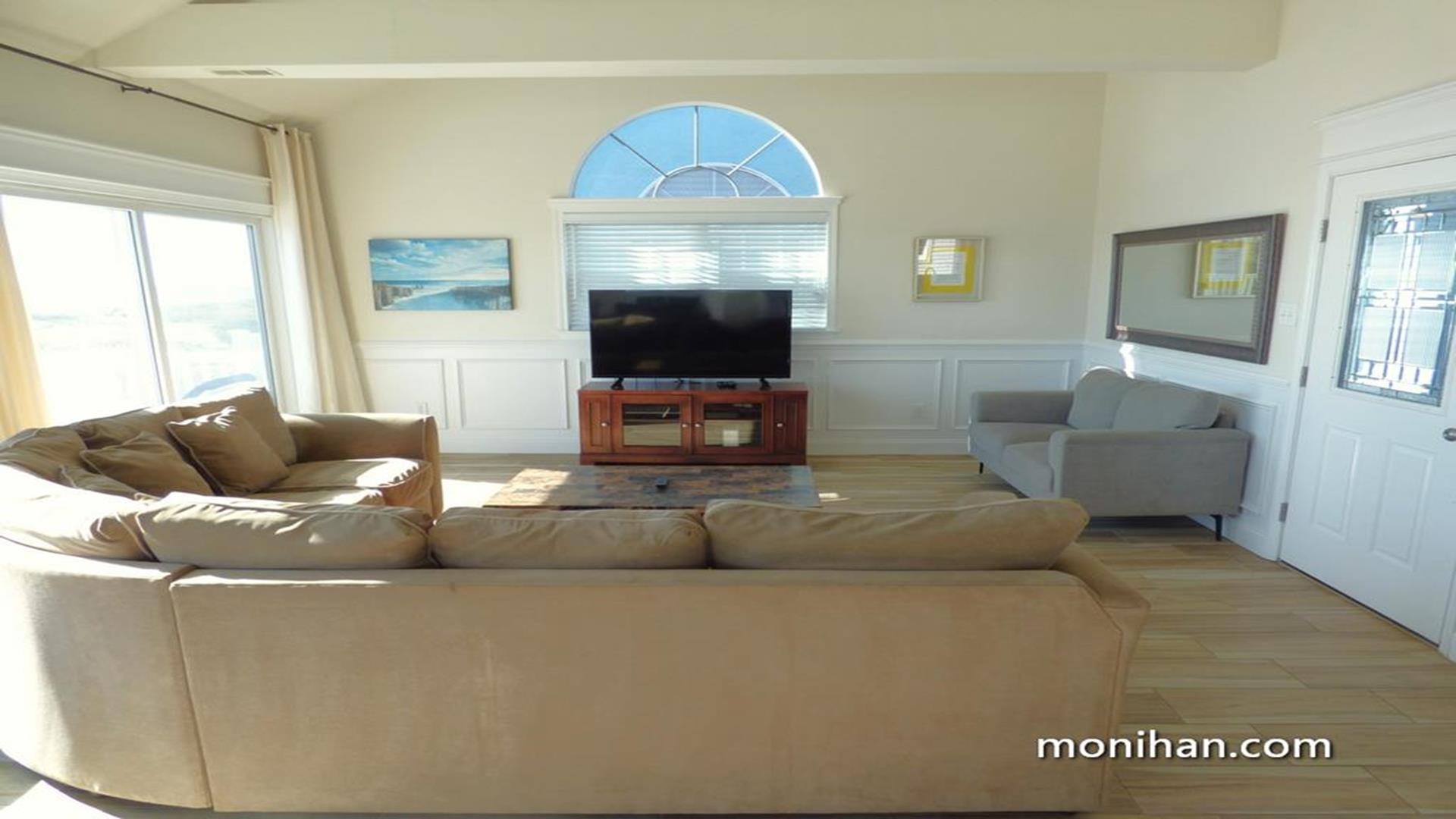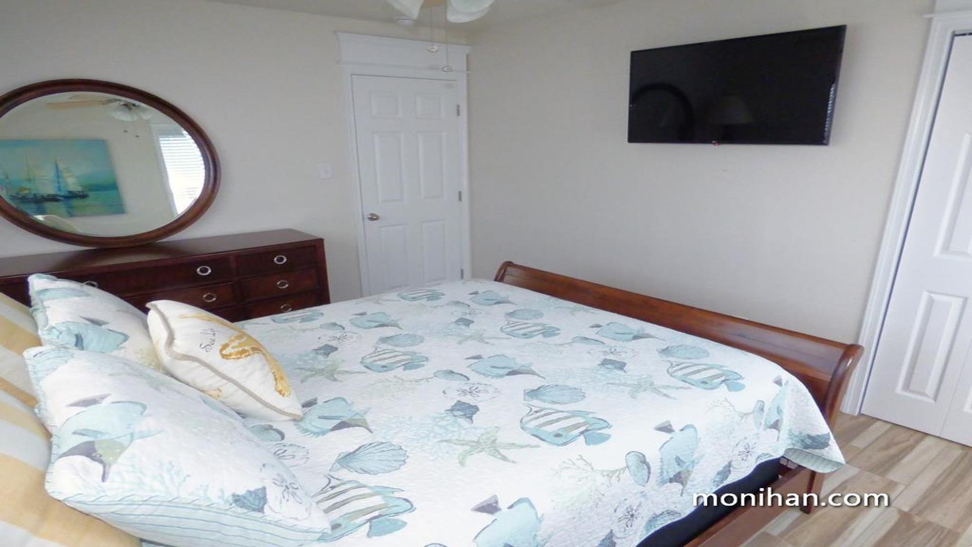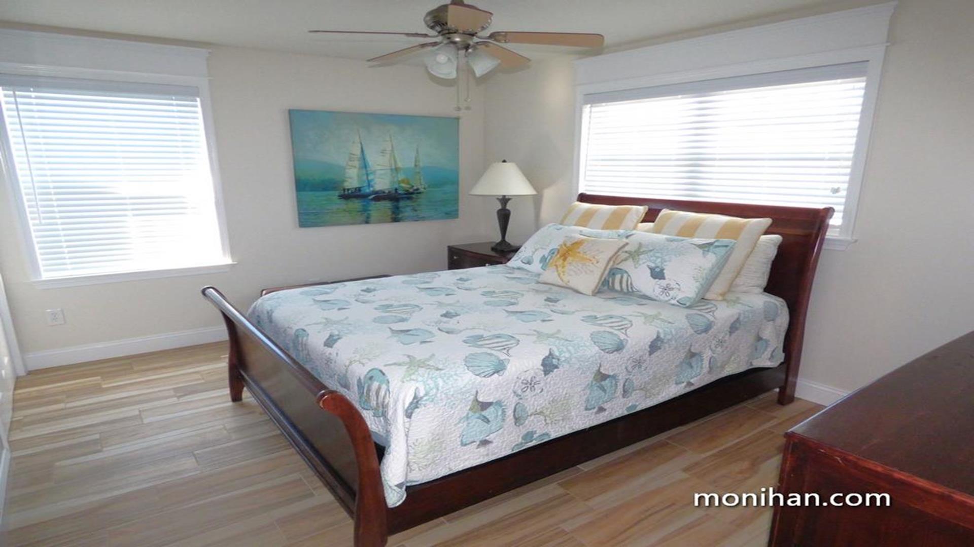 This magnificent second floor beach front property is located on the quiet south end of the island. Your newly renovated vacation home is beautifully furnished with hardwood floors, stainless steel kitchen appliances and granite tops. After walking a few steps from the beach, your family can relax in the comforts of the high end furniture, plasma/LCD TVs and wireless internet throughout the home. It's truly a vacation heaven.