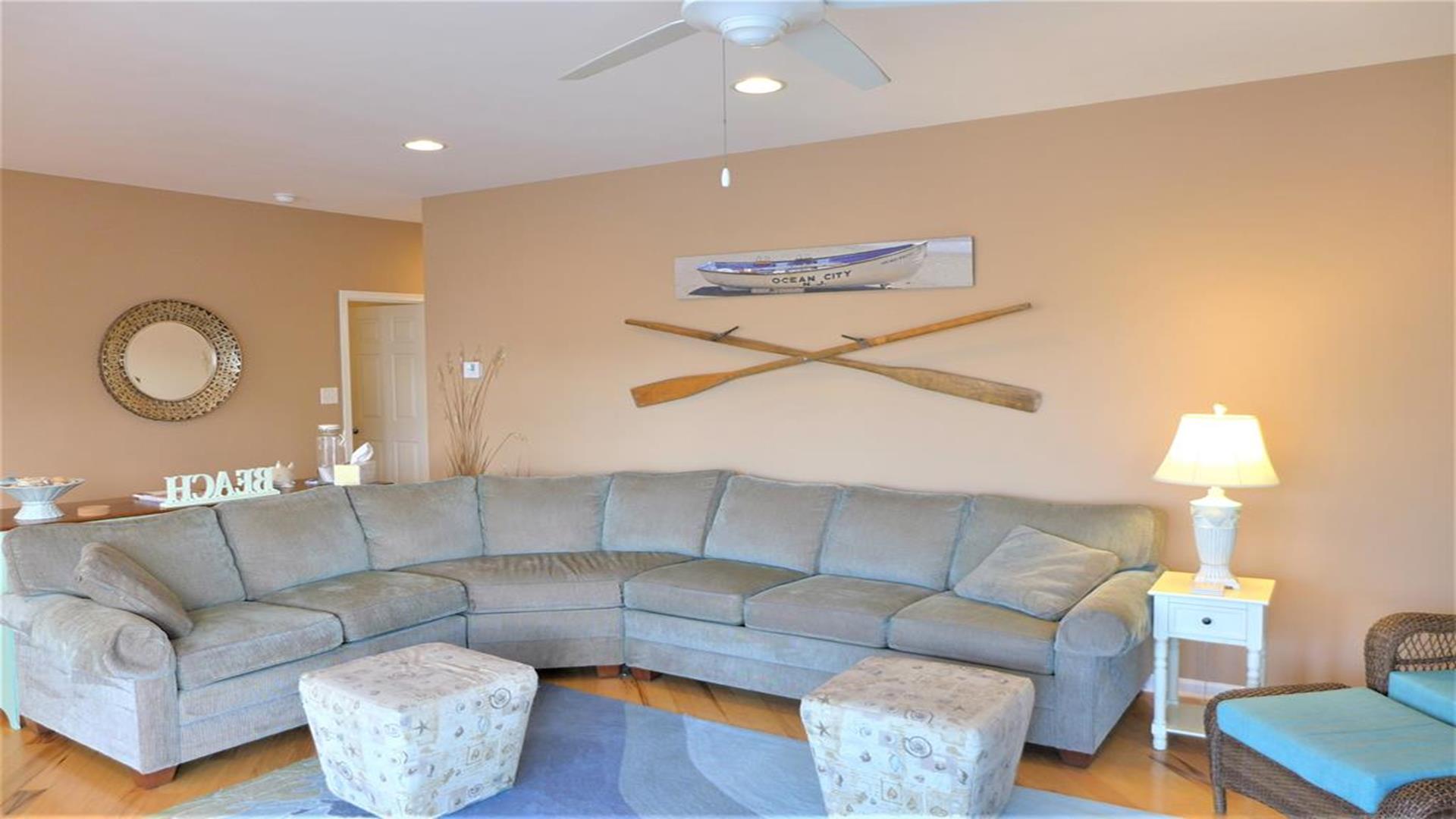 This spacious 1st floor condo unit has 3 bedrooms and 2 baths. It is conveniently located just a block from the beach and boardwalk. Uncle Bill s famous pancake House is just a block away as well as a convenient market and ice cream parlor. Enjoy Ocean City s famous boardwalk and white sandy beaches and make some fabulous vacation memories.