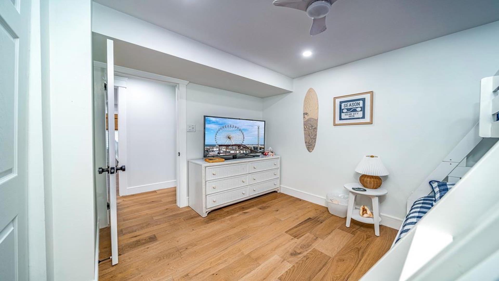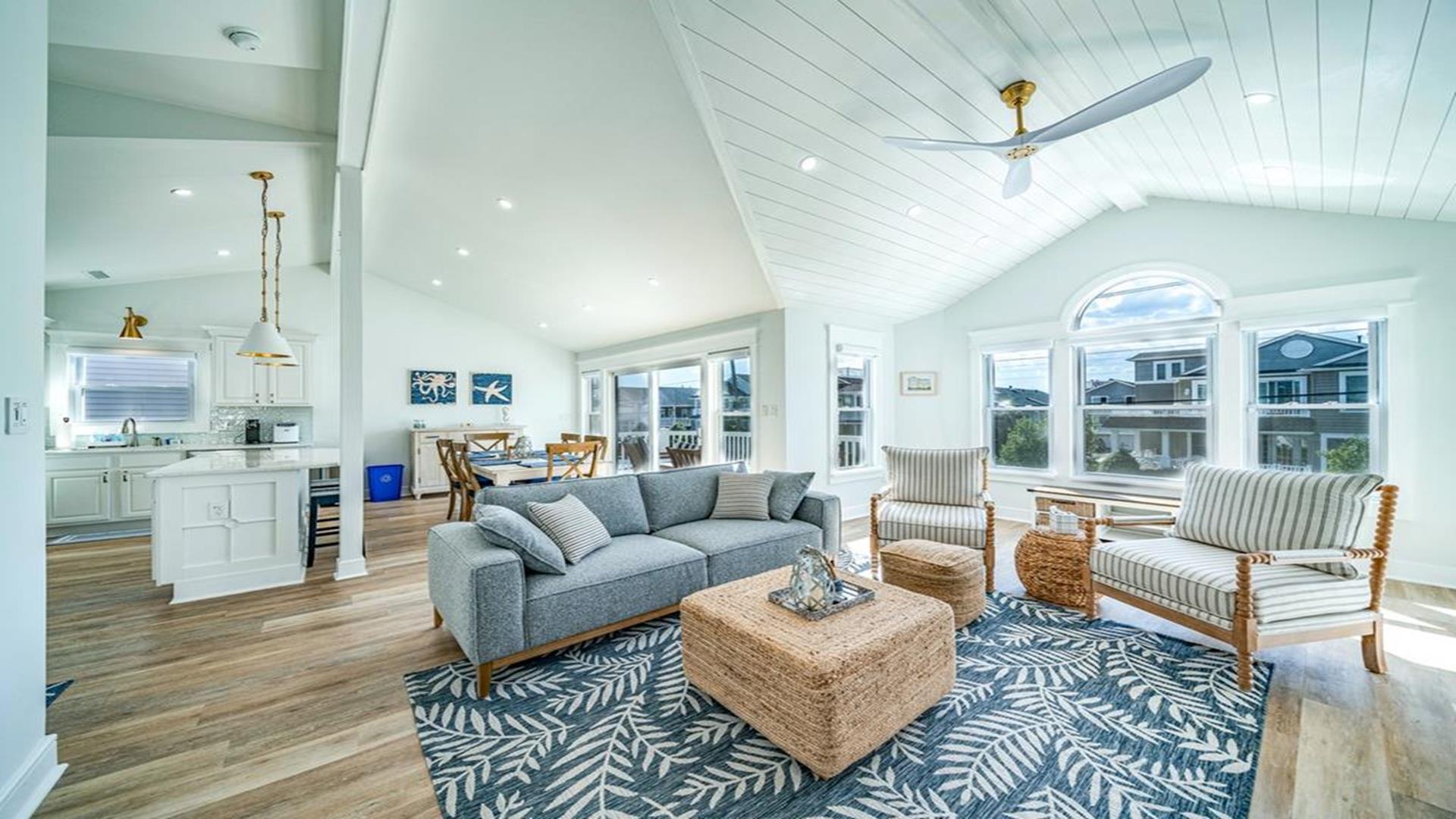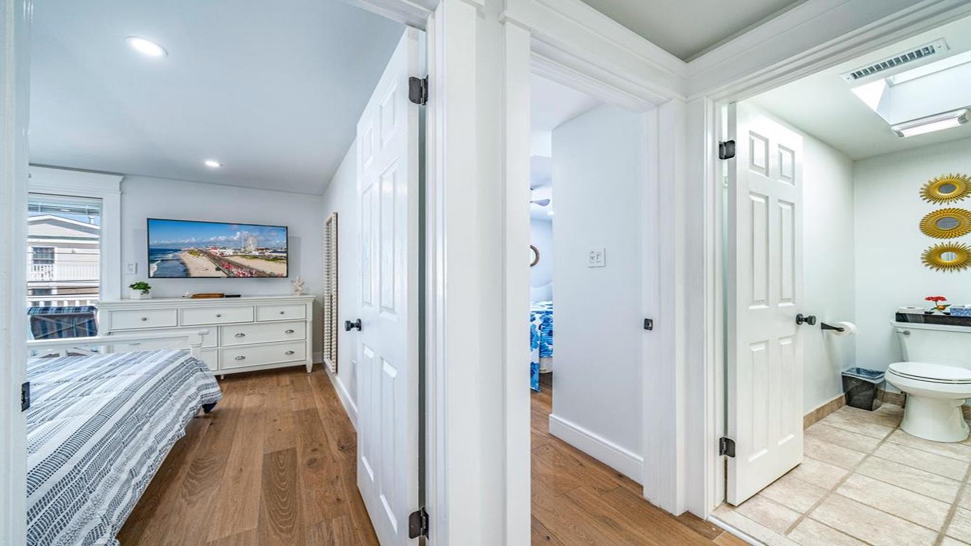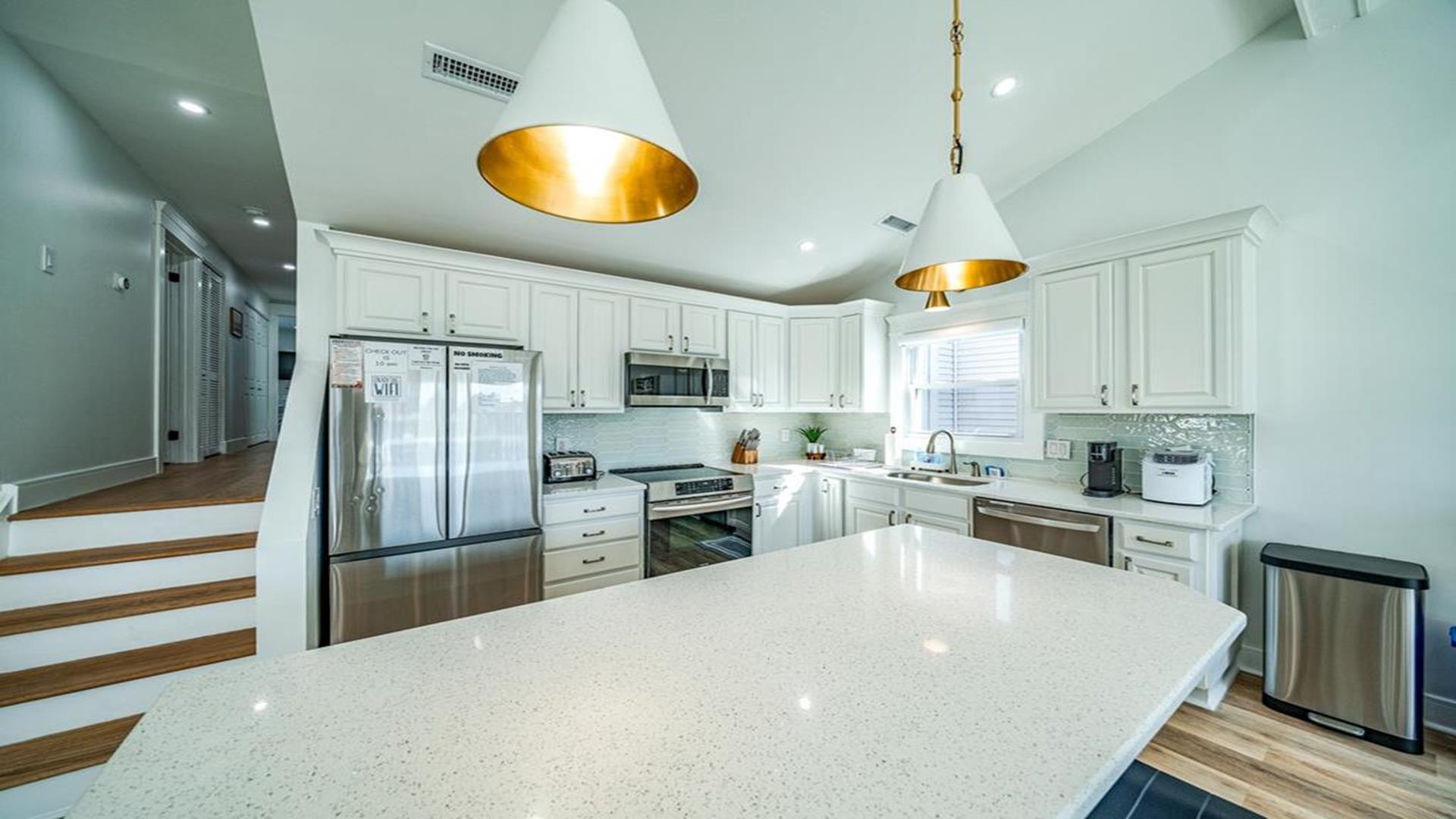 2527 CENTRAL AVE – TOP FLOOR WITH OCEAN VIEWS FROM MULTIPLE VANTAGE POINTS. NEWLY REMODELED! Beautifully decorated & designed 2nd floor condo, within the heart of the Gold Coast. New features throughout the entire home to make you feel like you are at a home away from home. Enjoy your morning coffee or evening cocktails on the huge rear deck, with an ocean view or follow the ocean breeze to the cozy front porch for happy hour and evening sun. Relax & Enjoy the best of both worlds on either the front or rear newly fully furnished decks. Only 2 blocks from the boardwalk and conveniently located between Kessel’s Korner and the sweetest block on Asbury (Nauti Donuts, Uncle Bills & Aunt Annie’s). 3RD House to the beach and less than 1 block walk to the 25th or 26th street beach. Home features new hard wood white oak floors, entire home freshly painted with 4 large Bedrooms - all with smart TV’s, remote ceiling fans w/newer comfy mattresses and 2 full Baths. NEW Trim & Crown Molding on every window and door in the house. Two NEW sliding glass doors and windows. NEW recessed lights throughout the entire home. New Cedar Impression Siding on both decks. NEW Glass White Picket backsplash & kitchen counter. New outside shower and more. The master bedroom has an ocean view with a spacious private bathroom, full glass enclosed shower and double sink vanity. Spacious fully renovated Living Room with High Vaulted Ship Lap Ceilings with architectural beams and trim, a wall of windows and crown molding and a 65-inch smart TV on the shiplap fire place. Remodeled Kitchen w/ 84-inch gorgeous quartz topped island, white glass picket Backsplash, new stainless-steel appliances, built in microwave and new Coffee maker & Keurig. Master Bedroom #1 has a luxurious king bed & private bath with a 6-foot double vanity and ocean views right from your bed or exit the new built in blinds 6 foot patio glass door that opens to a huge deck with ocean views. Bedroom 2 & 3 have ship lap walls with beautiful natural shades. Bedroom #2 has a bunk bed with one double bed, one twin bed and trundle pull out to sleep up to 4. Bedroom #3 has a double bed and a trundle pull out to sleep up to 3. Bedroom #4 has a queen bed with an ocean view and entrance to huge fully furnished deck. Attached large Garage to securely store all beach attire and bikes w/ 2 Additional parking spots. No smoking or pets, please. PLEASE NOTE: Pillows and bedspreads are provided. TOWELS, SHEETS AND ADDITIONAL BLANKETS ARE NOT INCLUDED and can be rented from SHEETS TO THE WIND at *hidden website*
