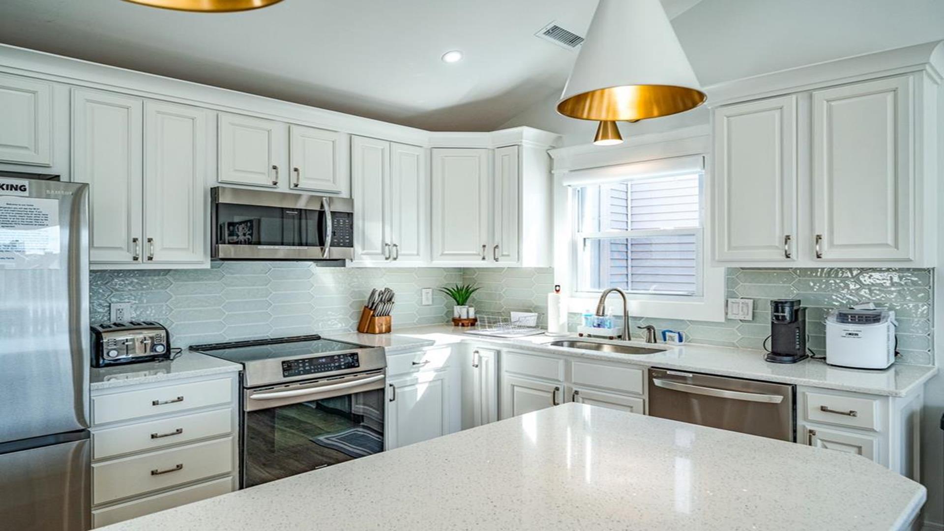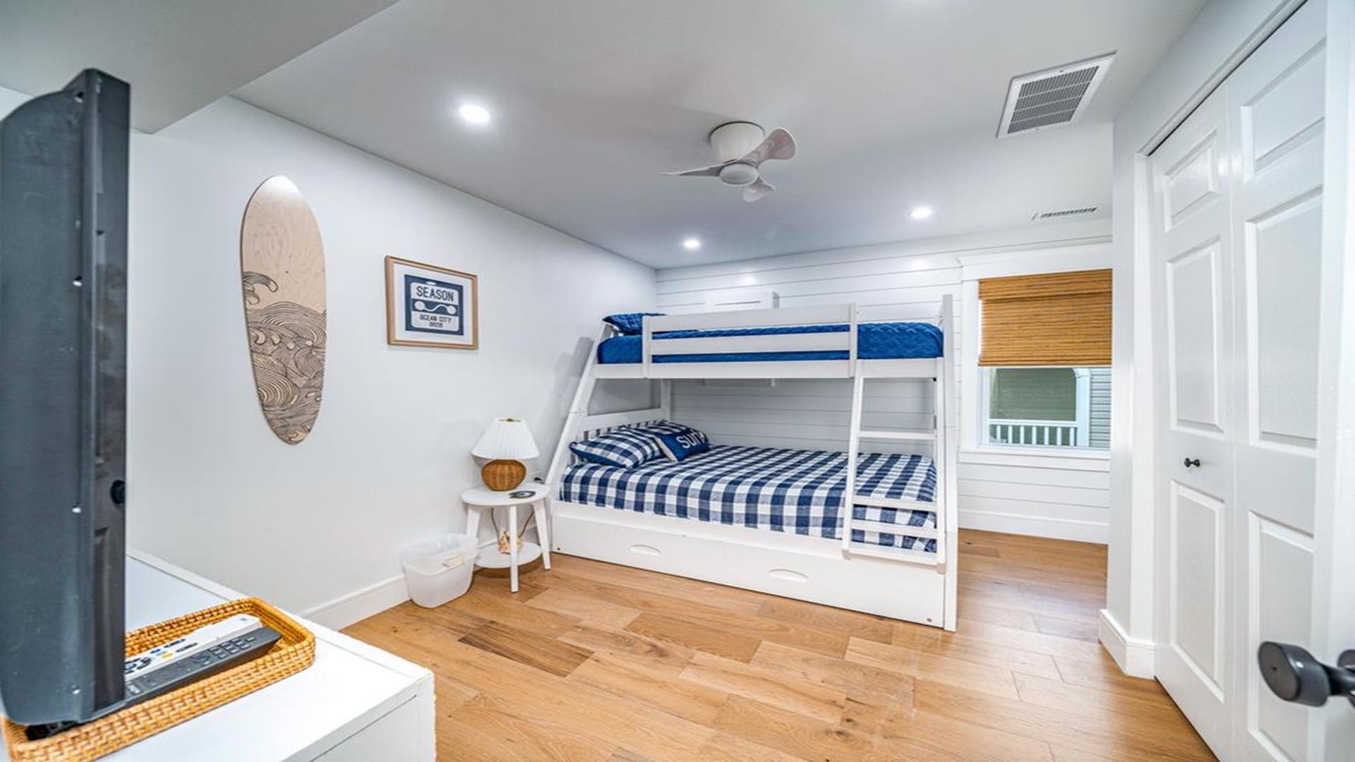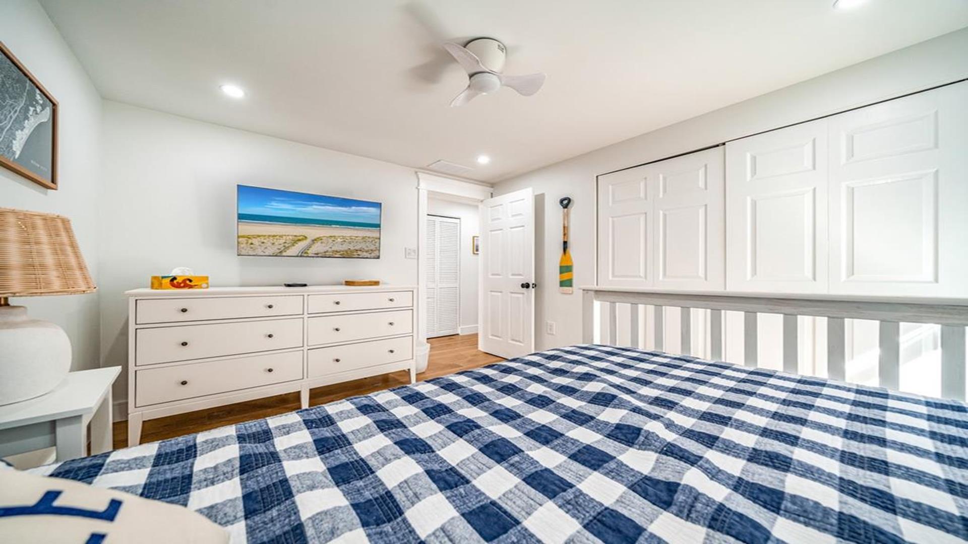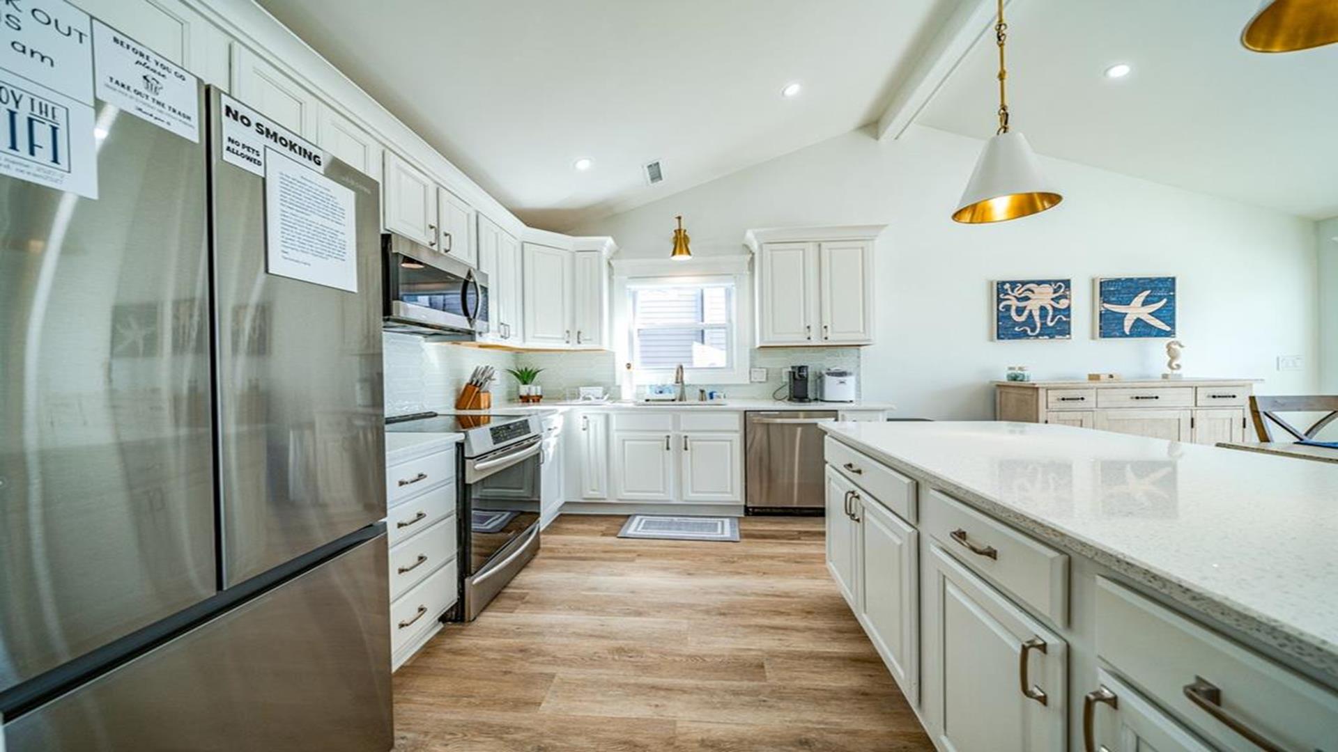 2527 CENTRAL AVE – TOP FLOOR WITH OCEAN VIEWS FROM MULTIPLE VANTAGE POINTS. NEWLY REMODELED! Beautifully decorated & designed 2nd floor condo, within the heart of the Gold Coast. New features throughout the entire home to make you feel like you are at a home away from home. Enjoy your morning coffee or evening cocktails on the huge rear deck, with an ocean view or follow the ocean breeze to the cozy front porch for happy hour and evening sun. Relax & Enjoy the best of both worlds on either the front or rear newly fully furnished decks. Only 2 blocks from the boardwalk and conveniently located between Kessel’s Korner and the sweetest block on Asbury (Nauti Donuts, Uncle Bills & Aunt Annie’s). 3RD House to the beach and less than 1 block walk to the 25th or 26th street beach. Home features new hard wood white oak floors, entire home freshly painted with 4 large Bedrooms - all with smart TV’s, remote ceiling fans w/newer comfy mattresses and 2 full Baths. NEW Trim & Crown Molding on every window and door in the house. Two NEW sliding glass doors and windows. NEW recessed lights throughout the entire home. New Cedar Impression Siding on both decks. NEW Glass White Picket backsplash & kitchen counter. New outside shower and more. The master bedroom has an ocean view with a spacious private bathroom, full glass enclosed shower and double sink vanity. Spacious fully renovated Living Room with High Vaulted Ship Lap Ceilings with architectural beams and trim, a wall of windows and crown molding and a 65-inch smart TV on the shiplap fire place. Remodeled Kitchen w/ 84-inch gorgeous quartz topped island, white glass picket Backsplash, new stainless-steel appliances, built in microwave and new Coffee maker & Keurig. Master Bedroom #1 has a luxurious king bed & private bath with a 6-foot double vanity and ocean views right from your bed or exit the new built in blinds 6 foot patio glass door that opens to a huge deck with ocean views. Bedroom 2 & 3 have ship lap walls with beautiful natural shades. Bedroom #2 has a bunk bed with one double bed, one twin bed and trundle pull out to sleep up to 4. Bedroom #3 has a double bed and a trundle pull out to sleep up to 3. Bedroom #4 has a queen bed with an ocean view and entrance to huge fully furnished deck. Attached large Garage to securely store all beach attire and bikes w/ 2 Additional parking spots. No smoking or pets, please. PLEASE NOTE: Pillows and bedspreads are provided. TOWELS, SHEETS AND ADDITIONAL BLANKETS ARE NOT INCLUDED and can be rented from SHEETS TO THE WIND at *hidden website*