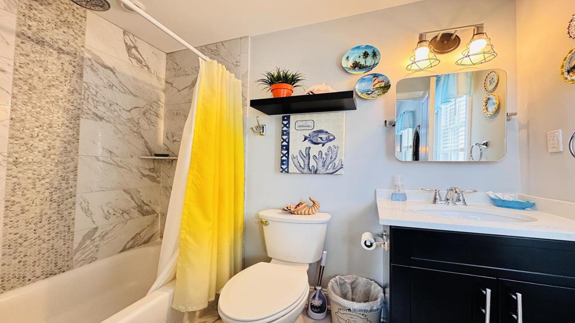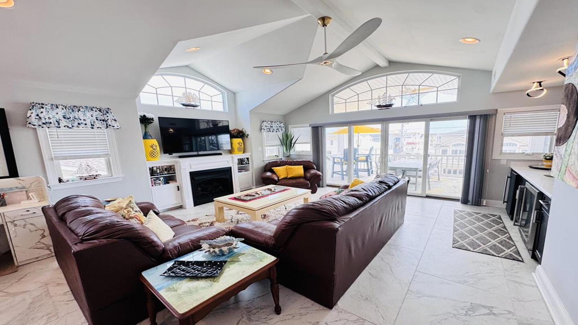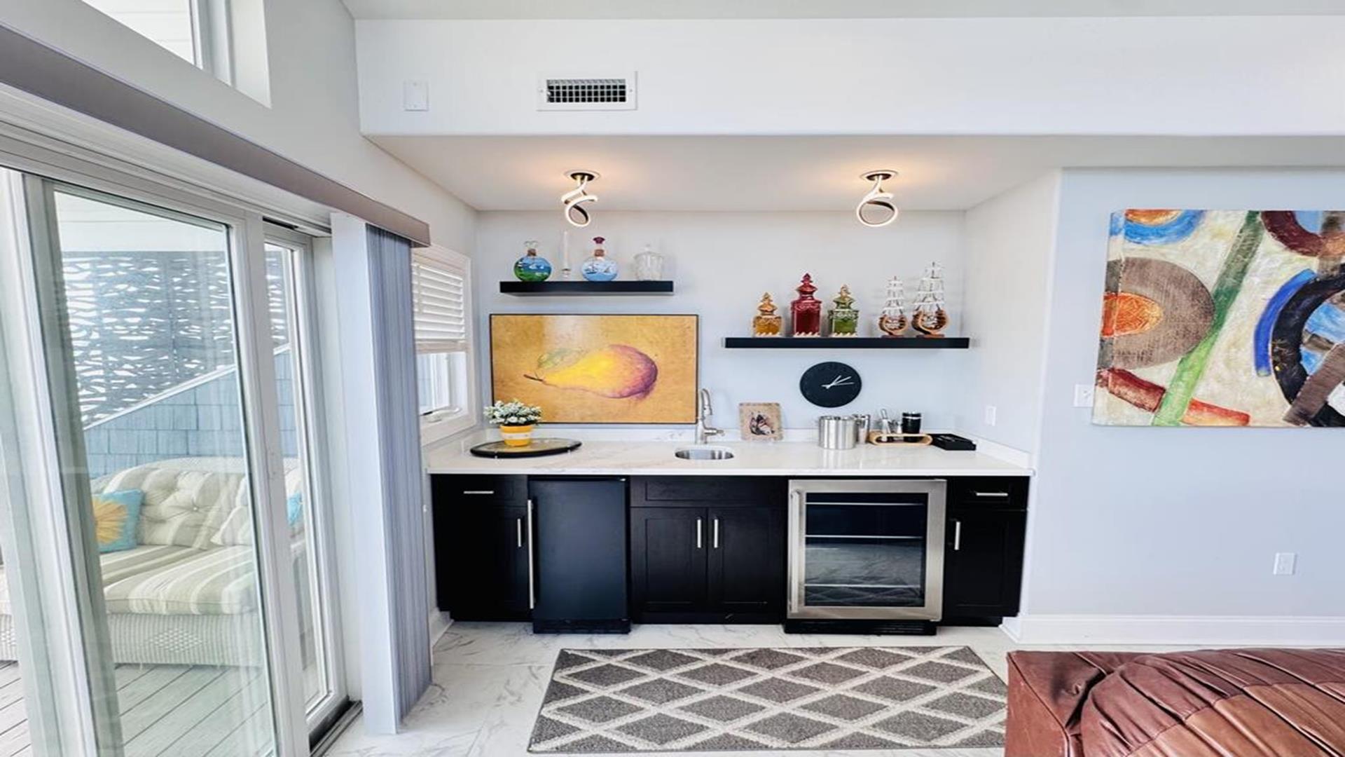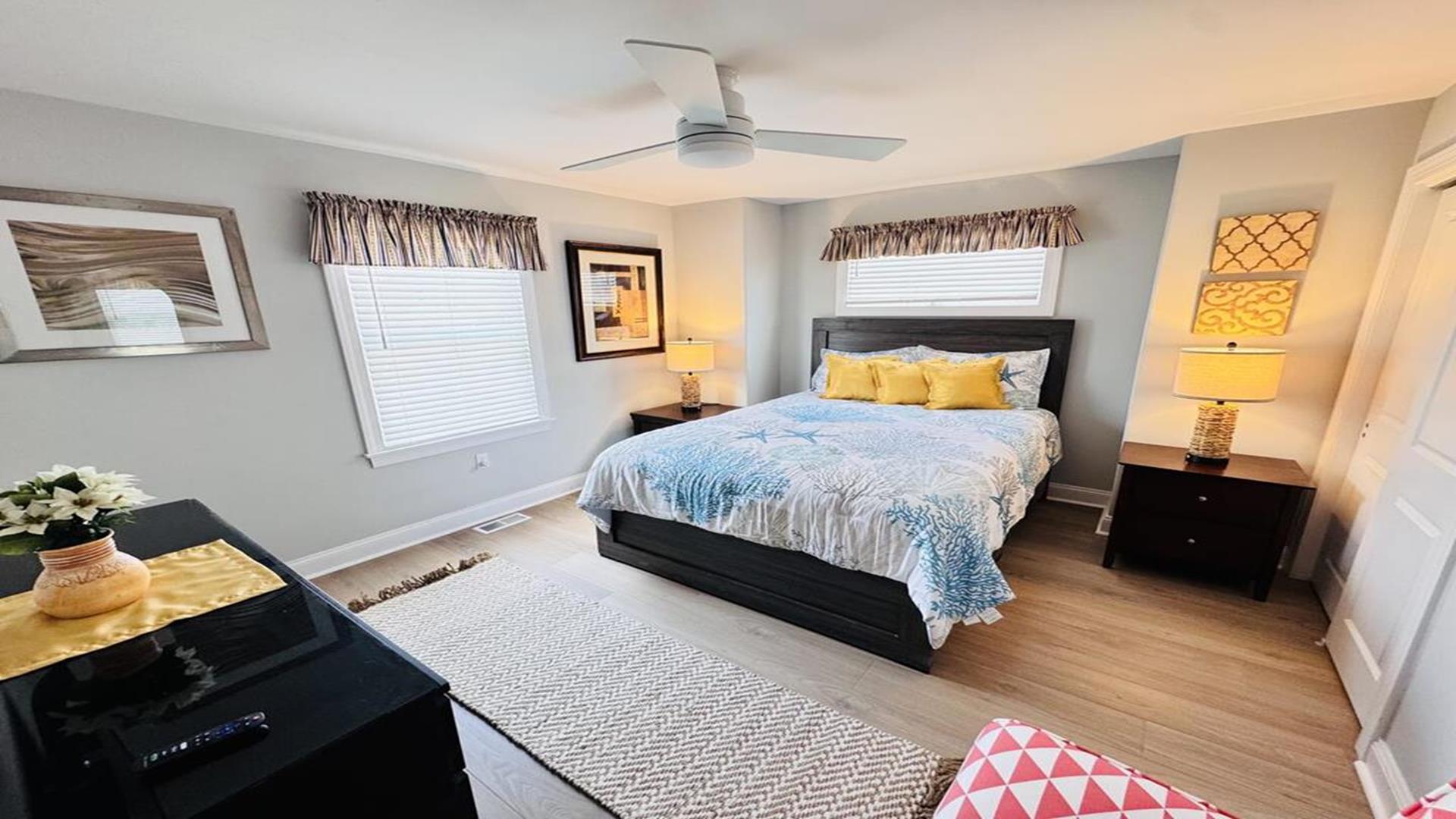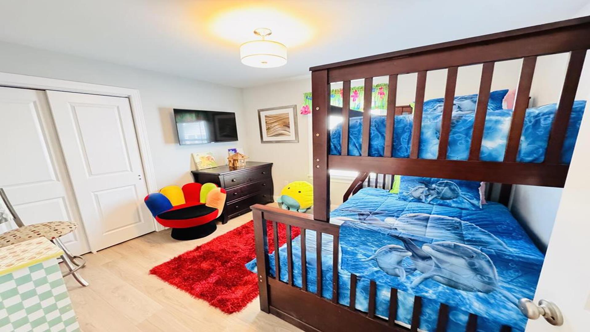 New 2026 POOL!!! Heated pool with large tanning ledge and an umbrella with 2 LED lite bubblers. Across from that is a waterfall that is illuminated, cascading down into the pool. At the bottom of the water fall is a spa bench with jets for relaxation. 5 bedroom/4.5 bath townhouse with ground floor elevator and bonus room with full bath! Elevator goes from Garage up to 2nd and third floors. Does not stop at Bonus room level. Mini bar and tv in the garage. As you enter, the front door you have a full bath with bonus room. The room features a queen sleeper sofa and wet bar. Up a flight of steps to the second floor you will find 4 bedrooms and 2 full baths with the laundry closet. One bedroom features a king suite with private bath and spacious deck. The next bedroom features twin single beds, third bedroom features a pyramid bunk bed (single top, full or double on the bottom. The final bedroom features a queen bed. There is also a shared hallway bath on this floor. Top Floor features the beautiful and spacious great room. The living room features a wet bar off the large deck. There is a half bath off the kitchen. The final bedroom is another king bed with private bath. This unit truly has it all. BOOK BOTH SIDES WITH A CONNECTING DOOR FROM THE TOP DECK! BOOK TODAY AS THIS WILL NOT LAST LONG!!!! 5 Beach Tags & 6 Beach Chairs are provided but NOT Guaranteed