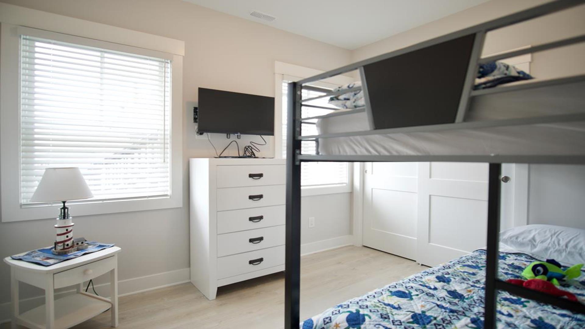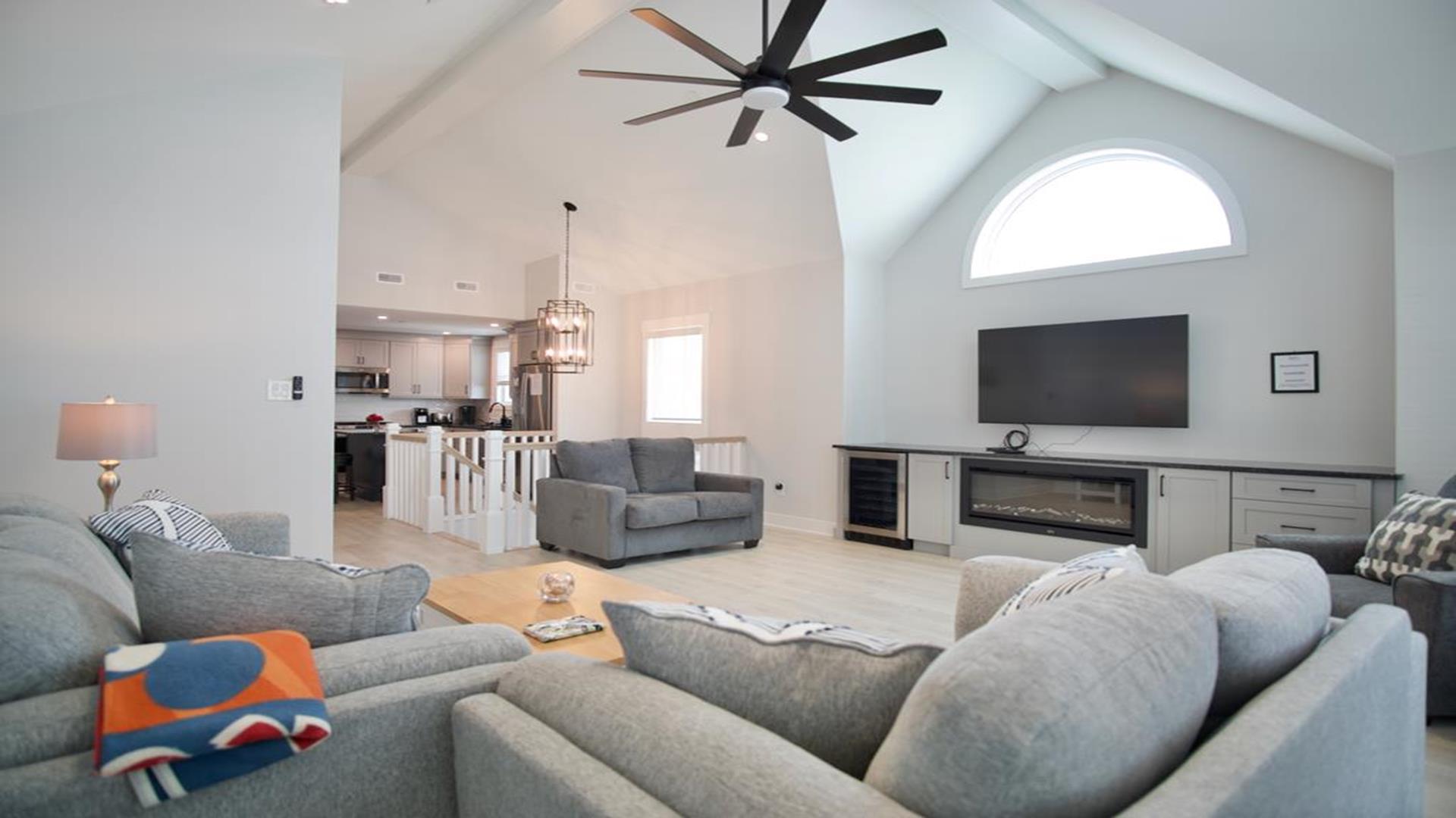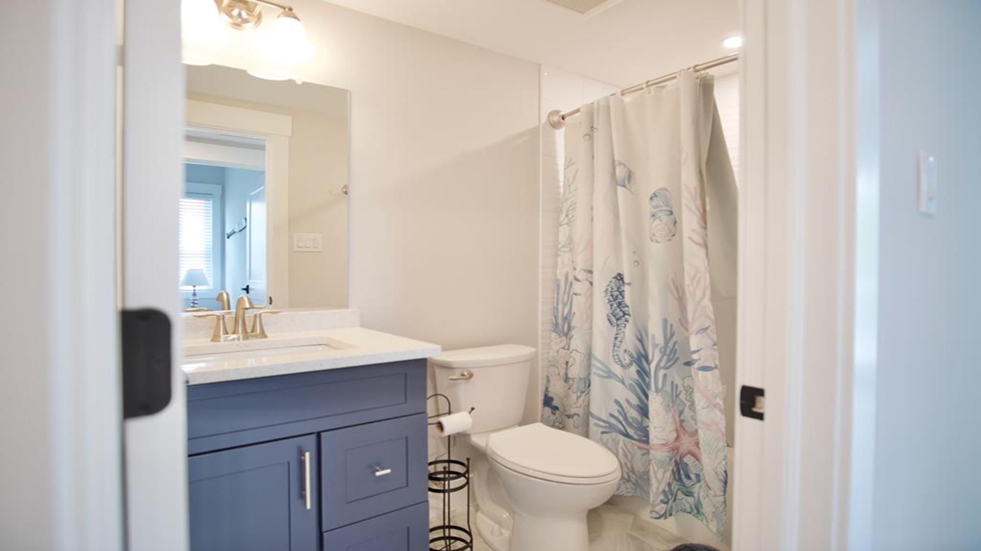 Great Location, steps to beach, promenade and all that the town has to offer! Both sides available to rent with adjoining deck door for families wanting to rent both sides! WEST unit has 4 bedrooms and 4 bathrooms. Ground level has parking for three cars under the home, a private outside shower, storage for beach chairs and ground level access to the elevator, which stops at both floors. 1st floor has 3 bedrooms. Front bedroom has queen bed, deck with ocean views and a private full bathroom. Bedroom two has a twin bunk bed with additional bunk mattress under the bed for a total of 3. Bedroom three has king bed with full bathroom. Additional hall bathroom with tub. Second floor has main area with kitchen, living and dining area. Main deck off of the living room .Also on this level is bedroom 4, which has a queen bed and private bathroom. Unit has ocean views, 4 covered decks, parking for three cars, an outside shower, beach tags, beach chairs and a ground level elevator on both sides! Looking for huge a house for the whole family? Book both sides for a total of 9 bedrooms complete with a door connecting deck