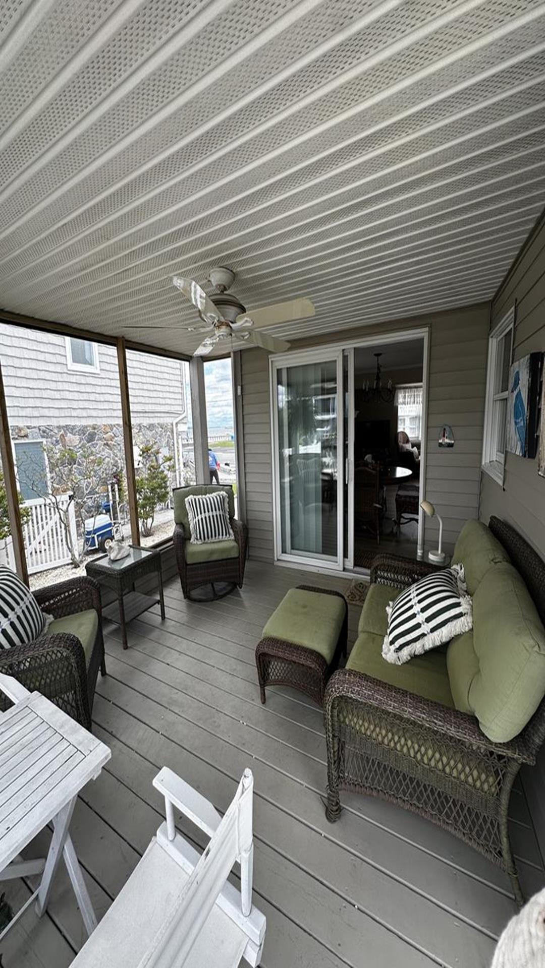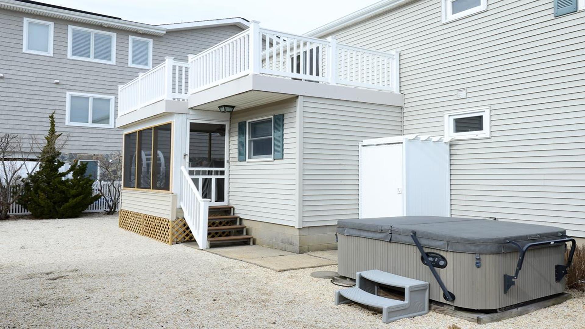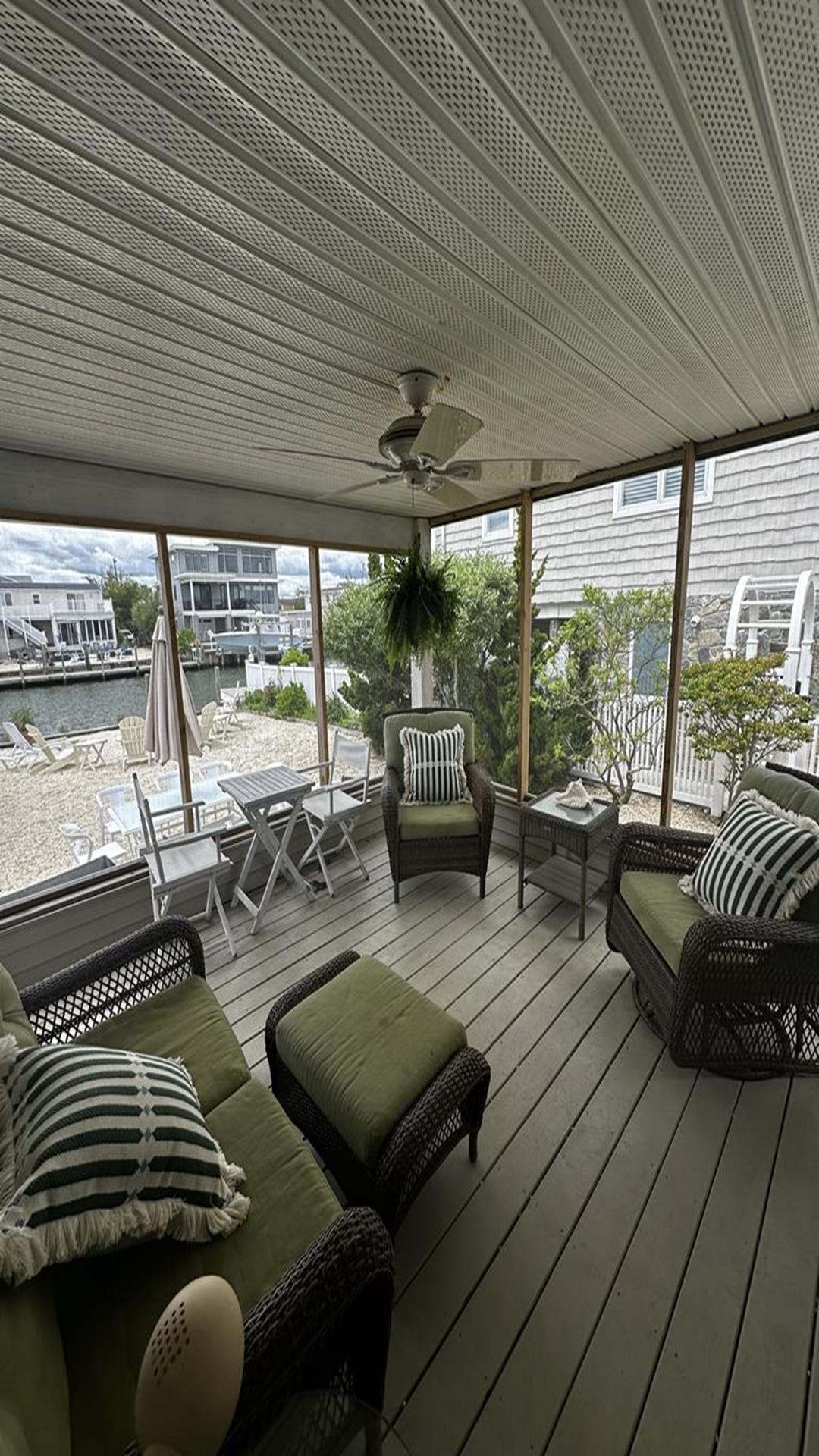 Enjoy the Lagoon Life at this new to the rental market, 4 bedroom LBI cape with bay views from the front and back yard. There is central a/c. There are two thermostats, one inside the upstairs bedroom where the porch (just inside the interior door to the left) and one downstairs in the hall wall between the two bedrooms. Both must be on and turned on high to get cold. In addition, there are two window units for the upper back bedroom and the lower back bedroom. There is a ladder for the lagoon. Bring your boat to take a sunset cruise on Barnegat Bay. Walking distance to beach, shops and eateries. Woodies Drive-in, The Local Market & Kitchen, LBI Table and Our endless summer arcade & ice cream. All will enjoy water activities: Kayaking, swimming or paddle boarding in the back yard or bring the surf board up to the beach. Only steps across the street children can play in the bay front park. Enjoy the cool breeze in the screened in porch, or soak in the hot tub under the stars. the 2 large 1st floor bedrooms are great for those who have trouble with stairs. Pets may be considered based upon size, age and breed. Sunday Check In day.