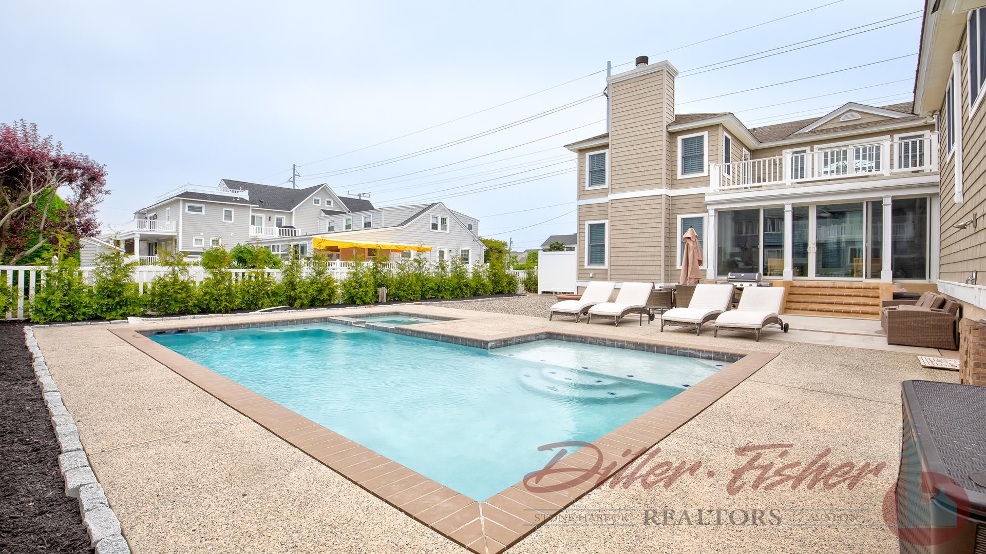 Welcome to your luxurious vacation retreat in the heart of Stone Harbor! This stunning property is perfect for large groups, with the capacity to sleep up to 16 guests comfortably. With 5 bedrooms and 4.5 bathrooms, this spacious home offers ample room for everyone to relax and unwind. The sleeping arrangements include 1 King bed, 3 Queen beds, 2 Single beds, 2 Single sofa beds, and 2 Double sofa beds, ensuring a good night's sleep for all. The property is equipped with all the amenities you could need for a comfortable stay, including a fully stocked gourmet kitchen with a dishwasher, microwave, coffee maker, toaster, and blender. Other features include central AC, gas heat, a washer and dryer, garage parking for one car, and wireless internet access. Entertainment options abound with 8 TVs throughout the house, cable TV, and a pool for those hot summer days. The pool is also heatable, allowing for enjoyment even on cooler evenings. Relax and unwind in the hot tub, or grill up a feast on the gas BBQ while enjoying the outdoor deck and furniture. For those who love the outdoors, this property is just a short walk to the beach and comes with beach equipment, chairs, and umbrellas for your convenience. After a day in the sun, rinse off in the enclosed outside shower before heading inside to enjoy the comfort of this beautifully appointed home. Please note that this property does not allow pets and guests are required to bring their own linens. Cleaning is included in the rental rate, ensuring a stress-free stay for all. Don't miss out on the opportunity to experience the best of Stone Harbor in this exceptional vacation rental. Book now and start counting down the days until your dream getaway!