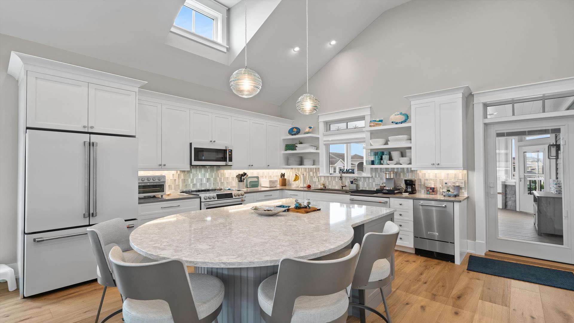 Welcome to 115 112th Street, a stunning new construction home second from the beach on the town’s newest and most desirable street. This luxury upside-down style home features six spacious bedrooms, each with its own full bathroom, plus two additional half bathrooms, comfortably sleeping up to 16 guests. Designed with upscale coastal living in mind, the home offers sweeping ocean views, high-end finishes throughout, and an open-concept kitchen, living, and dining area—perfect for gathering with family and friends. Enjoy effortless access to every floor with a private elevator and take full advantage of the fresh salt air from multiple outdoor living spaces, including a rooftop deck with panoramic ocean views. Outside, your private backyard oasis awaits with a heated pool, spa, and cabana, complete with a built-in grill for dining al fresco. Whether you're lounging poolside, entertaining under the stars, or heading to the serene, uncrowded beach just steps away, everything you need for a perfect Stone Harbor getaway is right here. The home also includes ample off-street parking and two beach carts to make your walk to the beach even easier. From ocean sunrises to tranquil sunsets, 115 112th Street offers the perfect backdrop for unforgettable beachside living.