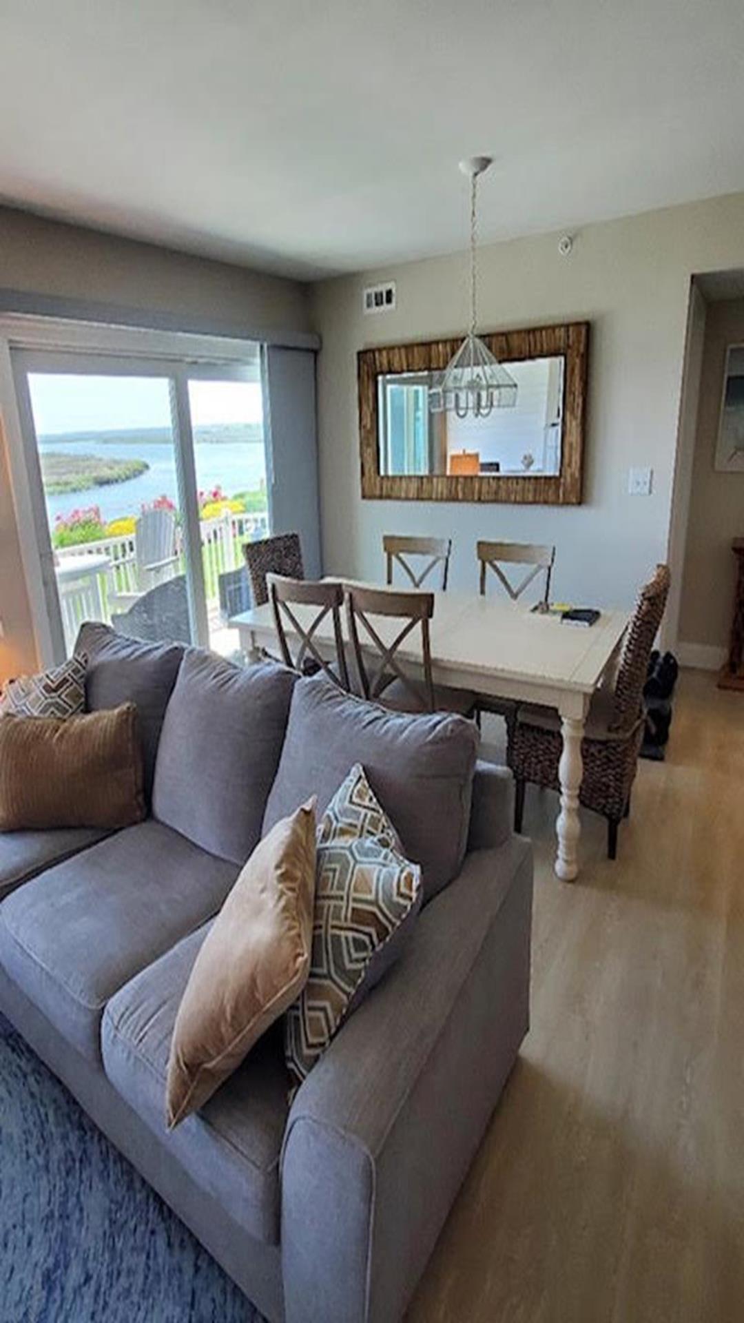 Harbor Landing is a premiere condominium complex right across the bridge from Stone Harbor. This beautiful condo offers luxury living with unparalleled bay views and magnificent sunsets. This immaculately cared for first floor unit boasts three spacious bedrooms, two full bathrooms, (includes masterbath with separate shower and jacuzzi tub), and is beautifully furnished with elegant seashore charm. Relax poolside with your family and enjoy the sprawling bay views or lounge on your private deck with the same water view. All of this and just a short 5-minute walk into the downtown shopping, restaurants and beaches of Stone Harbor. Immaculately maintained complex has a lovely bayside swimming pool with BBQ grill area, elevator, clubhouse/fitness room, storage and ample parking. 6 Stone Harbor beach tags are included.