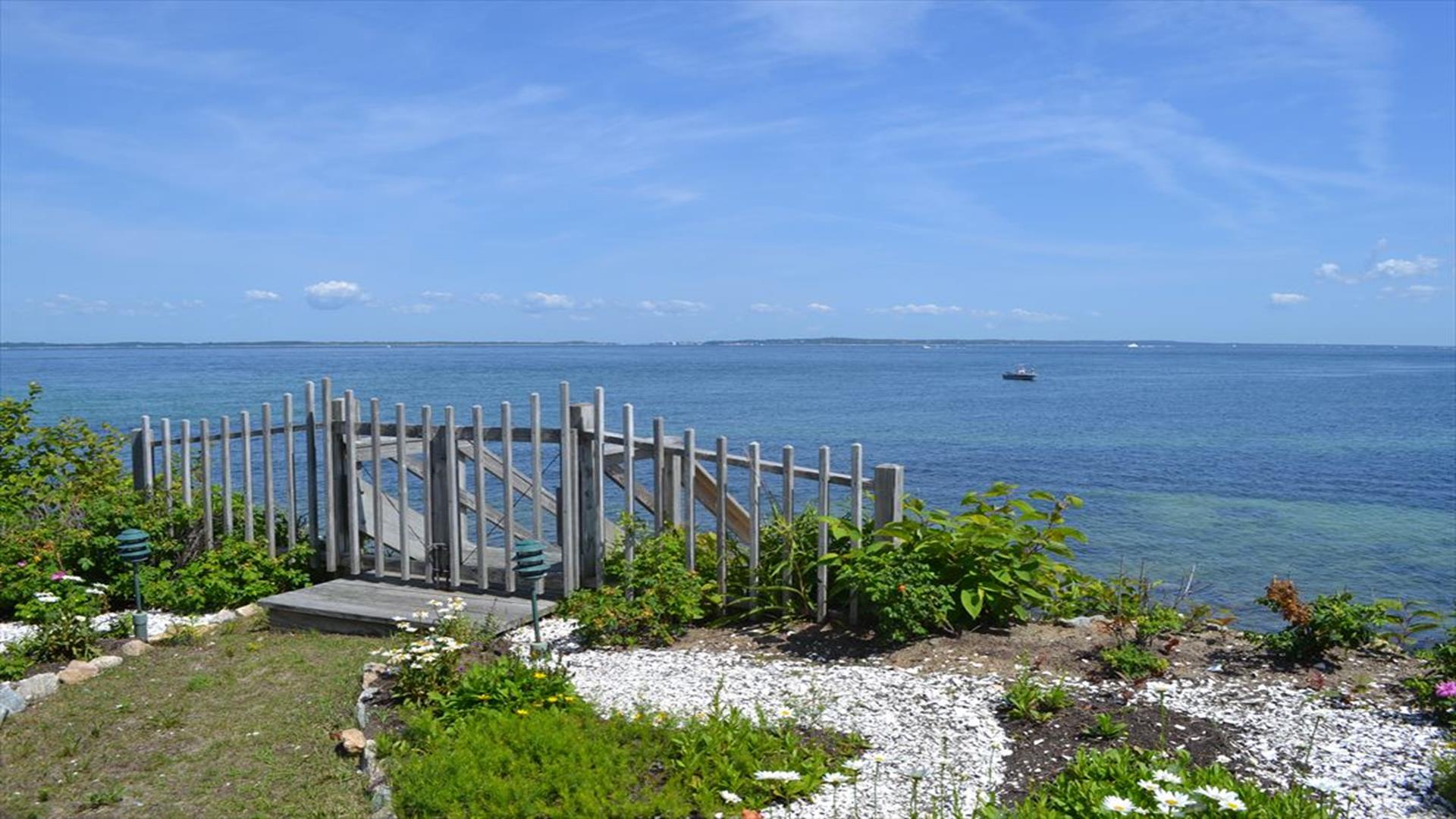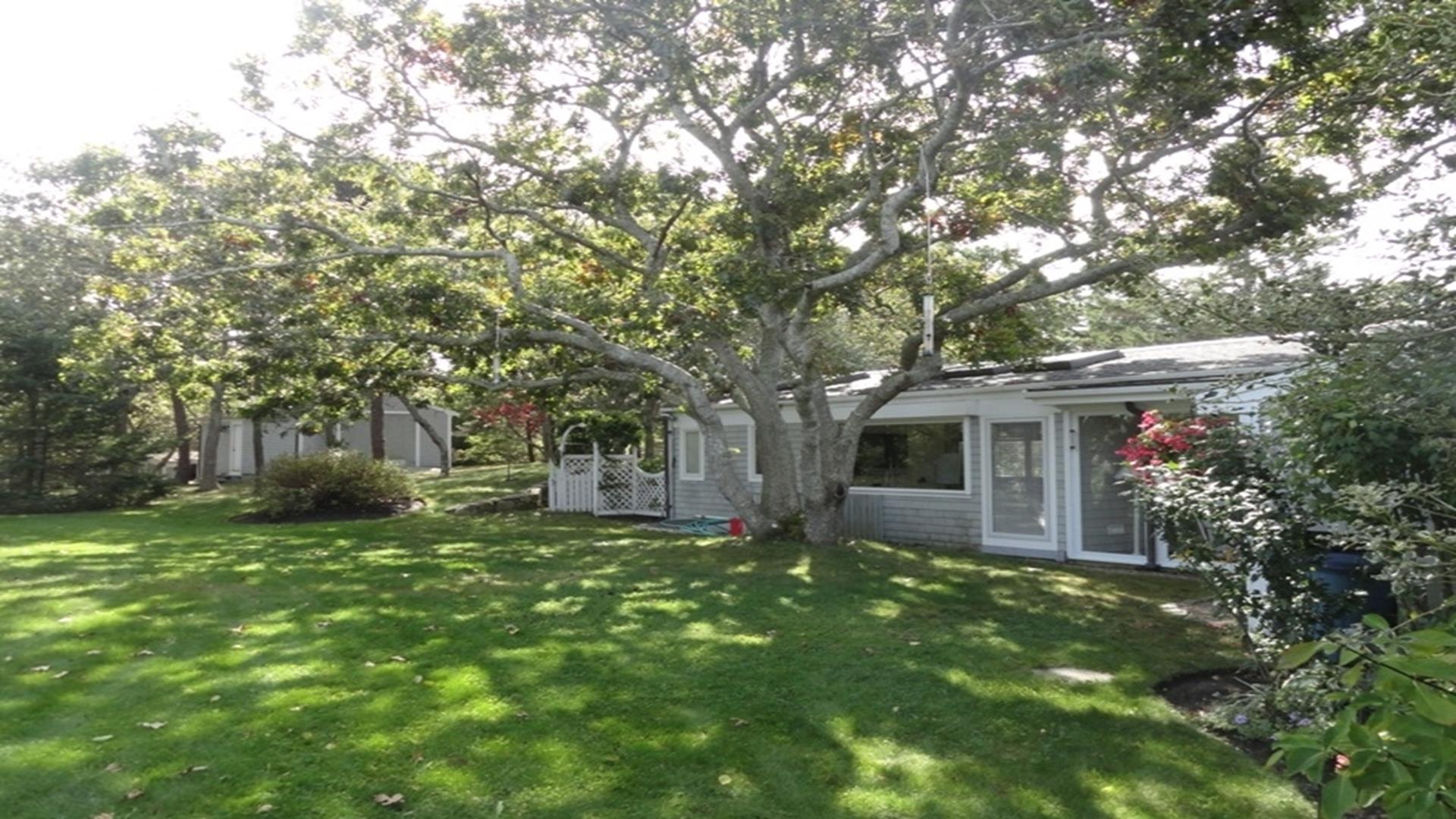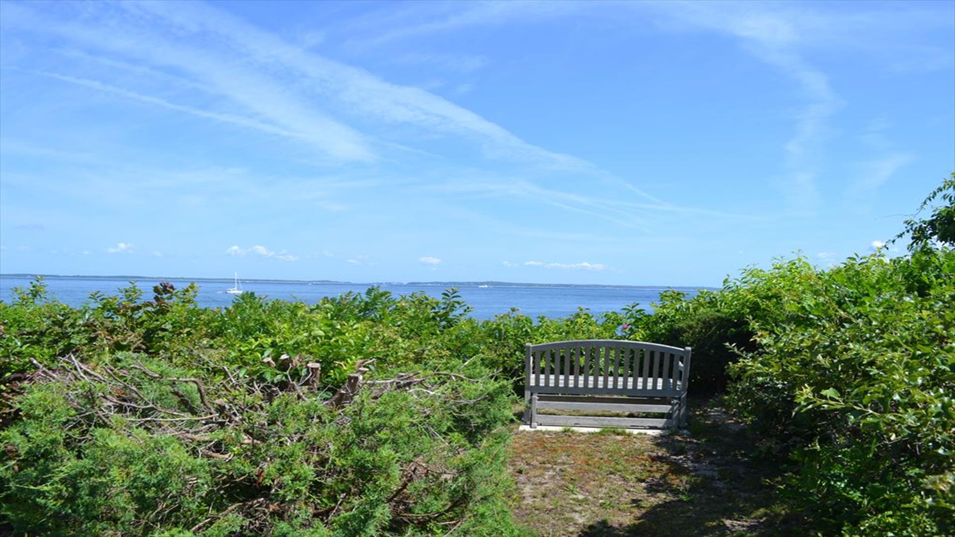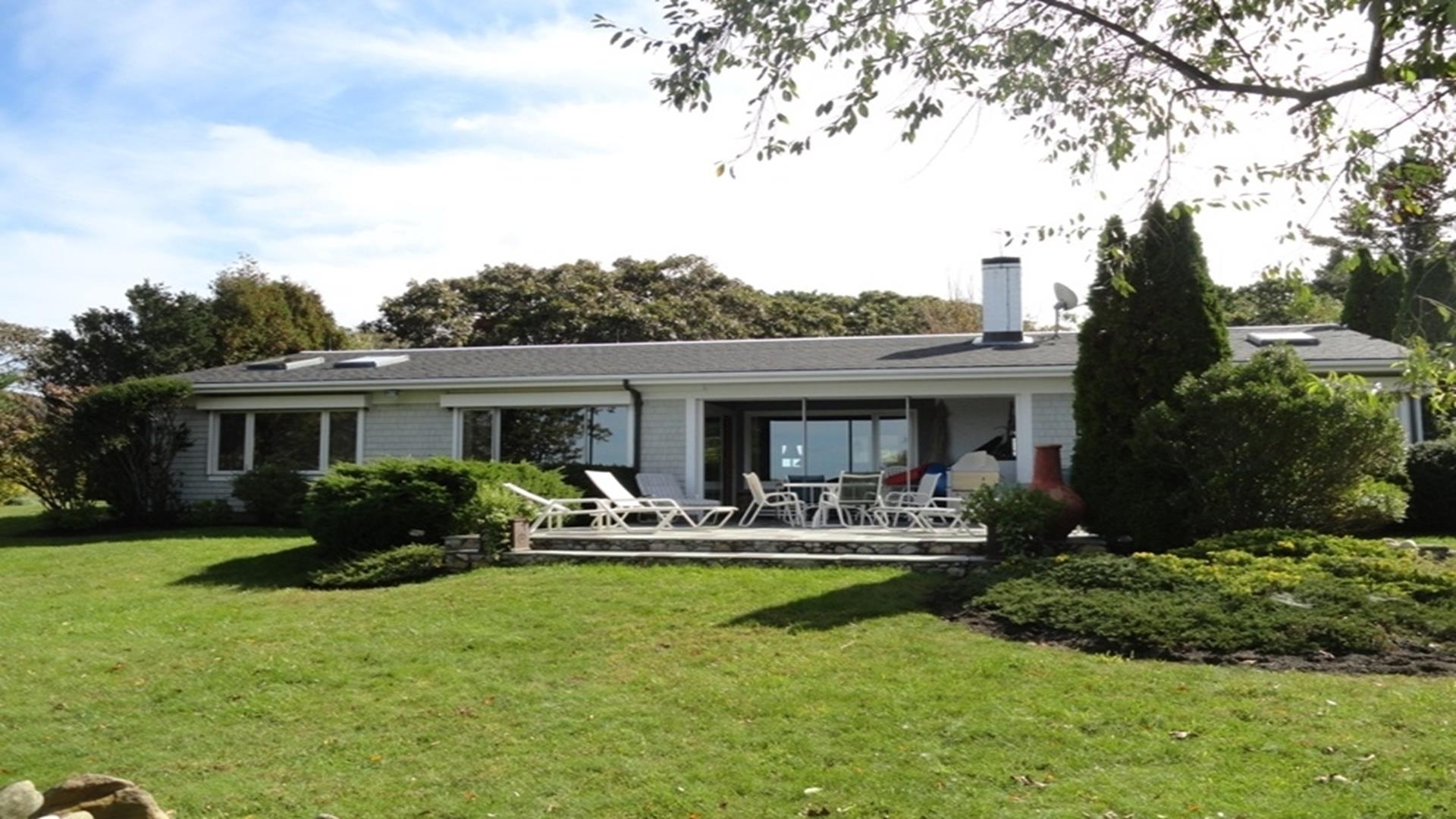 Magical is truly the best way to describe this waterfront location overlooking the Vineyard Sound, the Elizabeth Islands and Woods Hole. Set on 14 private, pastoral landscaped acres on the water in Upper Makonikey. Have a front row seat to gorgeous sunsets on your secluded private 325 foot beach. This casual and comfortable single level four bedroom three bath home has central air, power generator and many unexpected bells and whistles that add to the comfort of this home. Enjoy summer star-studded skies from your patio or through skylights in each bedroom. Open living dining area. Small but functional galley kitchen with high-end appliances. The glassed-in breezeway offers comfortable wicker furniture to relax in while reading and looking at the gardens. The cottage, attached to the breezeway, is a family great room with plasma TV, Internet access, game table area, studio kitchen: and bath. A boardwalk leads you to a hot tub with a table surround to use for lunch. Nearby is a hot/cold outdoor shower. Follow the boardwalk to a furnished deck at the bluffs edge to enjoy intimate meals while overlooking the ocean. Truly a one of a kind setting.