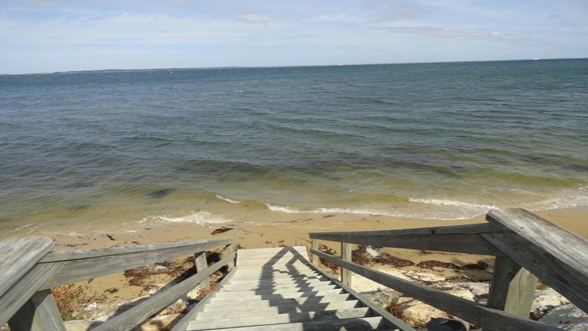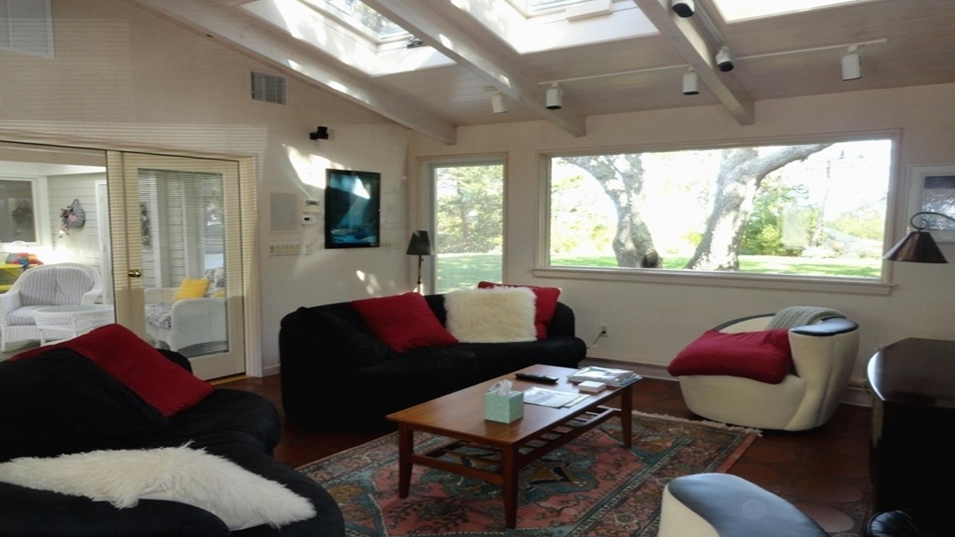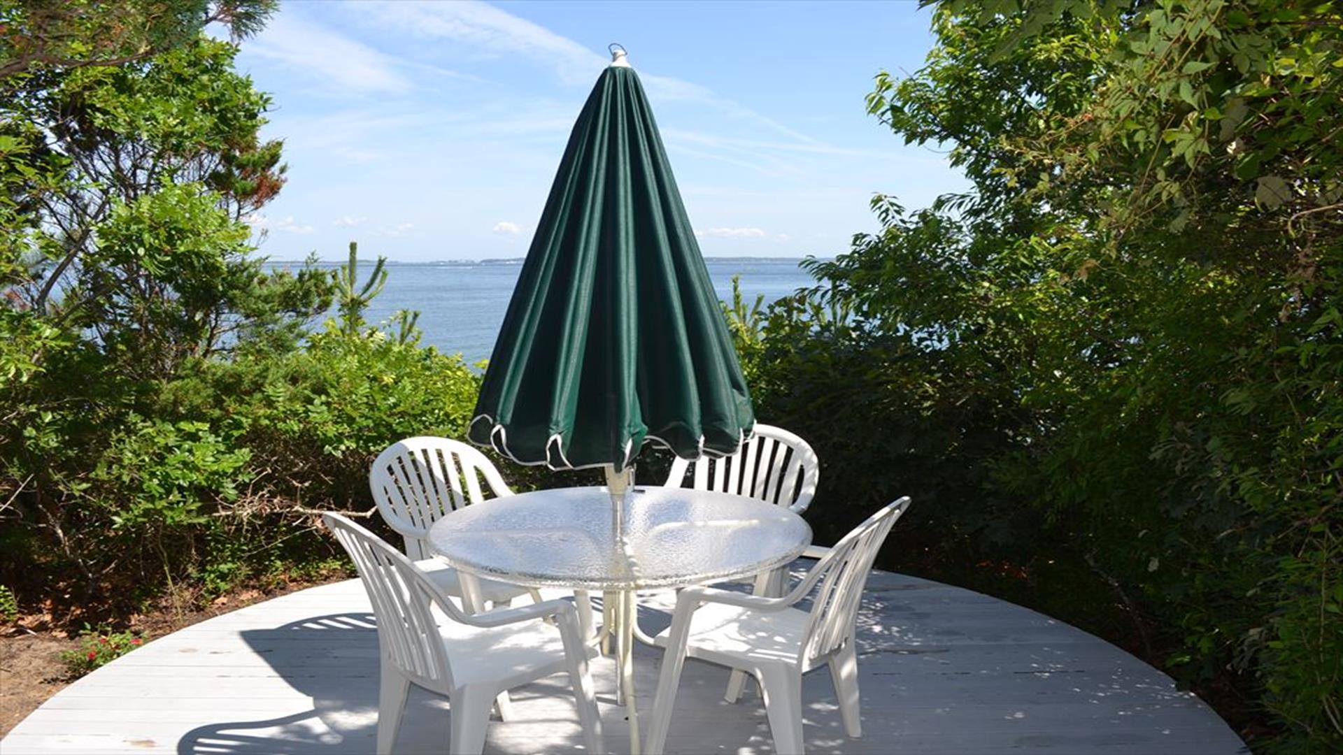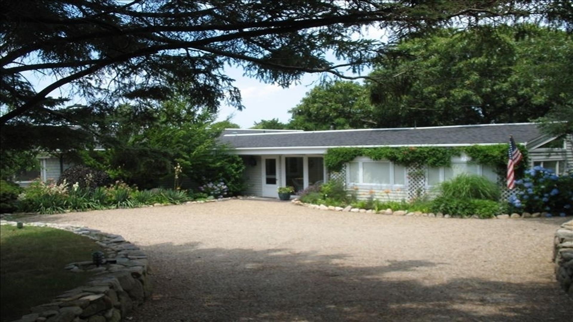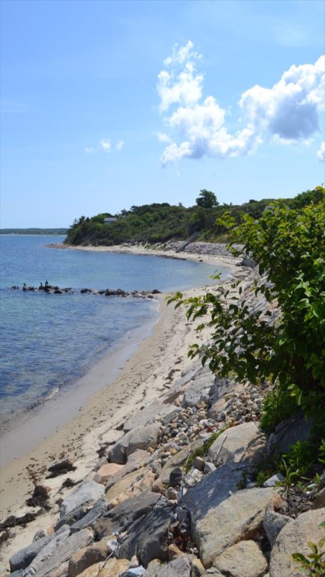 Magical is truly the best way to describe this waterfront location overlooking the Vineyard Sound, the Elizabeth Islands and Woods Hole. Set on 14 private, pastoral landscaped acres on the water in Upper Makonikey. Have a front row seat to gorgeous sunsets on your secluded private 325 foot beach. This casual and comfortable single level four bedroom three bath home has central air, power generator and many unexpected bells and whistles that add to the comfort of this home. Enjoy summer star-studded skies from your patio or through skylights in each bedroom. Open living dining area. Small but functional galley kitchen with high-end appliances. The glassed-in breezeway offers comfortable wicker furniture to relax in while reading and looking at the gardens. The cottage, attached to the breezeway, is a family great room with plasma TV, Internet access, game table area, studio kitchen: and bath. A boardwalk leads you to a hot tub with a table surround to use for lunch. Nearby is a hot/cold outdoor shower. Follow the boardwalk to a furnished deck at the bluffs edge to enjoy intimate meals while overlooking the ocean. Truly a one of a kind setting.