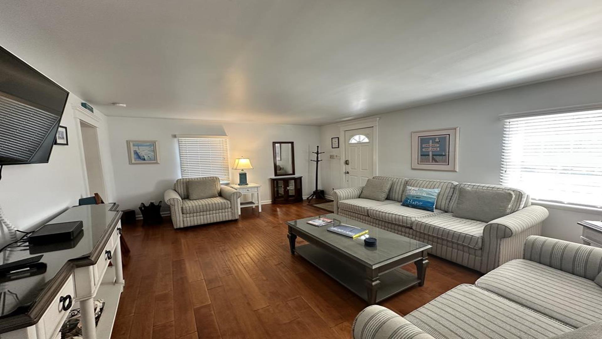 Nestled on the edge of the Nature Conservancy land with amazing views of the meadows, lighthouse and ocean this lovely raised two story home is a Birder s delight. Home features great room with french doors to deck, 5 bedrooms, den, 3 full baths, living room, eat in kitchen, sunroom with wood burning stove, screened porch and gated in-ground pool. Located at the south end of Cape May on the ocean side of Sunset Blvd, just a short walk to beach, town and restaurants.